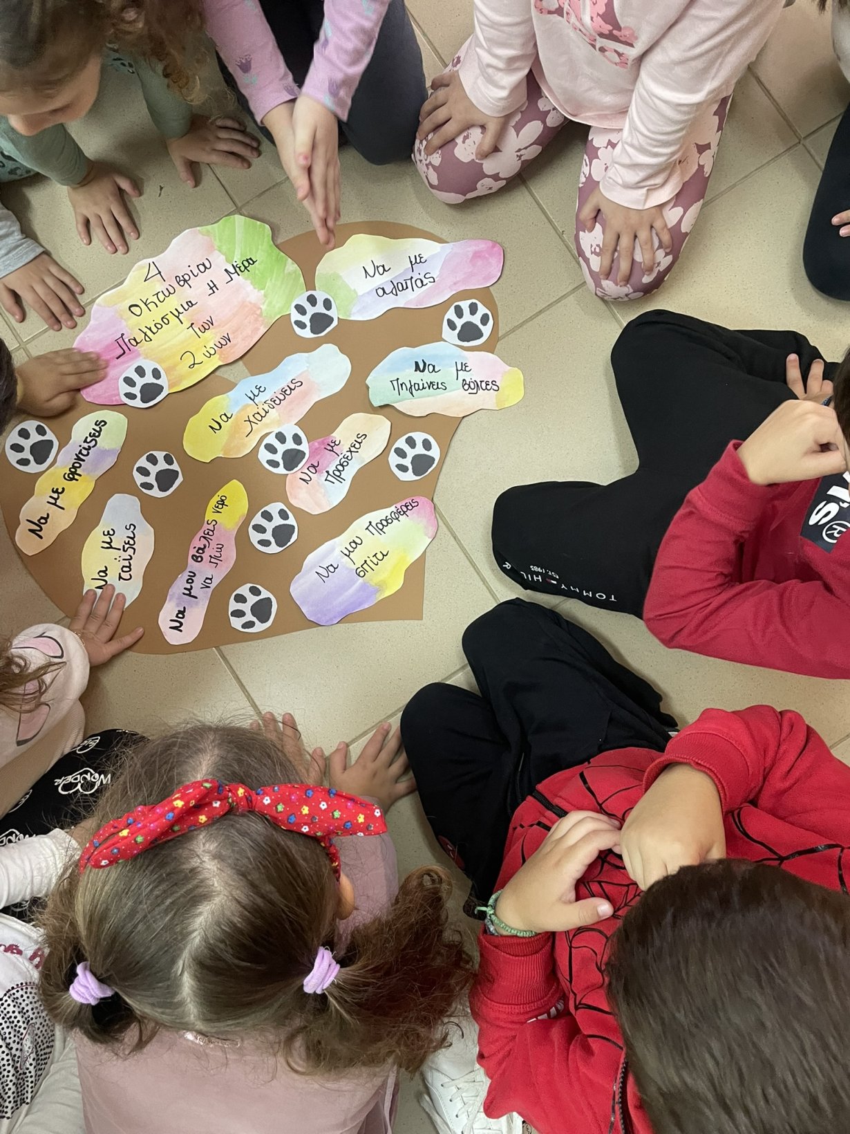 Μέσα από ιστορίες, παιχνίδια ρόλων και εικόνες συζητήσαμε για τους κανόνες της τάξης μας: πώς φροντίζουμε τον χώρο μας, πώς συνεργαζόμαστε, πώς εκφράζουμε τα συναισθήματά μας. Τα παιδιά συμμετείχαν ενεργά και βοηθήσαν στη δημιουργία ενός «συμβολαίου τάξης».
