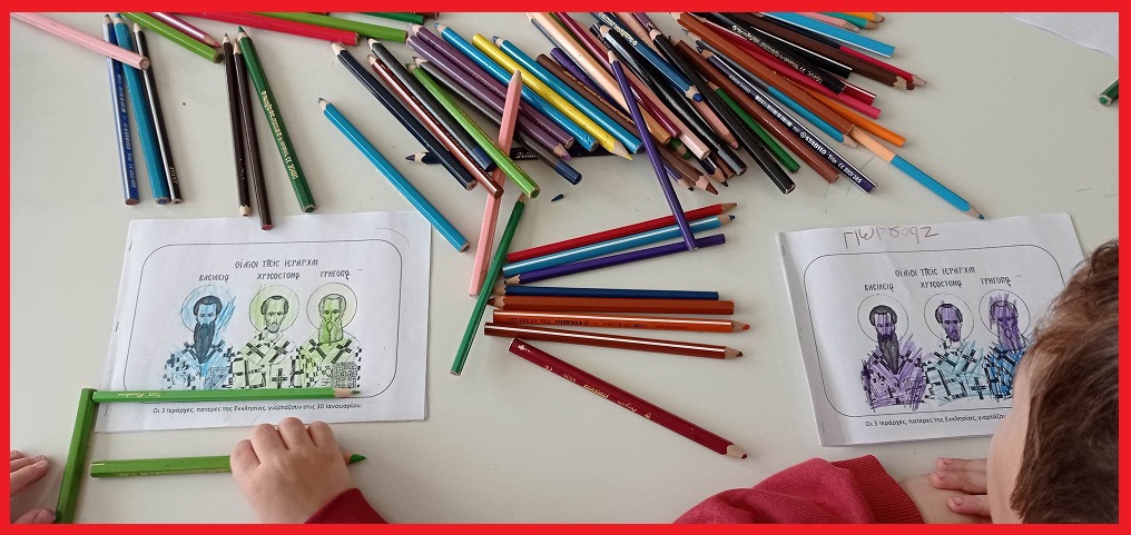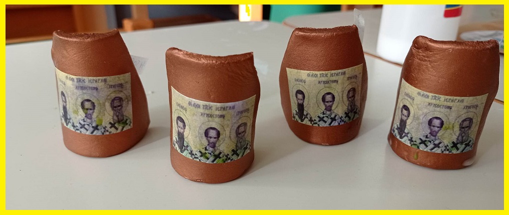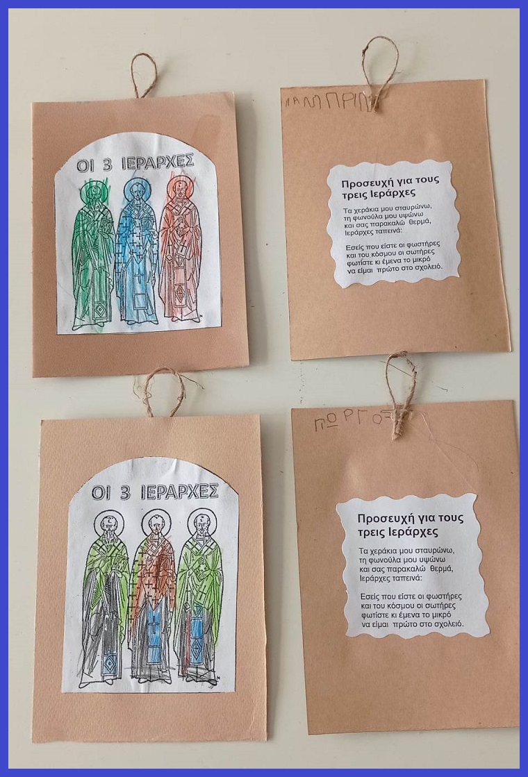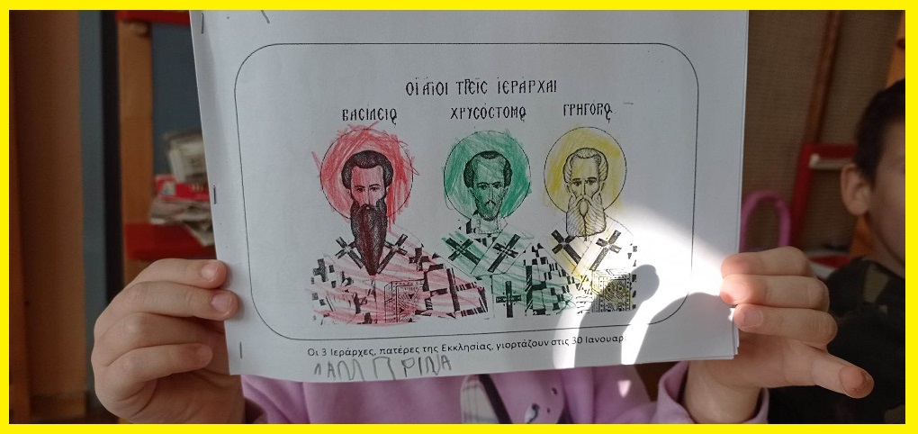 Οι 3 Ιεράρχες είναι οι προστάτες των γραμμάτων και των τεχνών, οι προστάτες των δασκάλων και των μαθητών! Διαβάσαμε για τα σπουδαία έργα τους, για τα σοφά τους λόγια και για την αγάπη που είχαν μέσα στην καρδιά τους. Τέλος ζωγραφίσαμε και με πηλό κάναμε εικόνες των 3 Ιεραρχών!