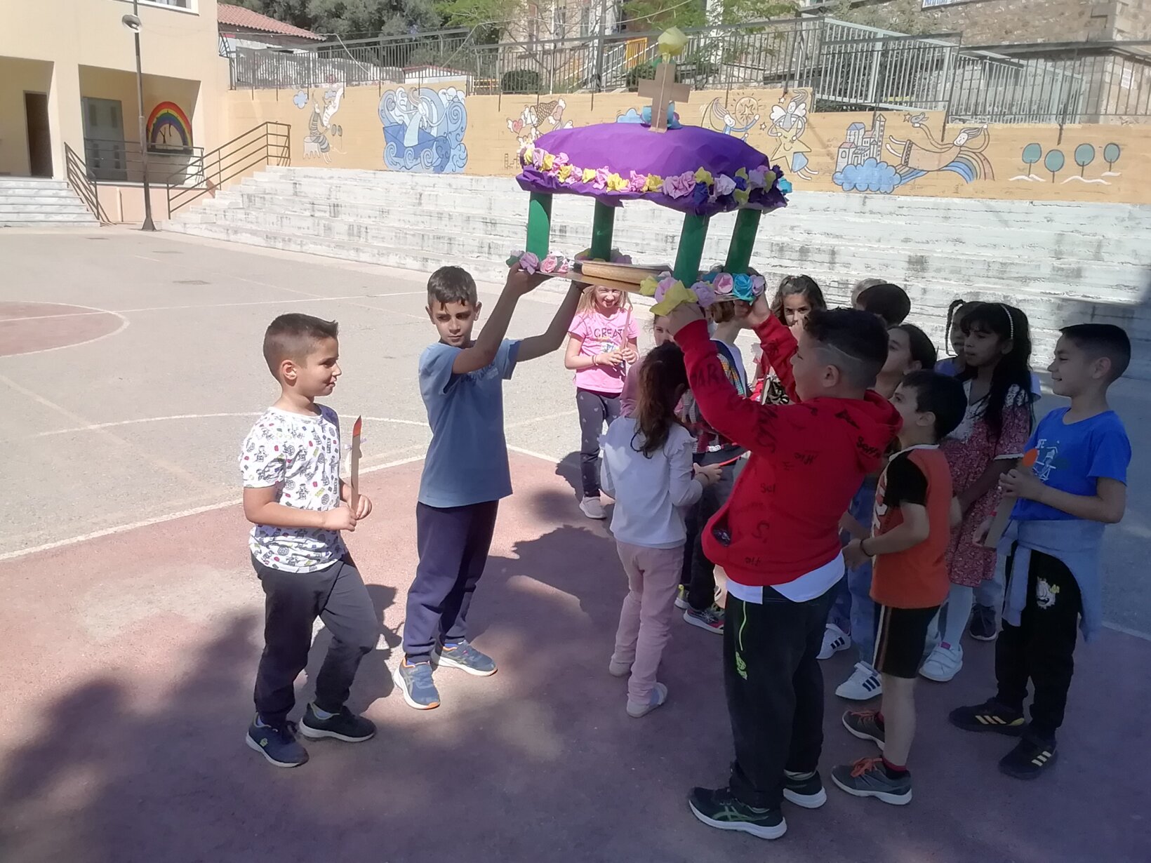 Όπως και την προηγούμενη χρονιά έτσι και φέτος αναβιώσαμε το έθιμο της περιφοράς του Επιταφίου στο σχολείο μας με τη συμμετοχή της Α’ και Β΄ τάξης του δημοτικού.