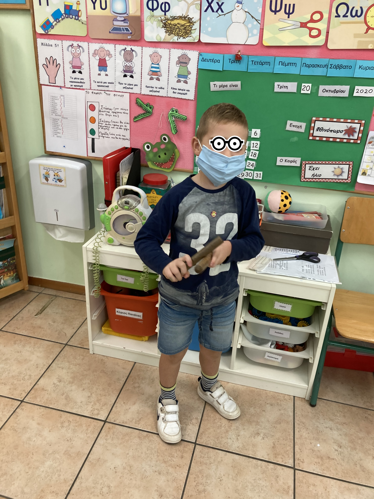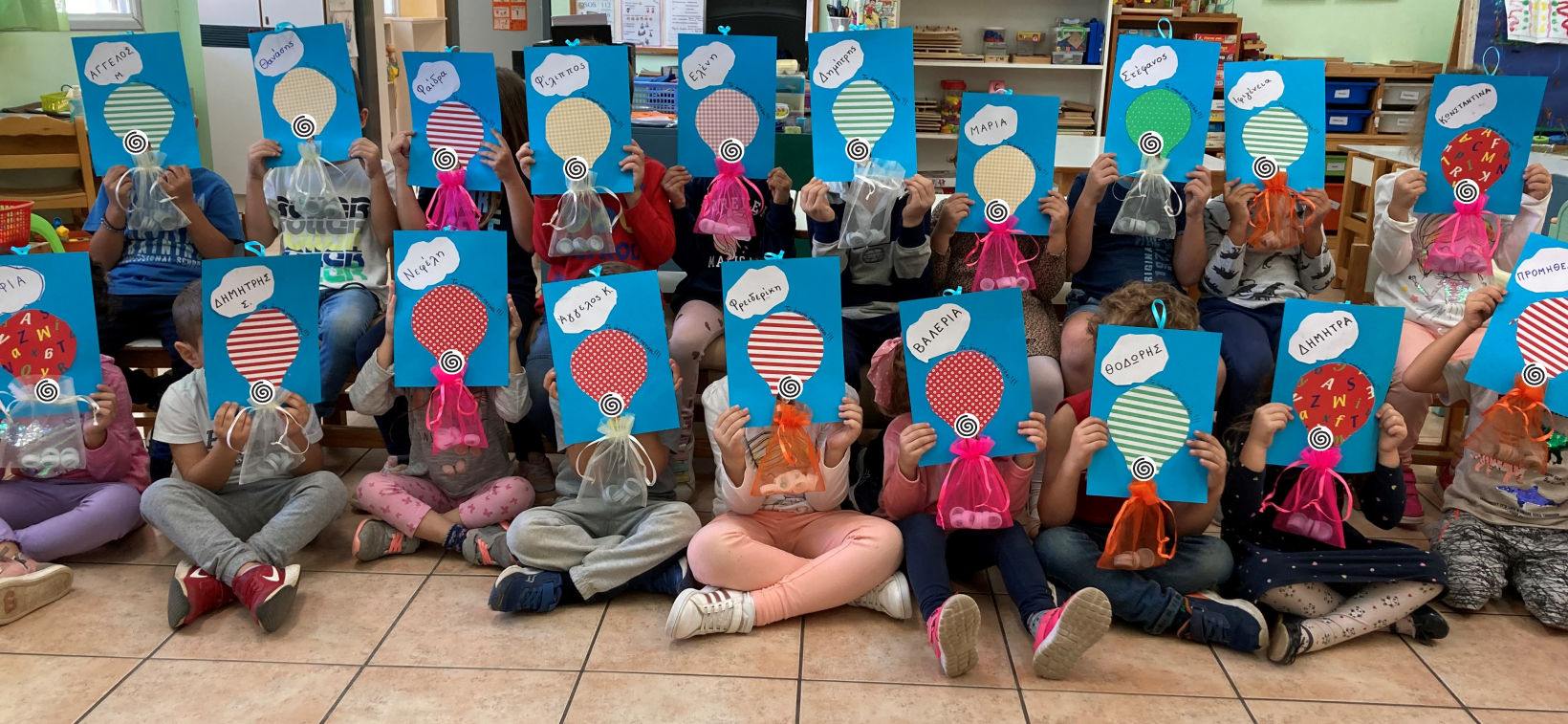 Αποφασίσαμε λοιπόν να διακοσμήσουμε την τάξη μας με χρωματιστά μπαλόνια με το αρχικό μας γράμμα. Κάθε παιδί έκοψε ένα μπαλόνι με το αρχικό του γράμμα. Αυτή η δραστηριότητα όχι μόνο τα βοήθησε να εξοικειωθούν με τα γράμματα, αλλά ενίσχυσε και τις κινητικές τους ικανότητες. Με προσοχή τα παιδιά χρησιμοποίησαν ψαλίδια και στη συνέχεια έφτιαξαν μπαλάκια από αλουμινόχαρτο. Χρησιμοποιώντας κόλλα, τα παιδιά έβαλαν τα μπαλάκια πάνω στα μπαλόνια τους, δημιουργώντας πολύχρωμες και λαμπερές συνθέσεις. Στο τέλος της ημέρας, τα μπαλόνια με τα αρχικά τους γράμματα και τα εντυπωσιακά μπαλάκια από αλουμινόχαρτο έγιναν μια όμορφη διακόσμηση στην τάξη μας!