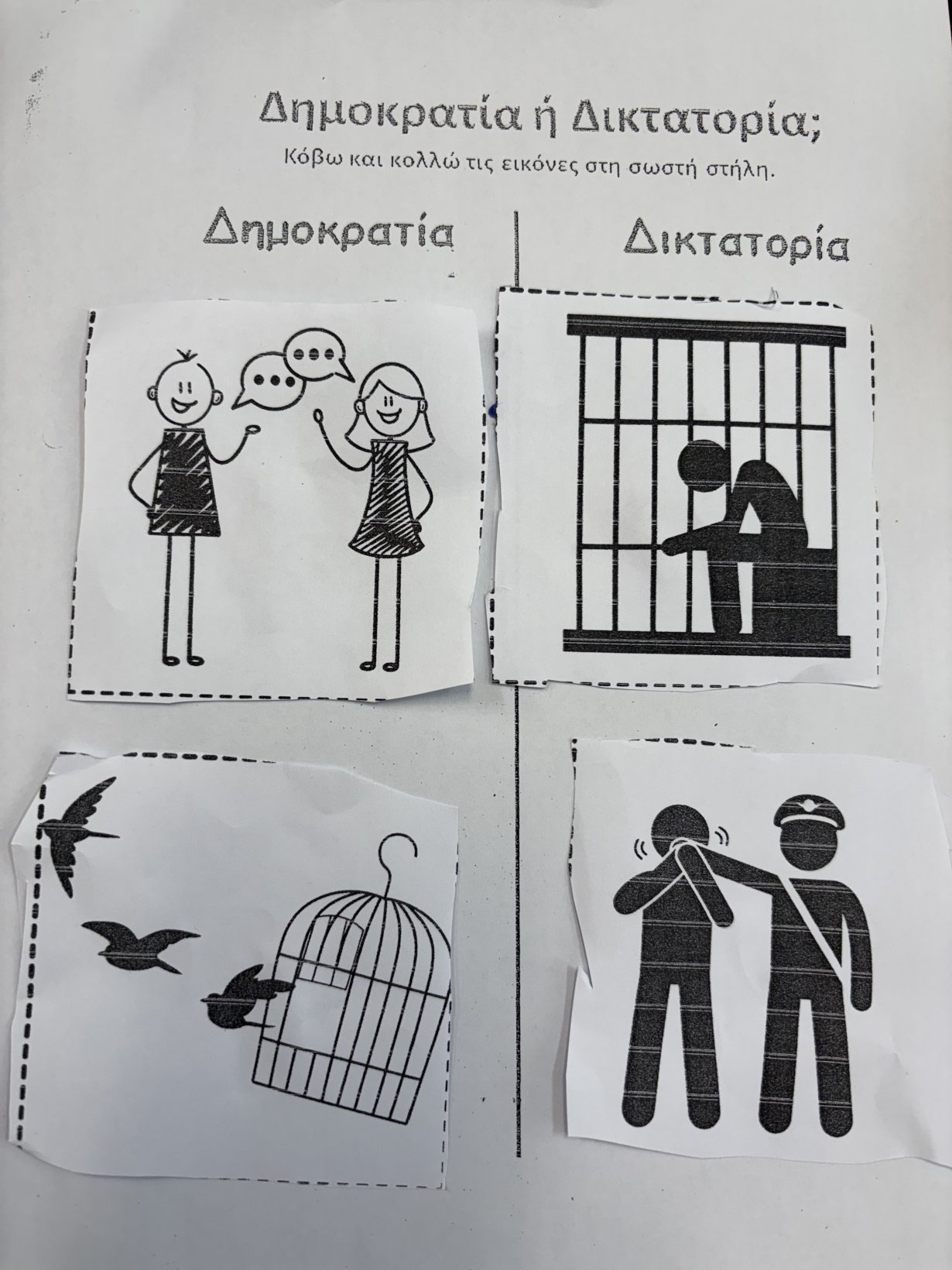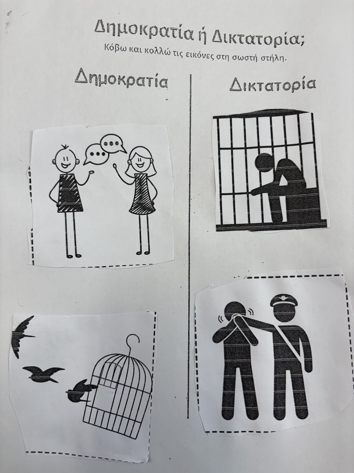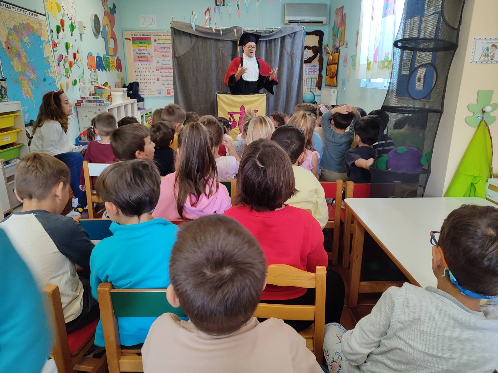 Παρακολουθήσαμε κουκλοθέατρο, συζητήσαμε για σωστές και λάθος συμπεριφορές μέσα στην τάξη και μιλήσαμε για το γιατί οι κανόνες είναι σημαντικοί και πώς μας βοηθούν να είμαστε ασφαλείς και χαρούμενοι. Στη συνέχεια συμπληρώσαμε φύλλο εργασίας όπου έπρεπε να ξεχωρίσουν τις σωστές από τις λανθασμένες συμπεριφορές μέσα στην τάξη.