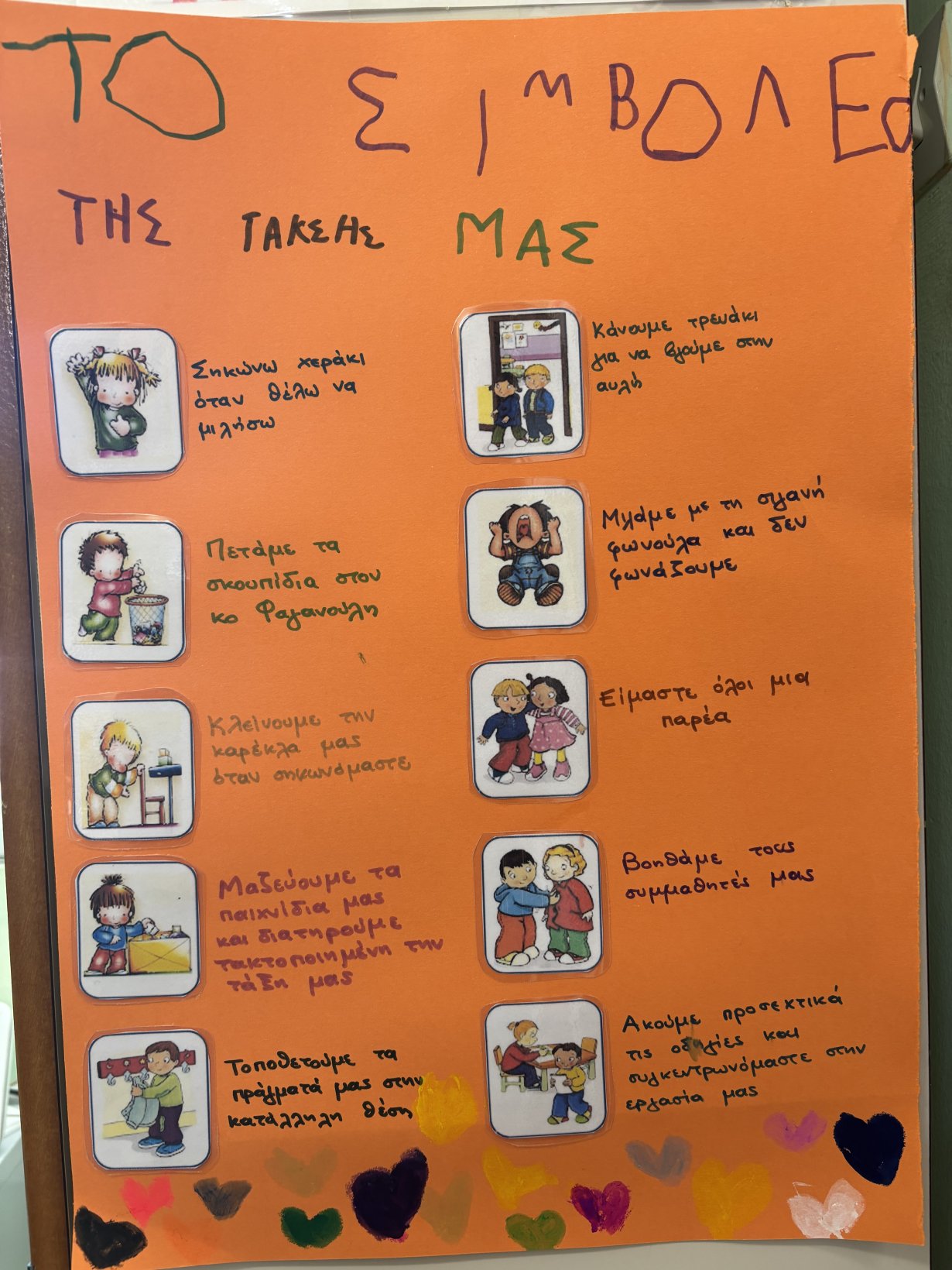 και δημιουργήσαμε το συμβόλαιο της τάξης μας, με τις παλάμες και τις υπογραφές μας!