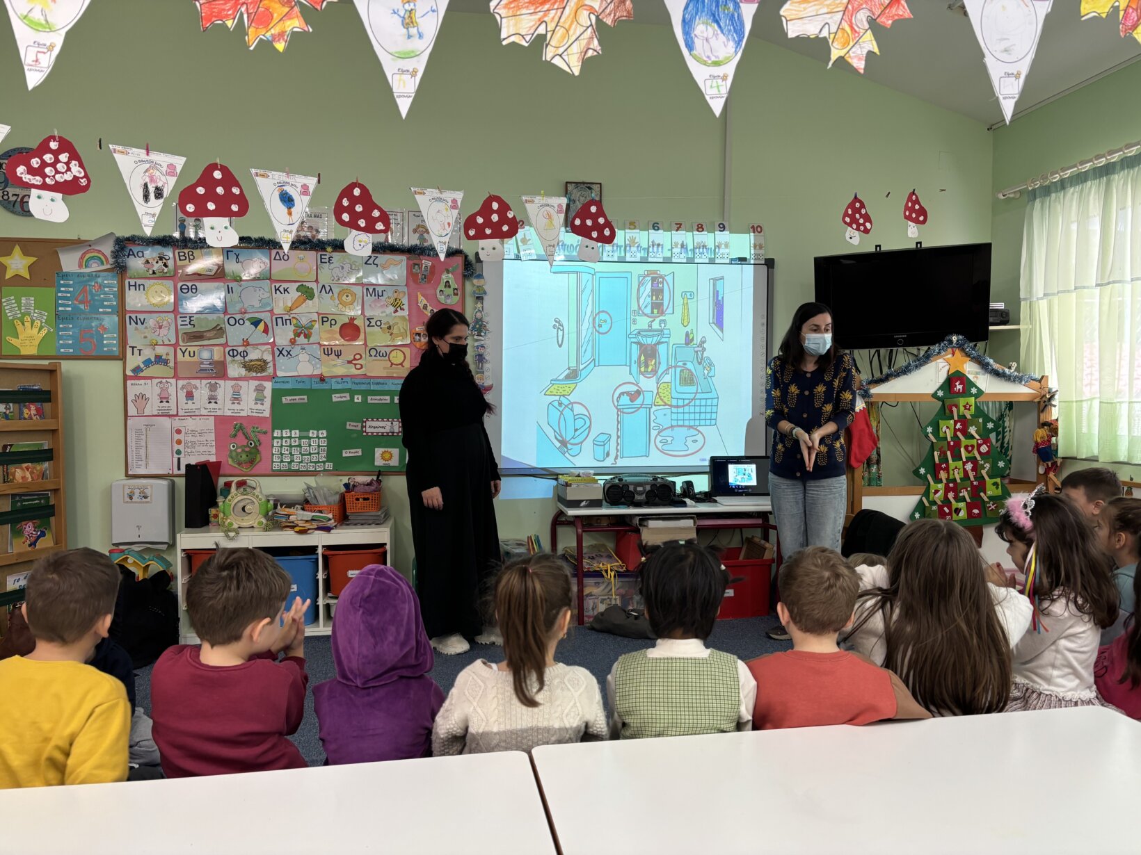 Παρακολουθήσαμε κουκλοθέατρο, συζητήσαμε για σωστές και λάθος συμπεριφορές μέσα στην τάξη και μιλήσαμε για το γιατί οι κανόνες είναι σημαντικοί και πώς μας βοηθούν να είμαστε ασφαλείς και χαρούμενοι. Στη συνέχεια συμπληρώσαμε φύλλο εργασίας όπου έπρεπε να ξεχωρίσουν τις σωστές από τις λανθασμένες συμπεριφορές μέσα στην τάξη.
