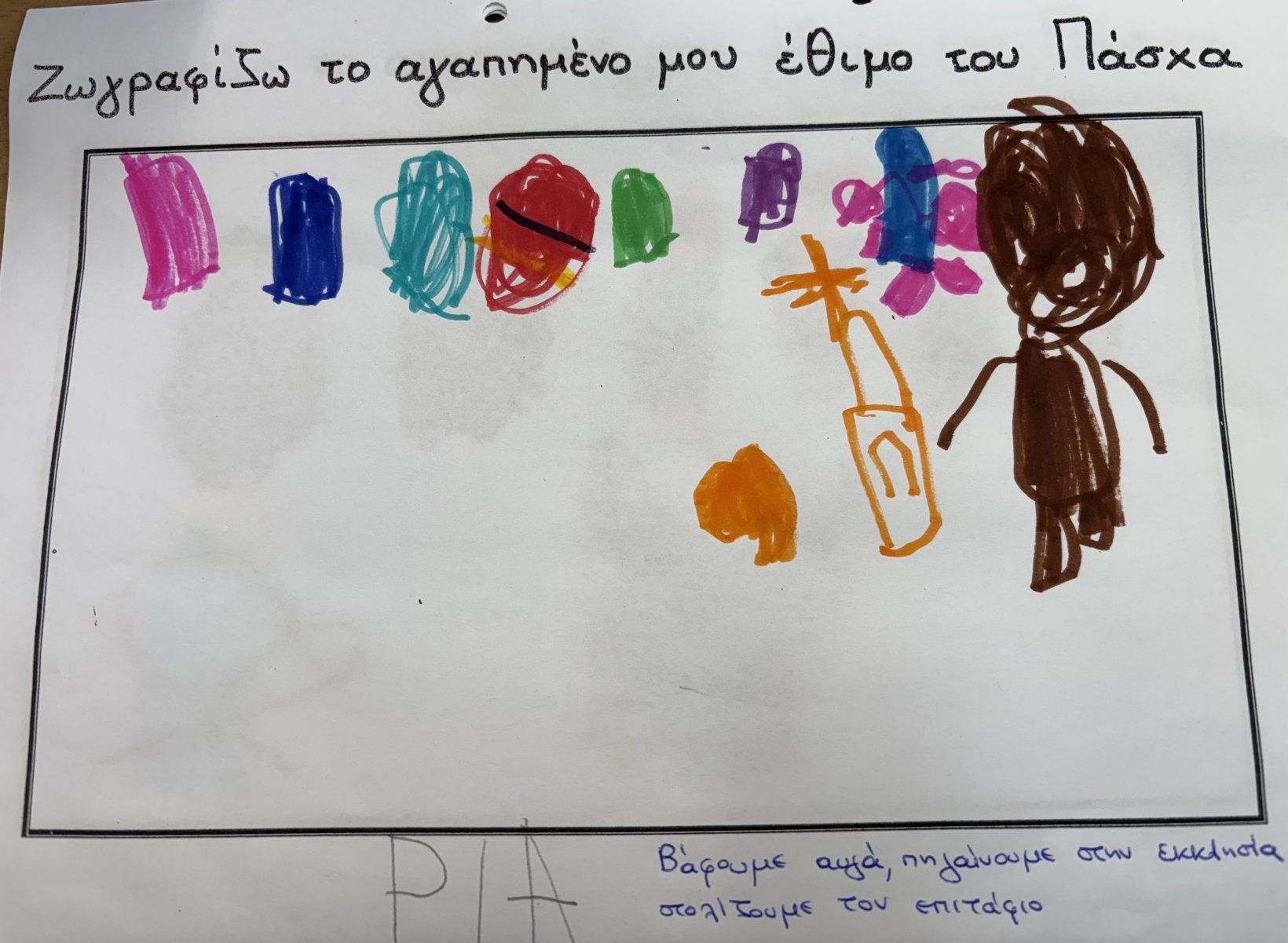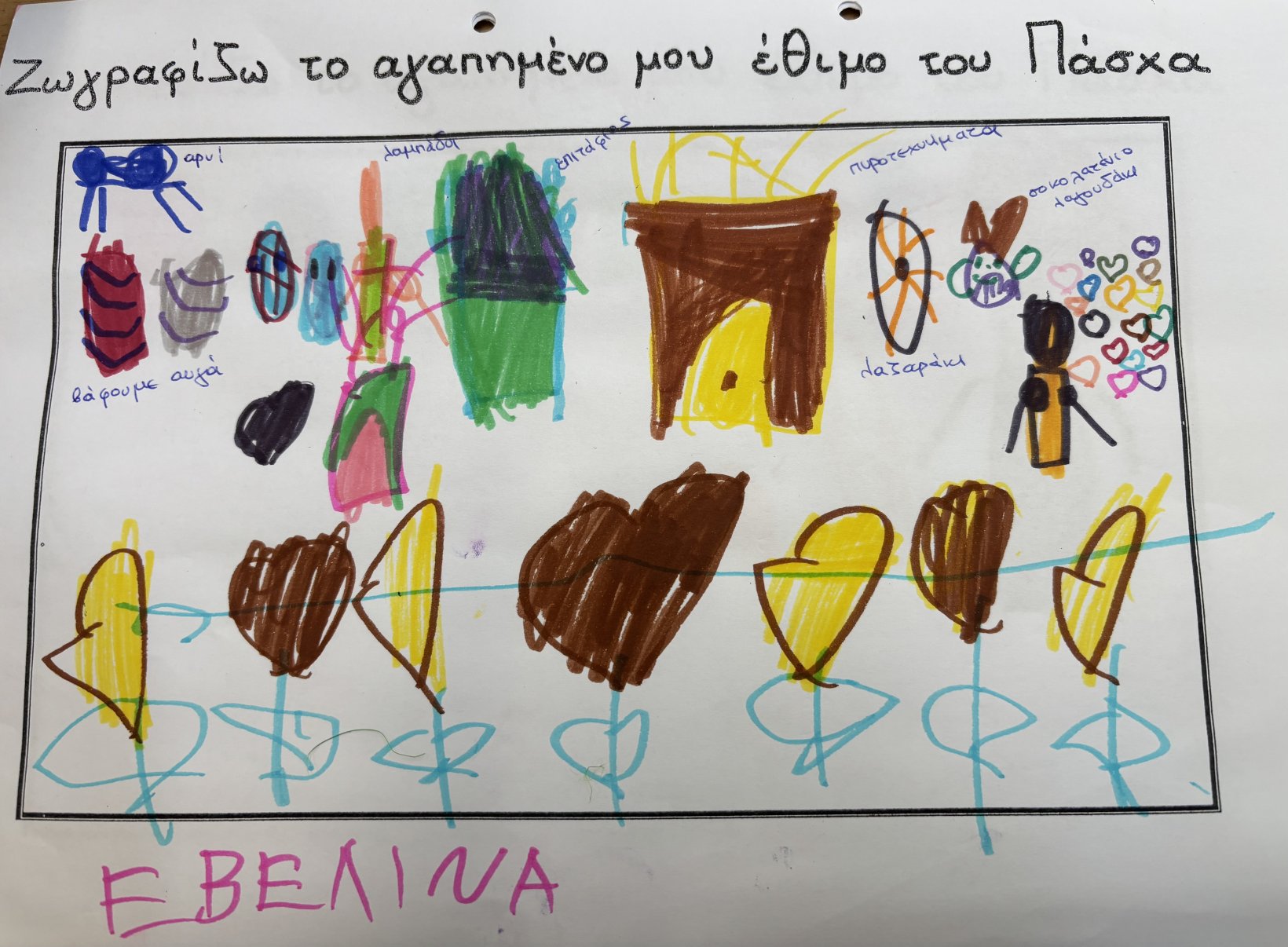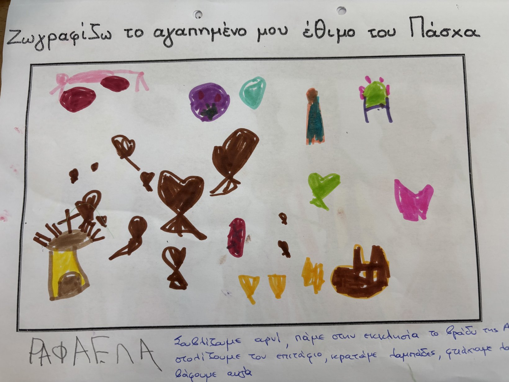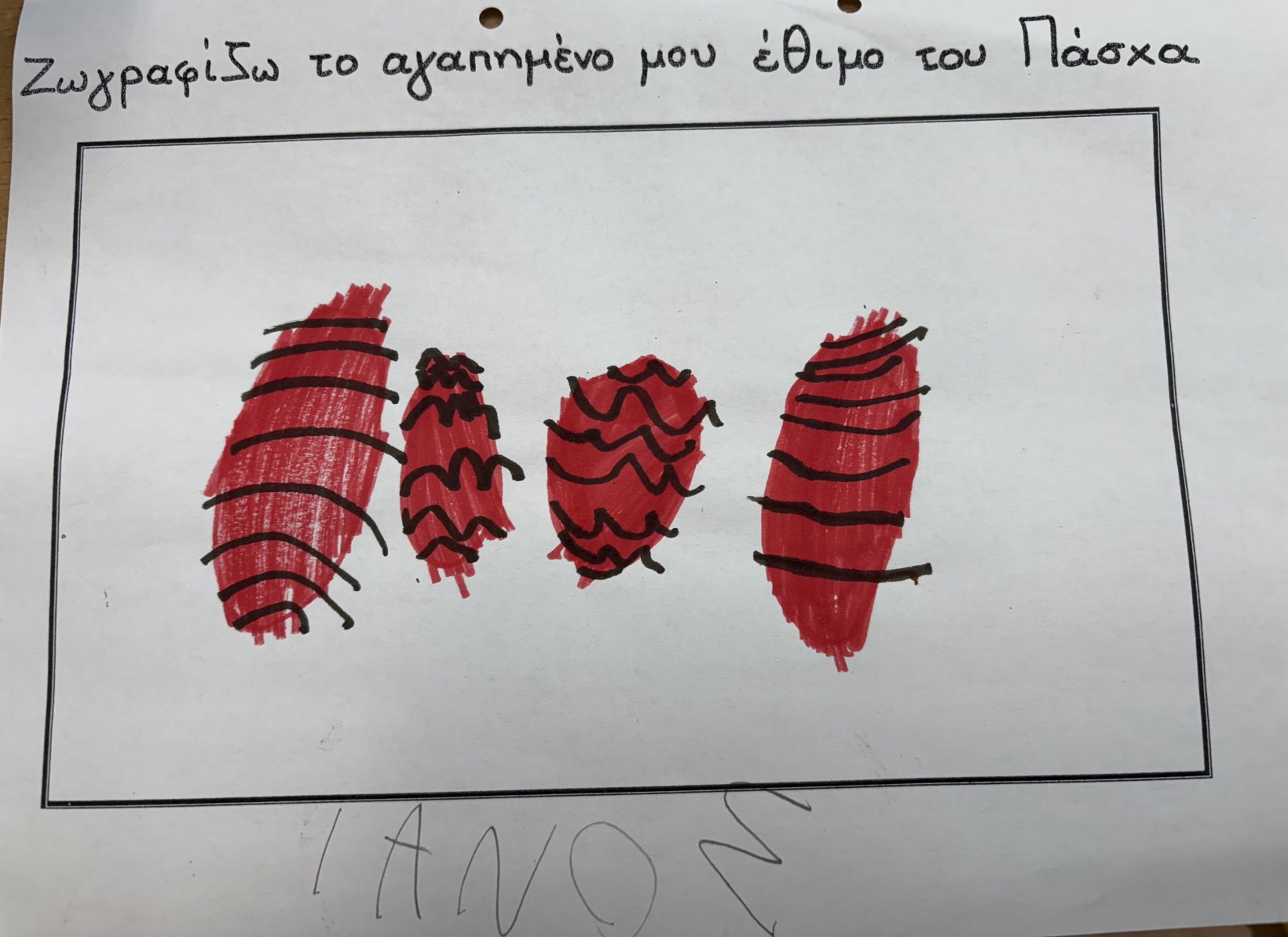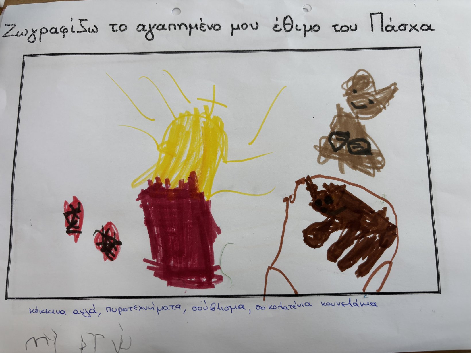 Μιλήσαμε για την ιστορία του Πάσχα, την είδαμε σε βίντεο και στη συνέχεια γνωρίσαμε όμορφα έθιμα που συνοδεύουν αυτές τις μέρες. Τα παιδιά ζωγράφισαν το αγαπημένο τους έθιμο!