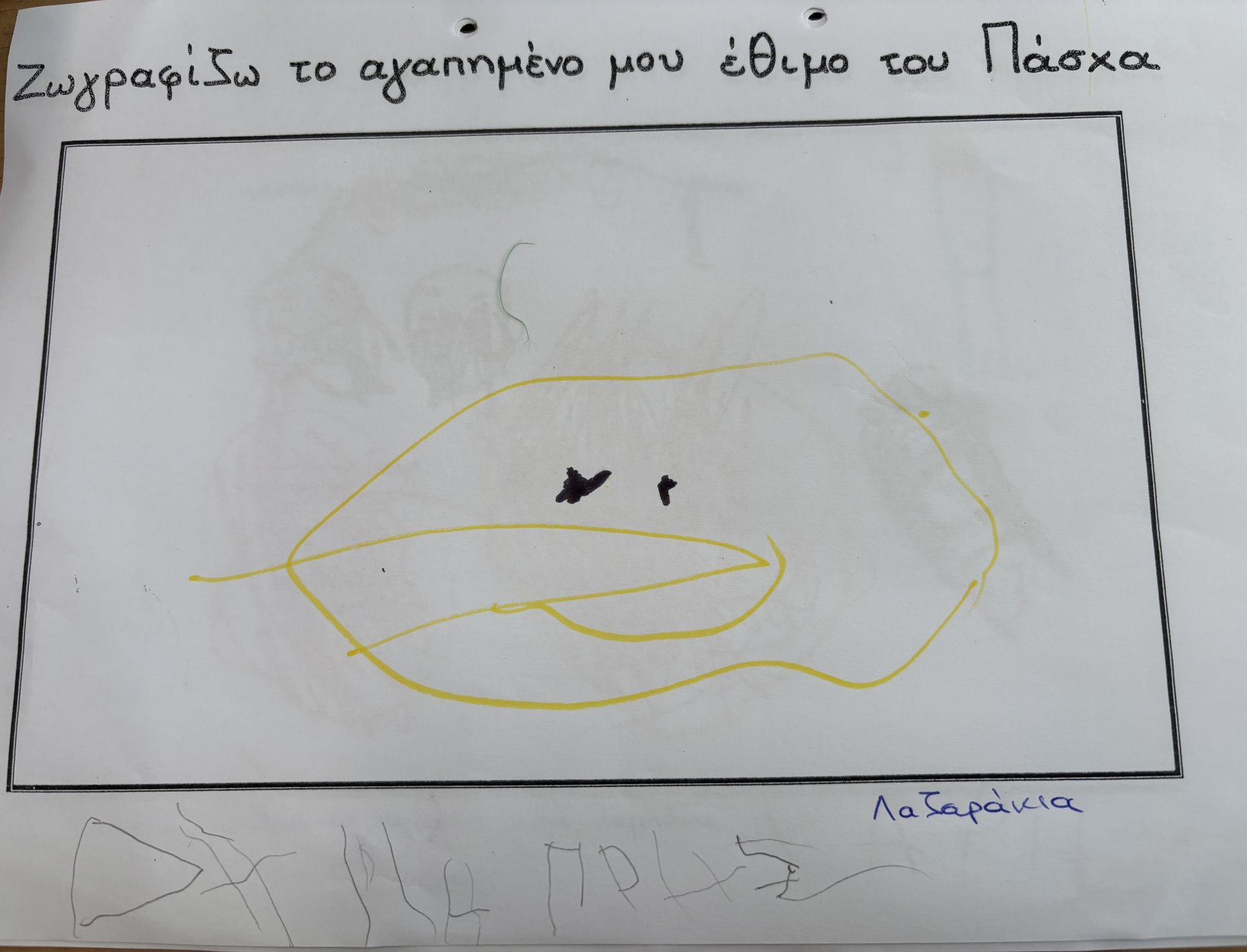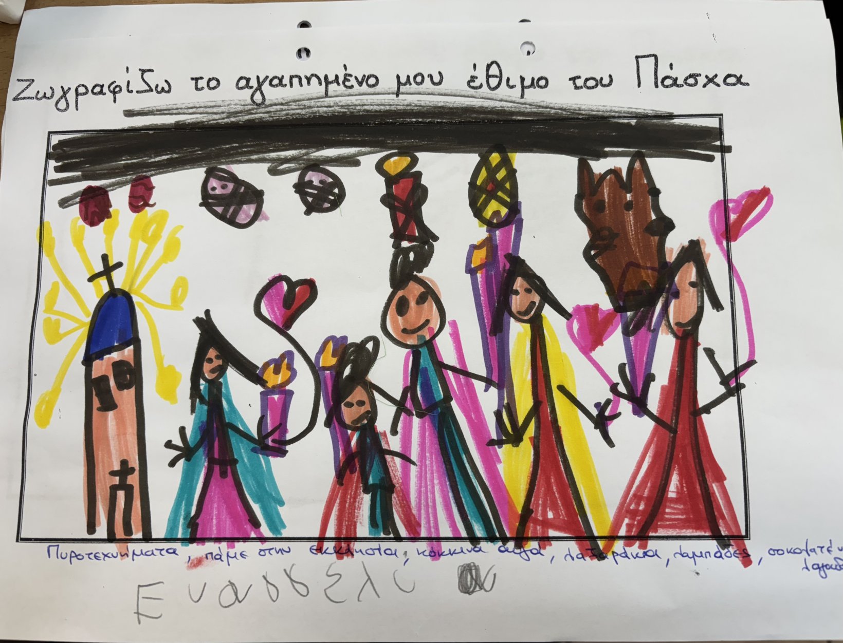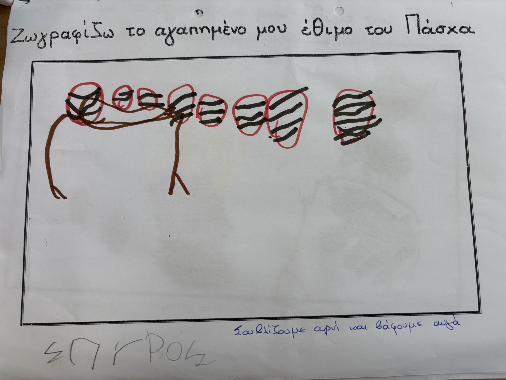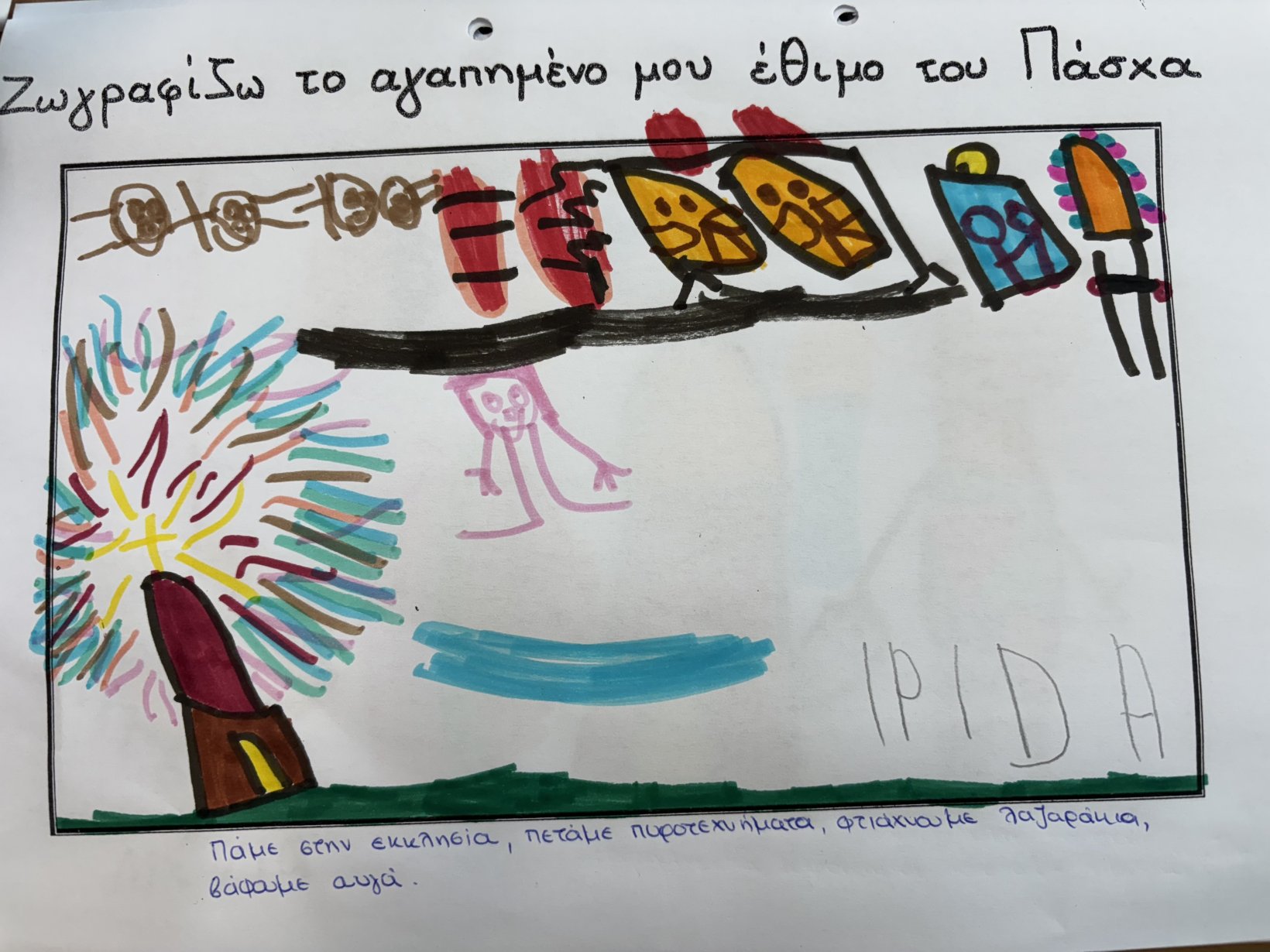 Μιλήσαμε για την ιστορία του Πάσχα, την είδαμε σε βίντεο και στη συνέχεια γνωρίσαμε όμορφα έθιμα που συνοδεύουν αυτές τις μέρες. Τα παιδιά ζωγράφισαν το αγαπημένο τους έθιμο!