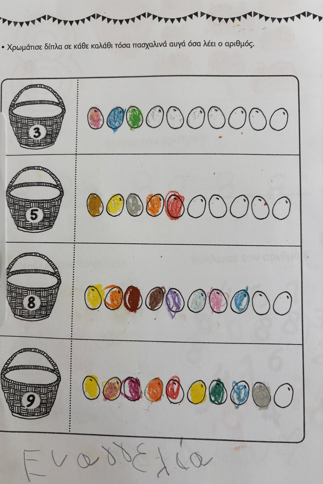 - Ζωγραφίσαμε τόσα αυγά όσα έλεγε ο αριθμός στο καλαθάκι…