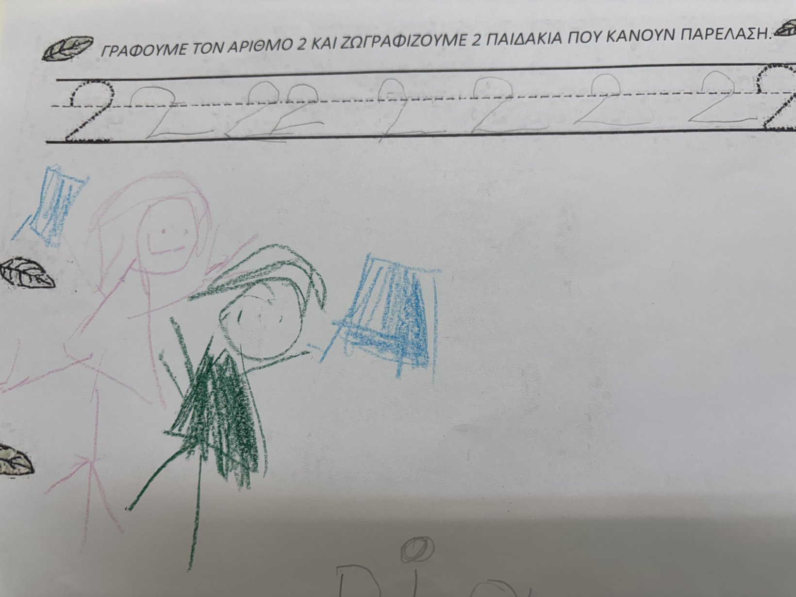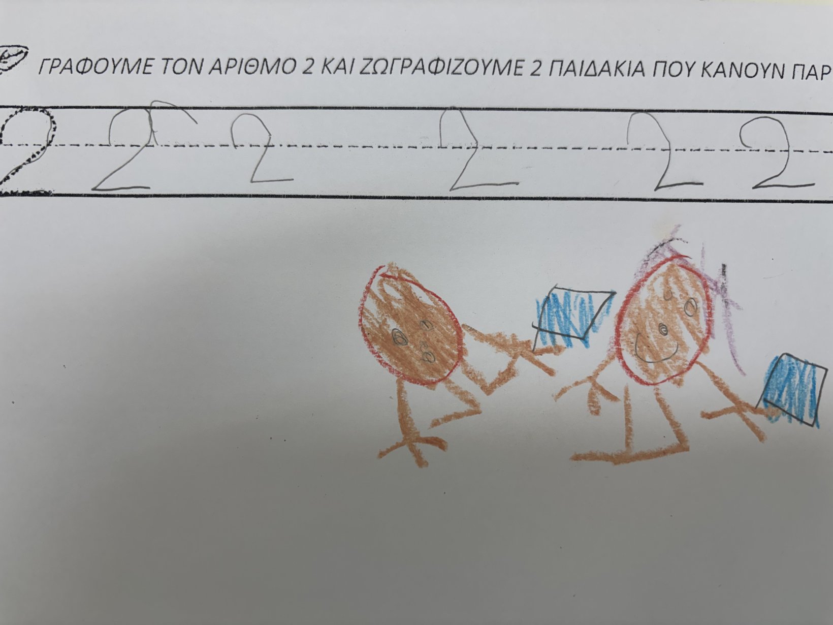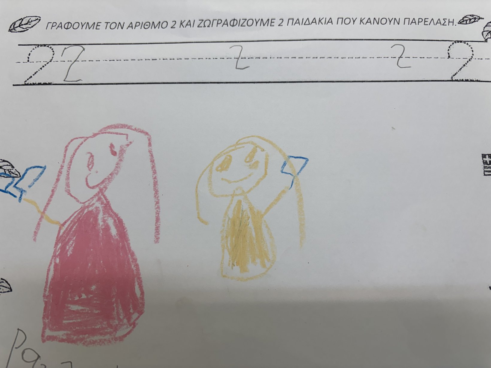 Μάθαμε τον αριθμό 2 και ζωγραφίσαμε δύο παιδιά που κάνουν παρέλαση.