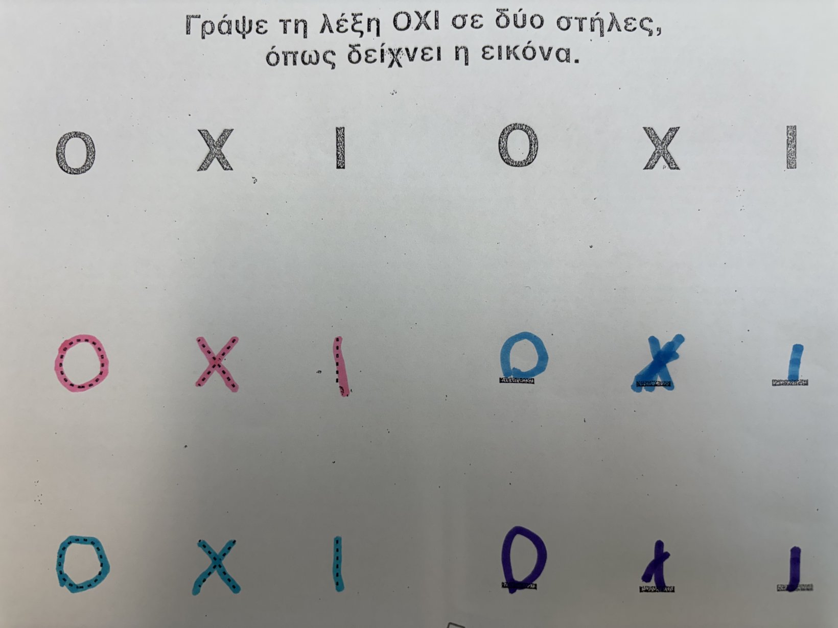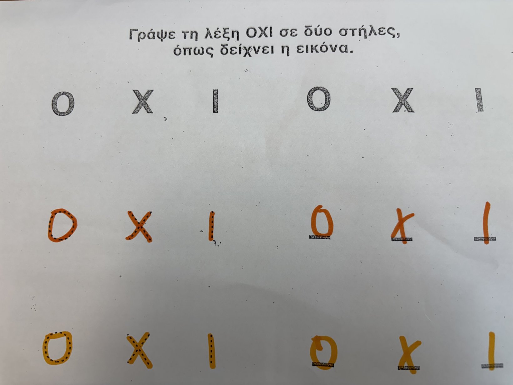 Εξασκηθήκαμε στη γραφή της λέξης “ΟΧΙ” και “ΑΕΡΑ”