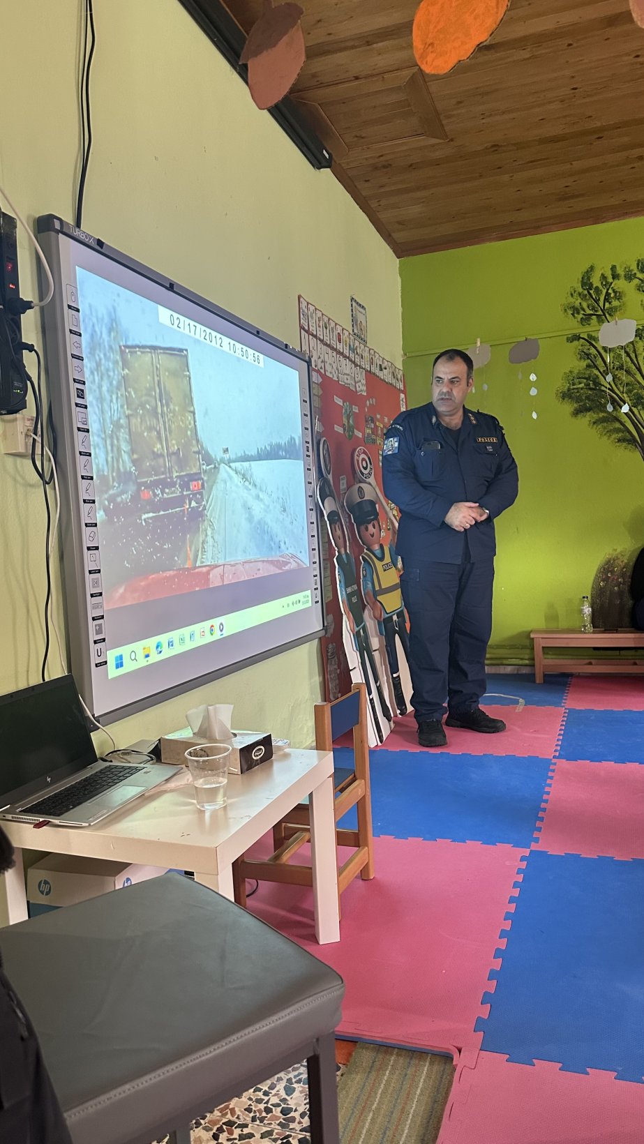 Σήμερα είχαμε τη χαρά να φιλοξενήσουμε στο σχολείο μας τον διοικητή του Αστυνομικού Τμήματος Σουφλίου, κ. Βομβέλλη Χαράλαμπο, ο οποίος υλοποίησε ένα εξαιρετικά ενδιαφέρον πρόγραμμα κυκλοφοριακής αγωγής. Στόχος της δράσης ήταν να γνωρίσουν οι μαθητές με απλό και βιωματικό τρόπο βασικούς κανόνες οδικής ασφάλειας. Καθώς η κυκλοφοριακή αγωγή αφορά πραγματικά ερεθίσματα, με τα οποία τα παιδιά έρχονται καθημερινά σε επαφή, αποτελεί μια ιδιαίτερα βιωματική δράση μέσα από την οποία καλλιεργείται ο σεβασμός, η υπευθυνότητα , η ενίσχυση της αυτονομίας και η χωρική τους αντίληψη.