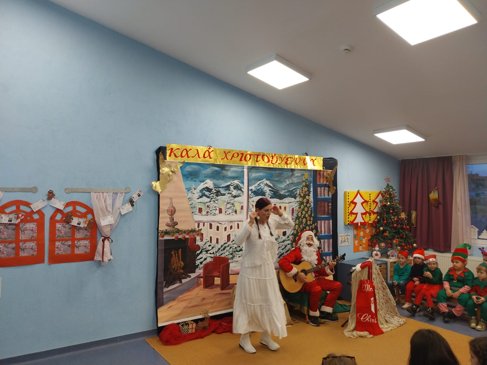 Ο Άγιος Βασίλης (Δημήτρης), με τη συνοδεία της κιθάρας του, καθοδηγούσε τη ροή της ιστορίας, δίνοντας τον ρυθμό στα τραγούδια και τους χορούς.