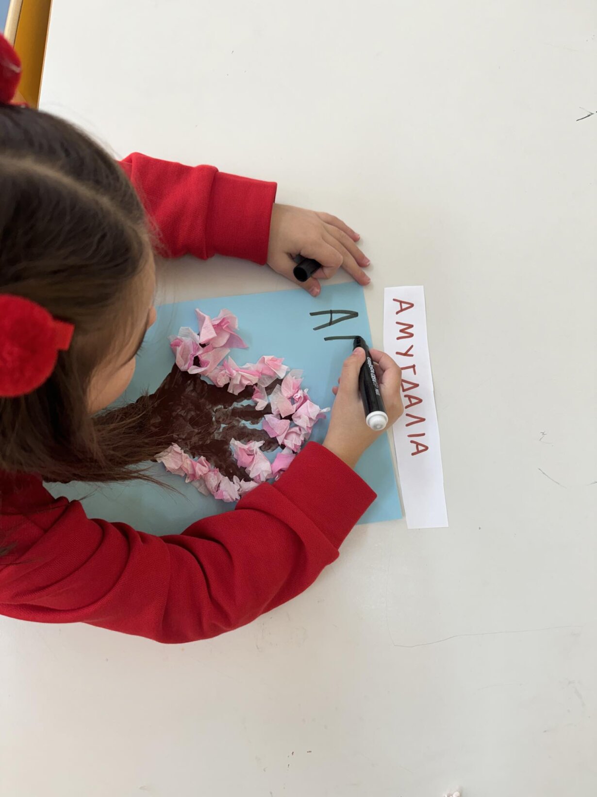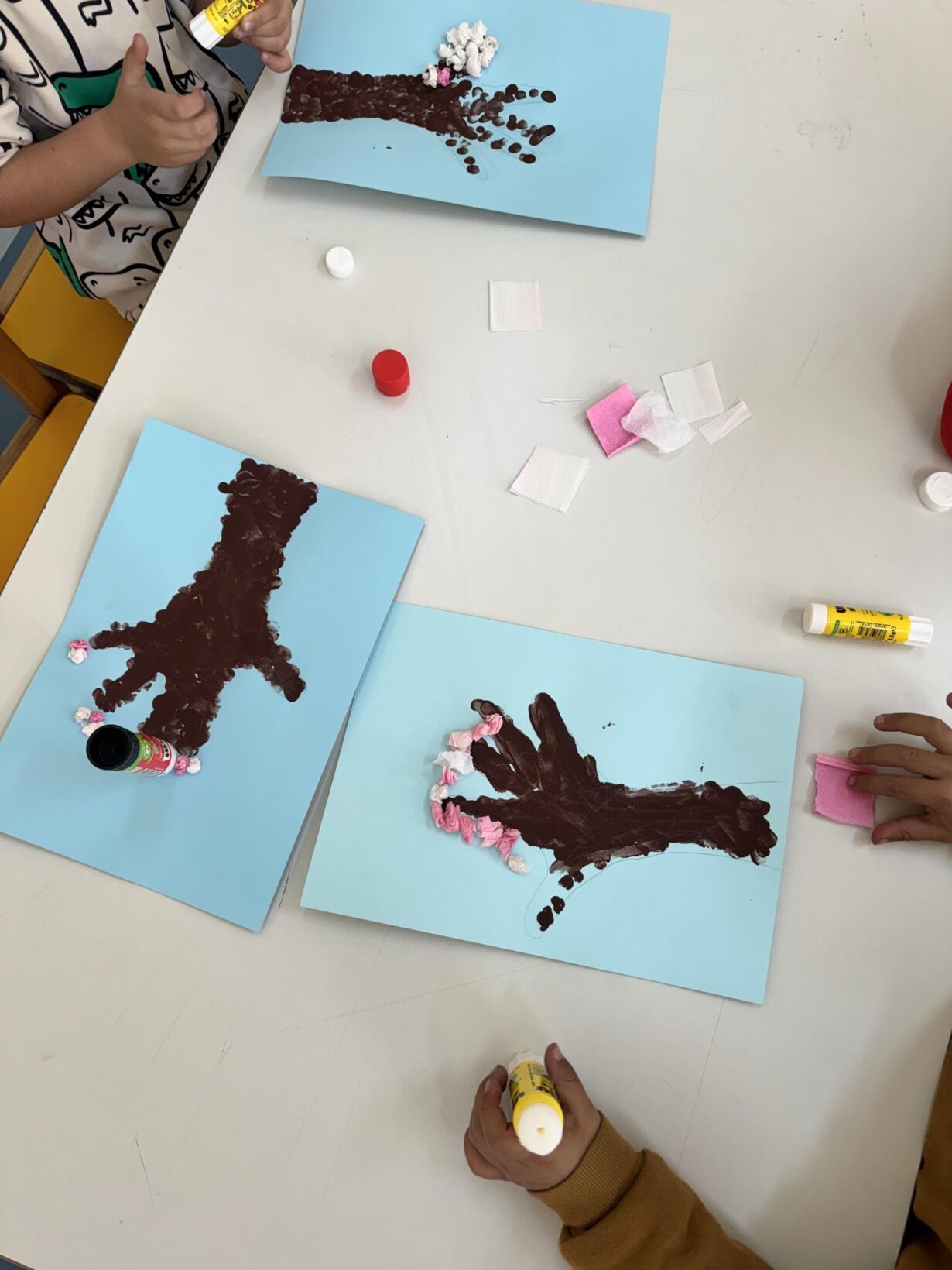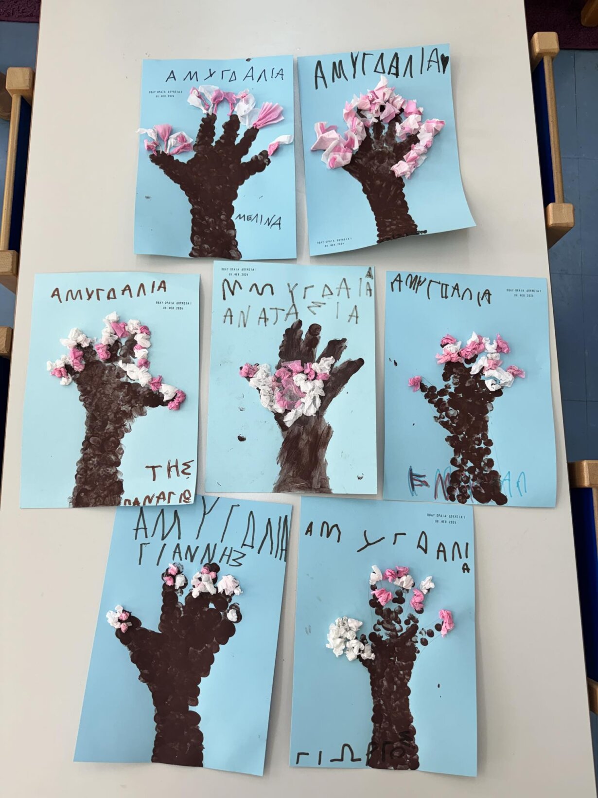Αποφασίσαμε να κατασκευάσουμε την δική μας αμυγδαλιά, χρησιμοποιώντας ως κορμό το περίγραμμα του χεριού μας.
