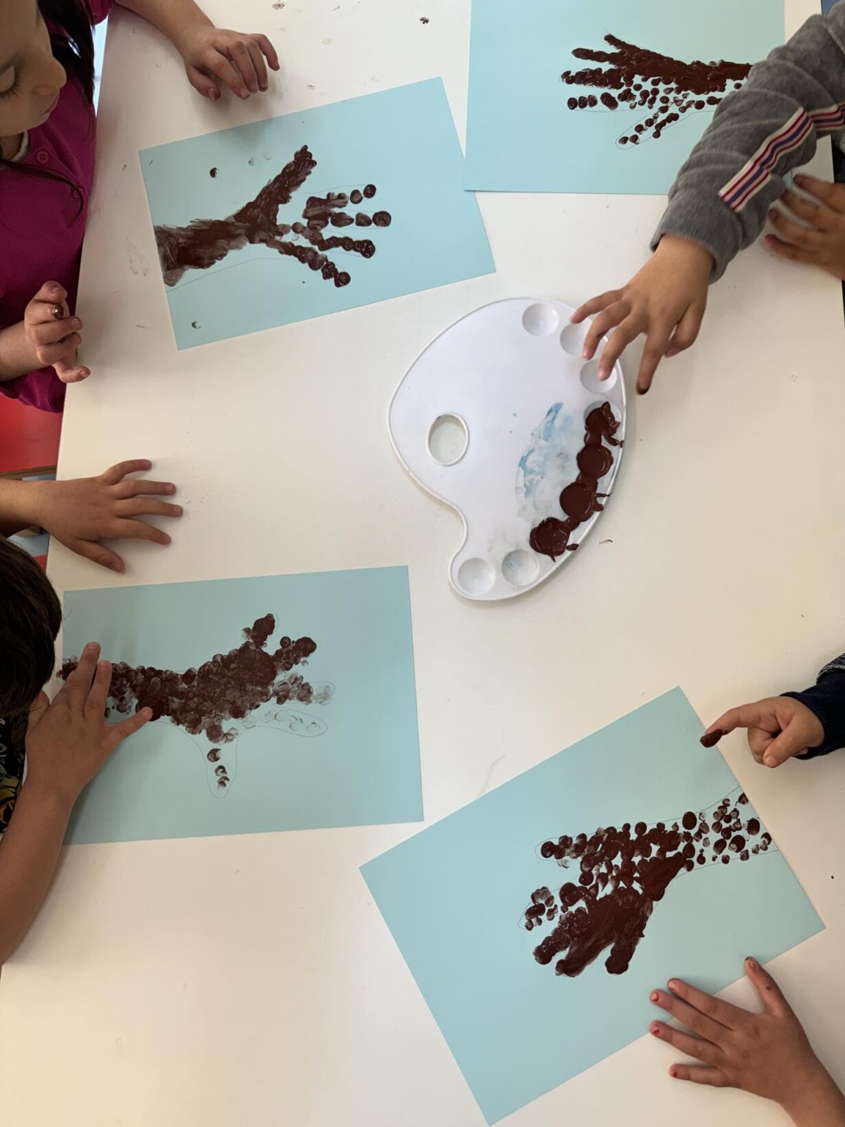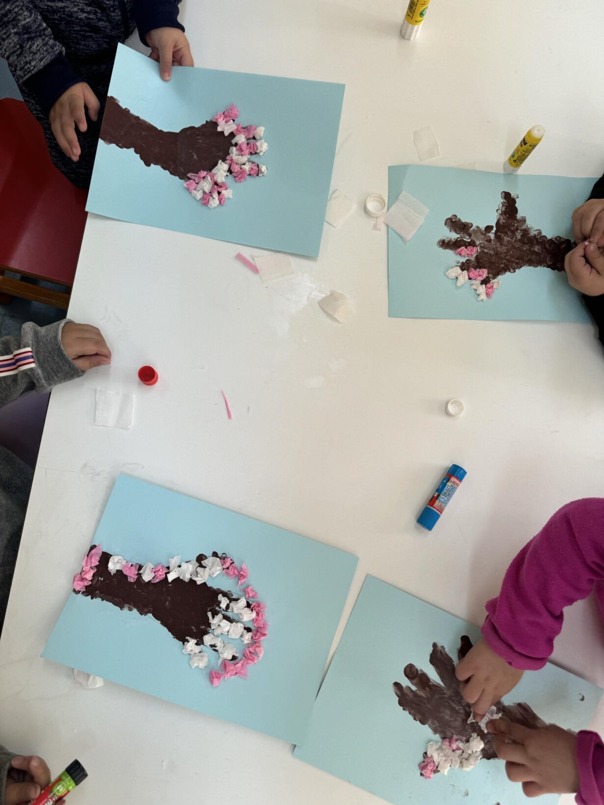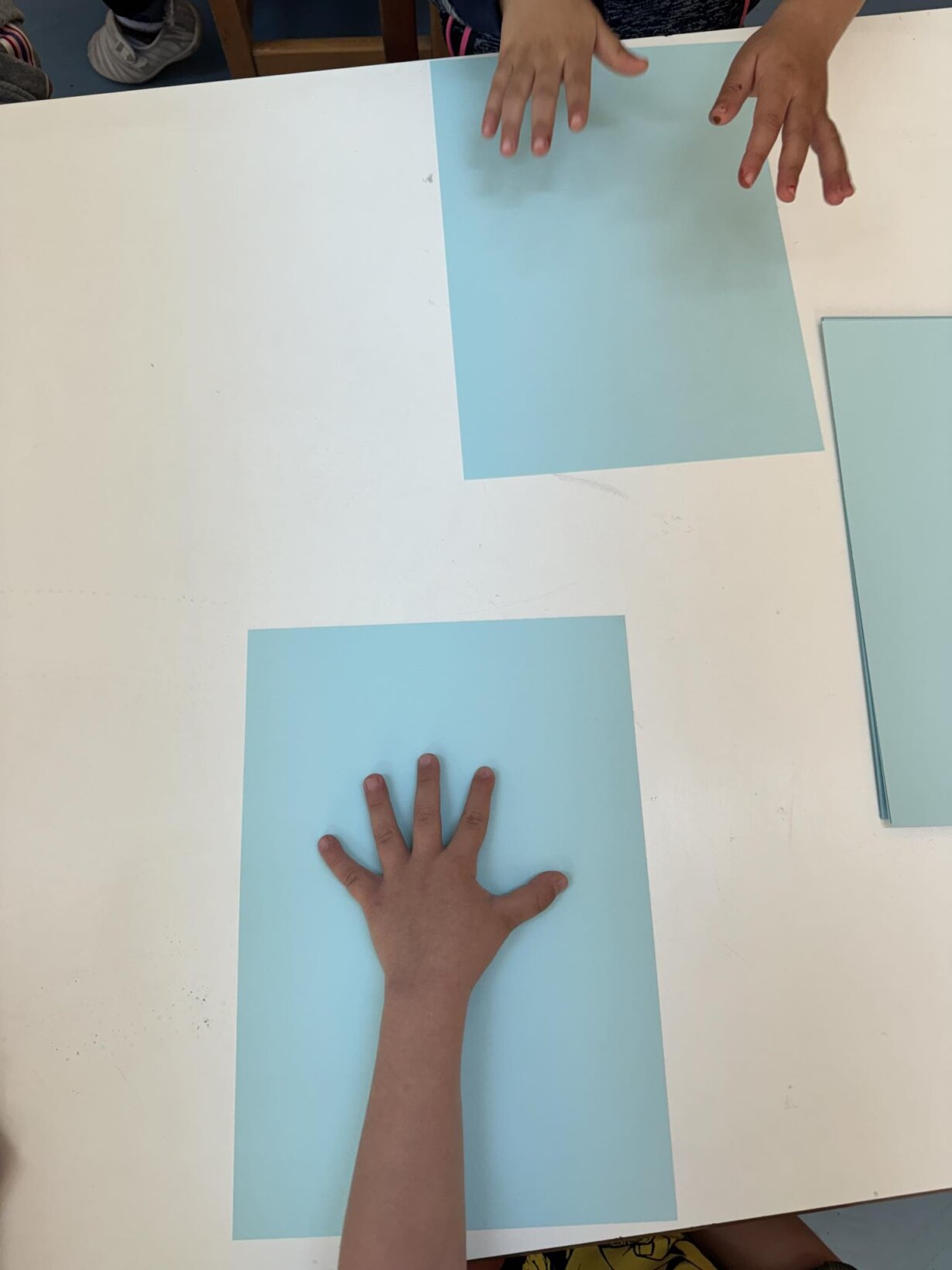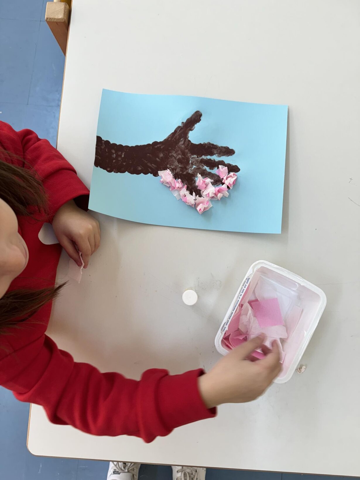 Αποφασίσαμε να κατασκευάσουμε την δική μας αμυγδαλιά, χρησιμοποιώντας ως κορμό το περίγραμμα του χεριού μας.
