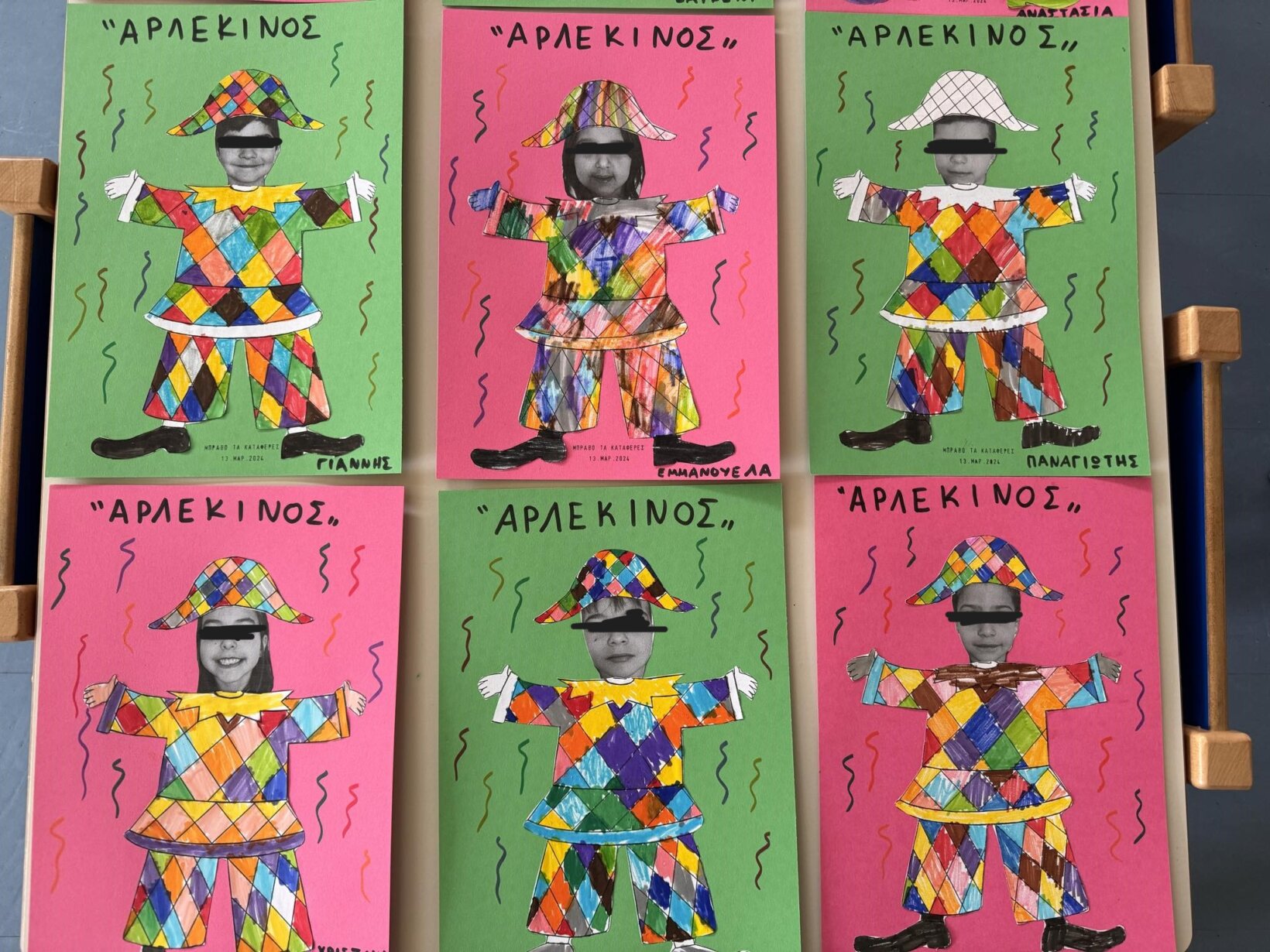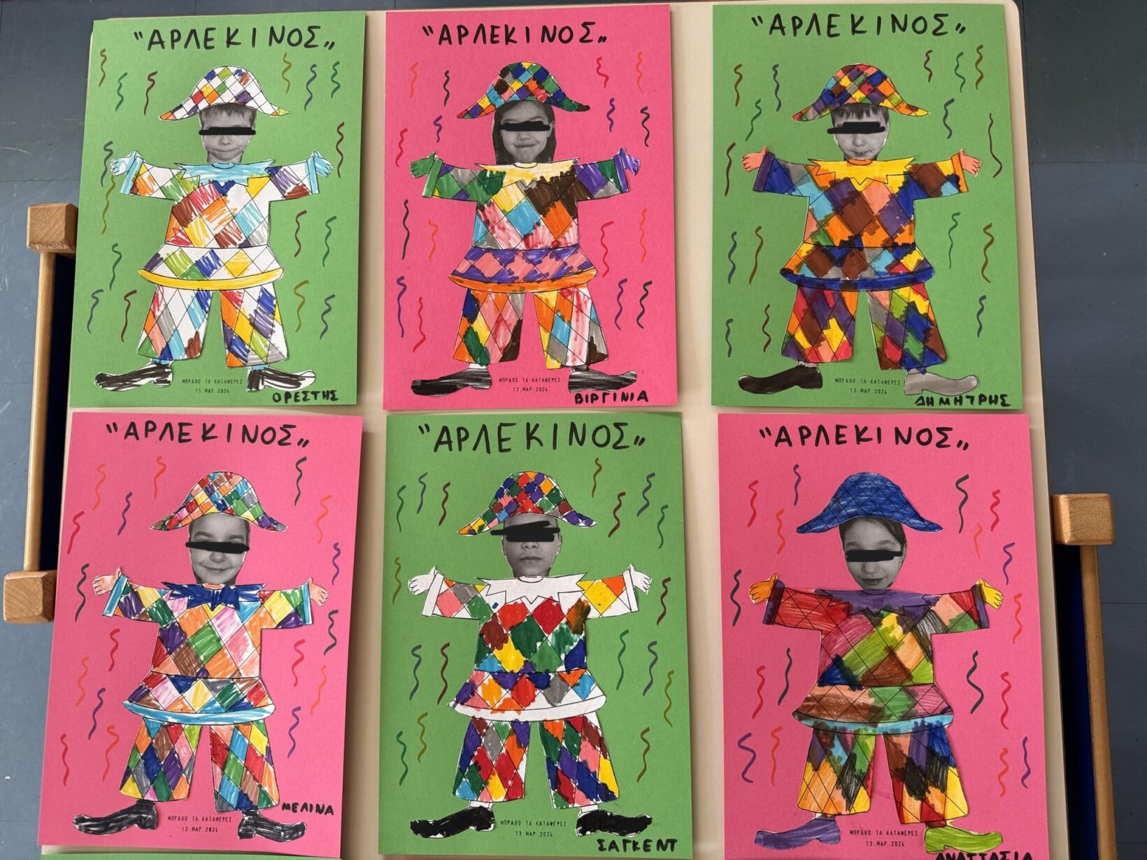 Διαβάσαμε την ιστορία του Αρλεκίνου και μας ήρθε η έμπνευση να μεταμφιεστούμε κι εμείς σαν τον Αρλεκίνο.