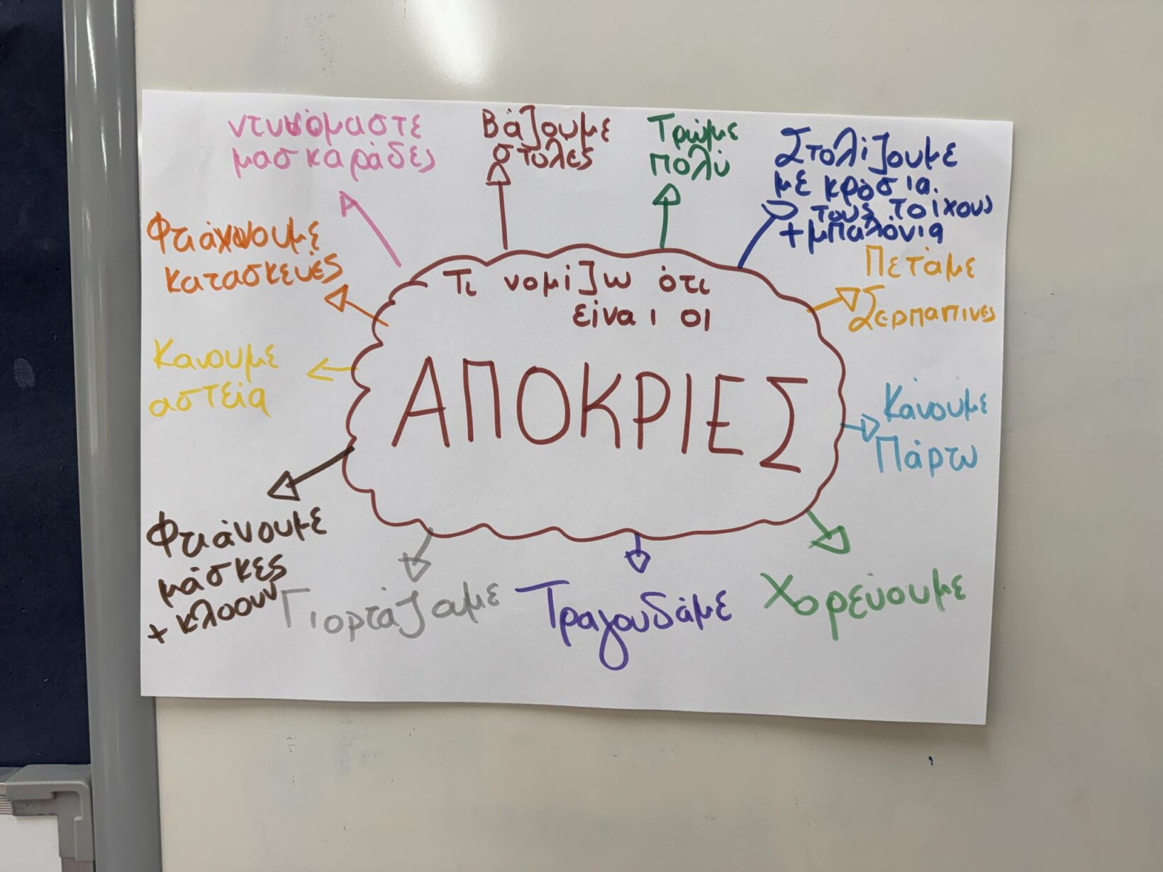 Αναφερθήκαμε στις Απόκριες και αρχικά ζητήσαμε από τα παιδιά να μας πουν τι νομίζουν ότι είναι οι Απόκριες.