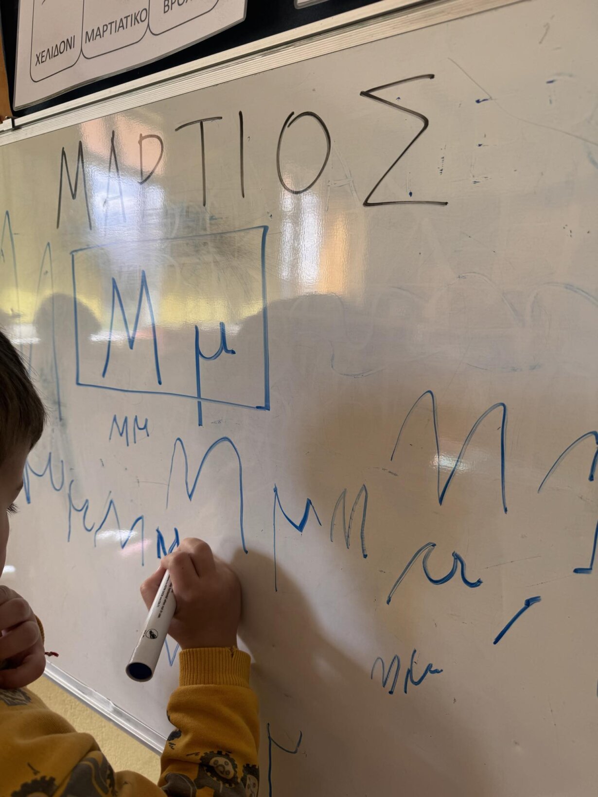 Μιλήσαμε για τον Μάρτιο και τις γιορτές που κρύβει. Διαβάσαμε παροιμίες, γνωμικά και αινίγματα. Γνωρίσαμε το γράμμα Μμ. Το γράψαμε, το ζωγραφίσαμε και βρήκαμε λέξεις απο αυτό.
