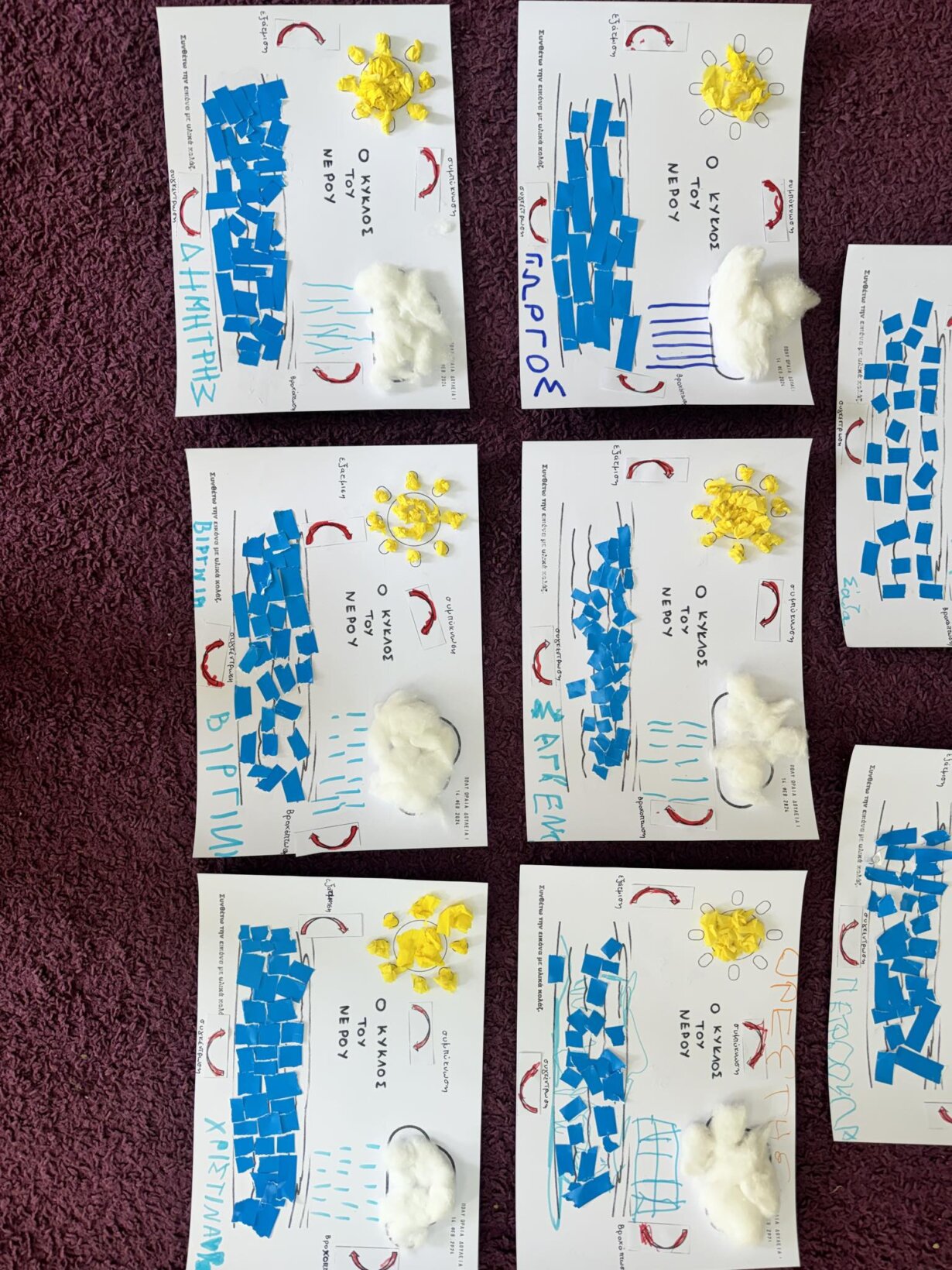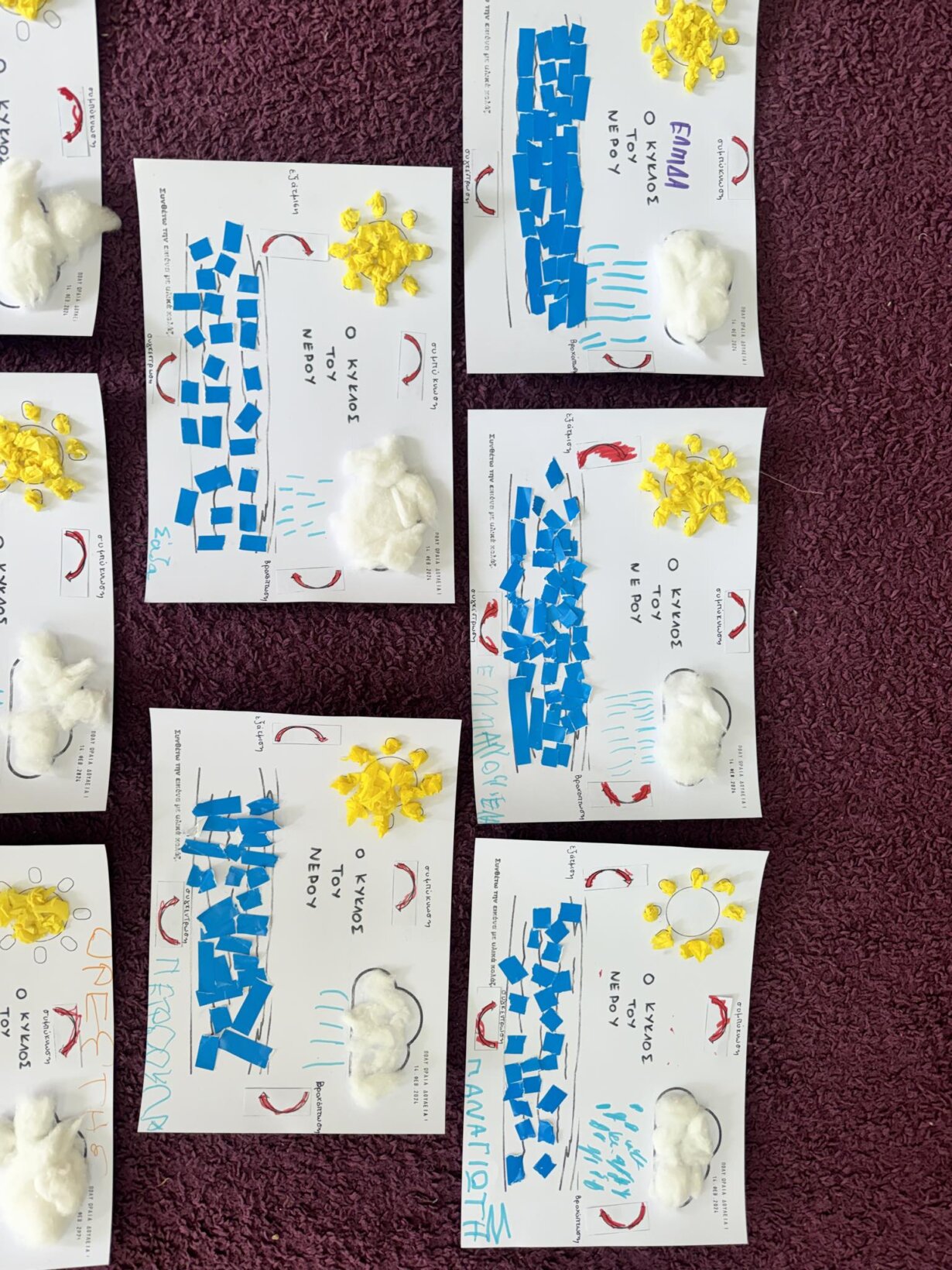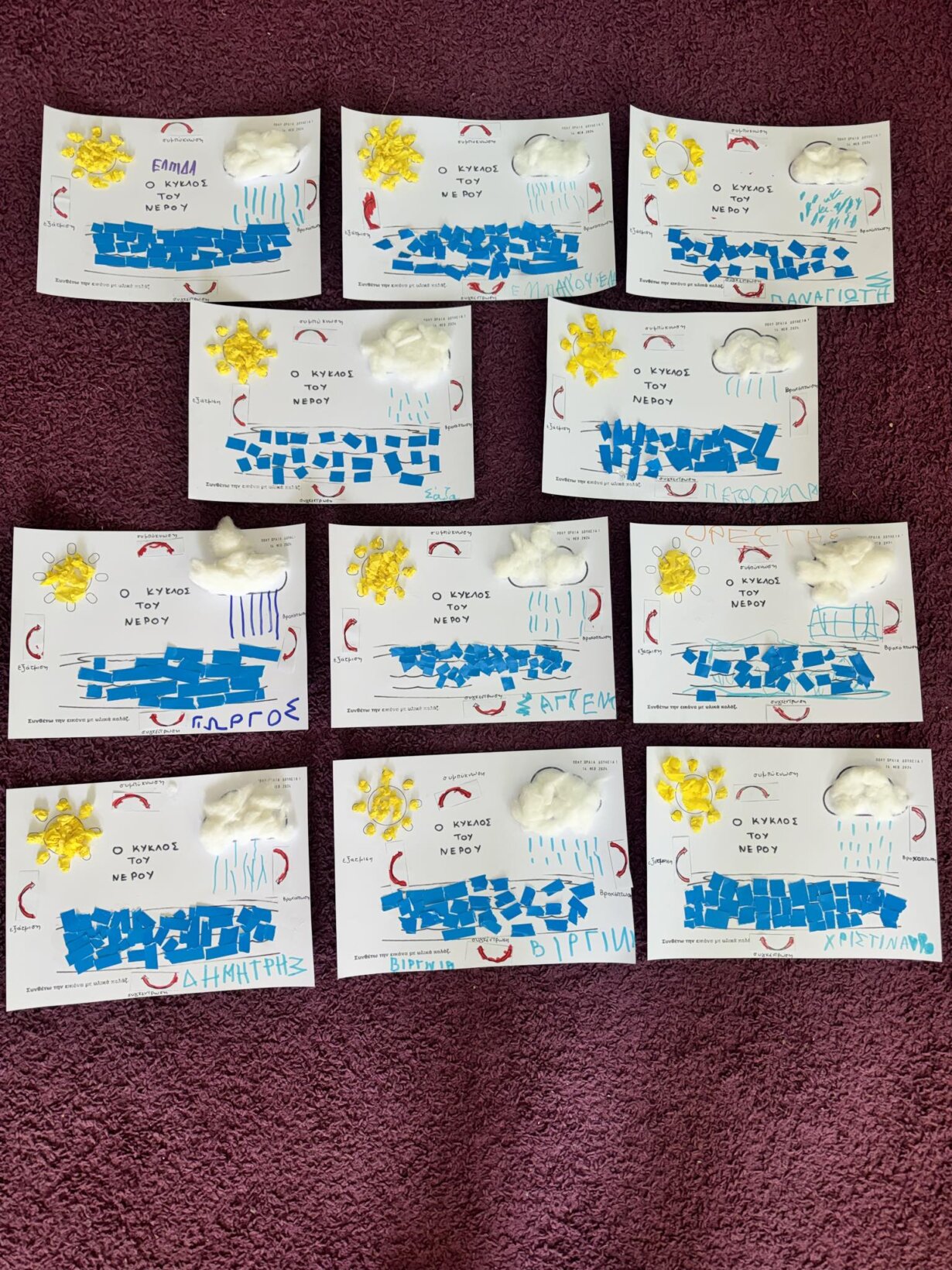 Αποφασίσαμε να φτιάξουμε και ατομικά τον κύκλο του νερού για να στολίσουμε την τάξη μας.
