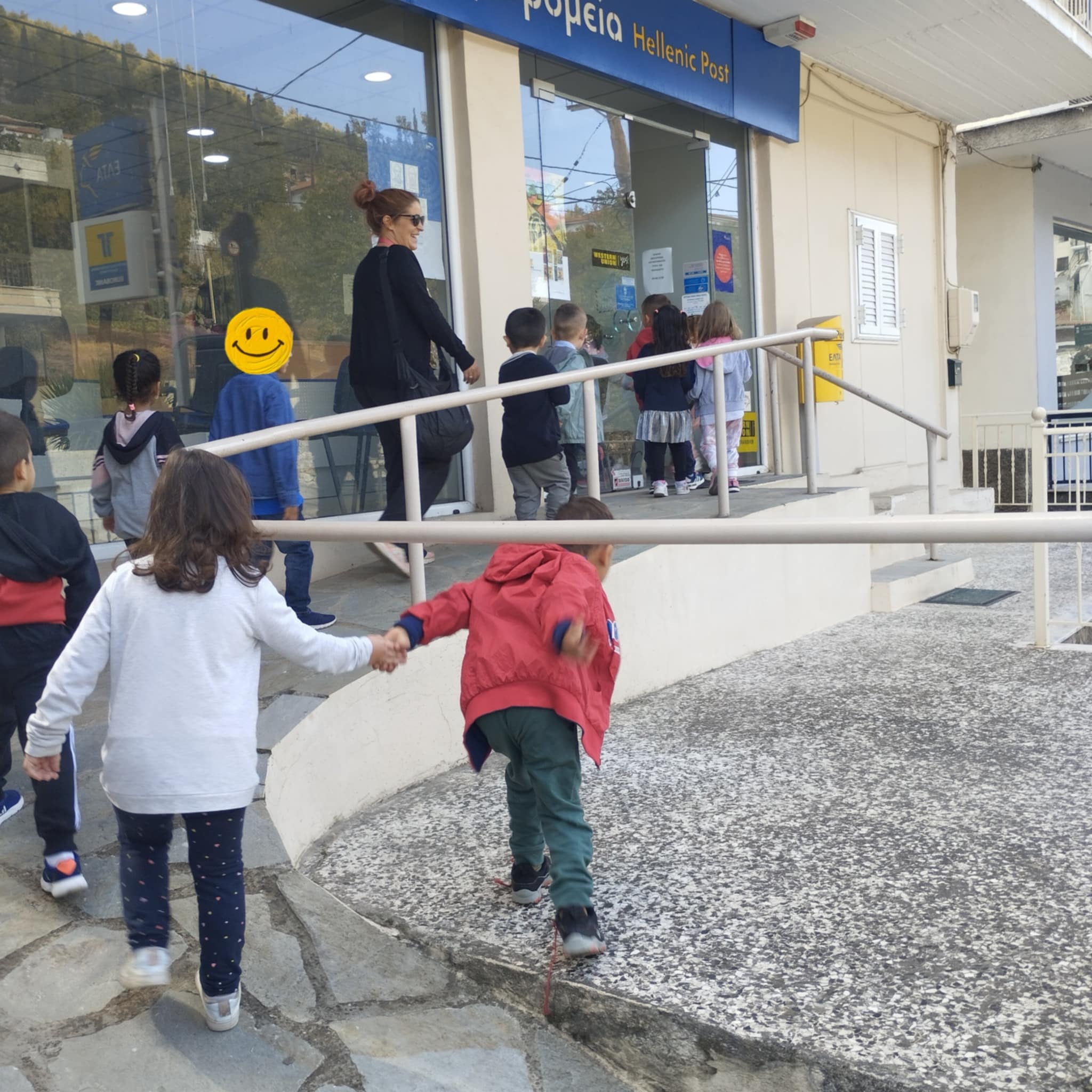 Άλλη μέρα βγήκαμε στο χωριό με τα τριγωνάκια μας και είπαμε τα κάλαντα στο ΚΑΠΗ και στο Ταχυδρομείο του χωριού μας! Φτιάξαμε χριστουγεννιάτικα μπισκότα στην κουζίνα του σχολείου μας και μύρισαν Χριστούγεννα! Ετοιμάσαμε όμορφες χριστουγεννιάτικες κατασκευές και τσάντες ” έλατα ” !