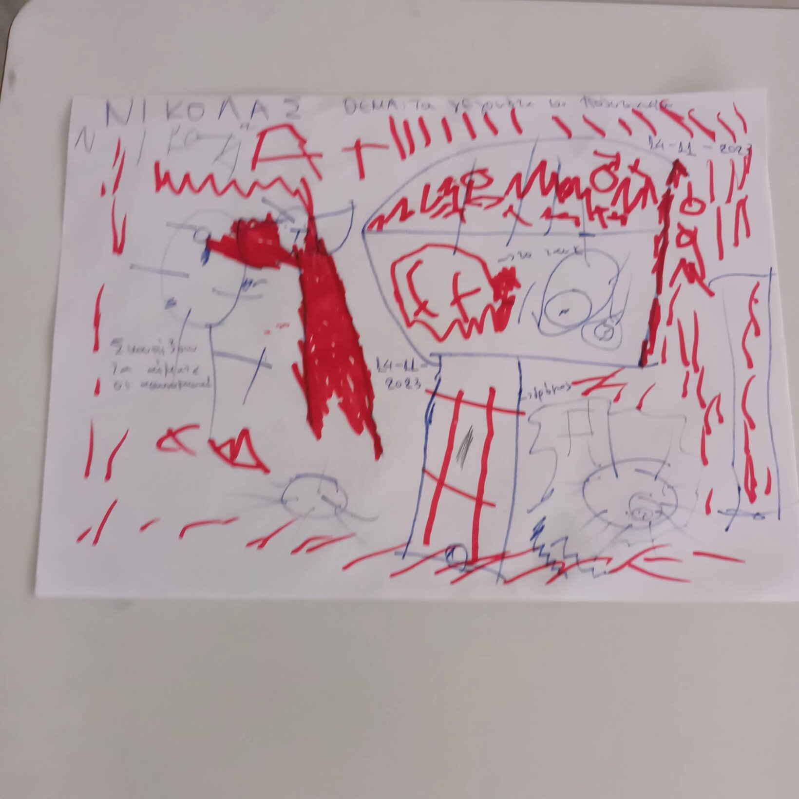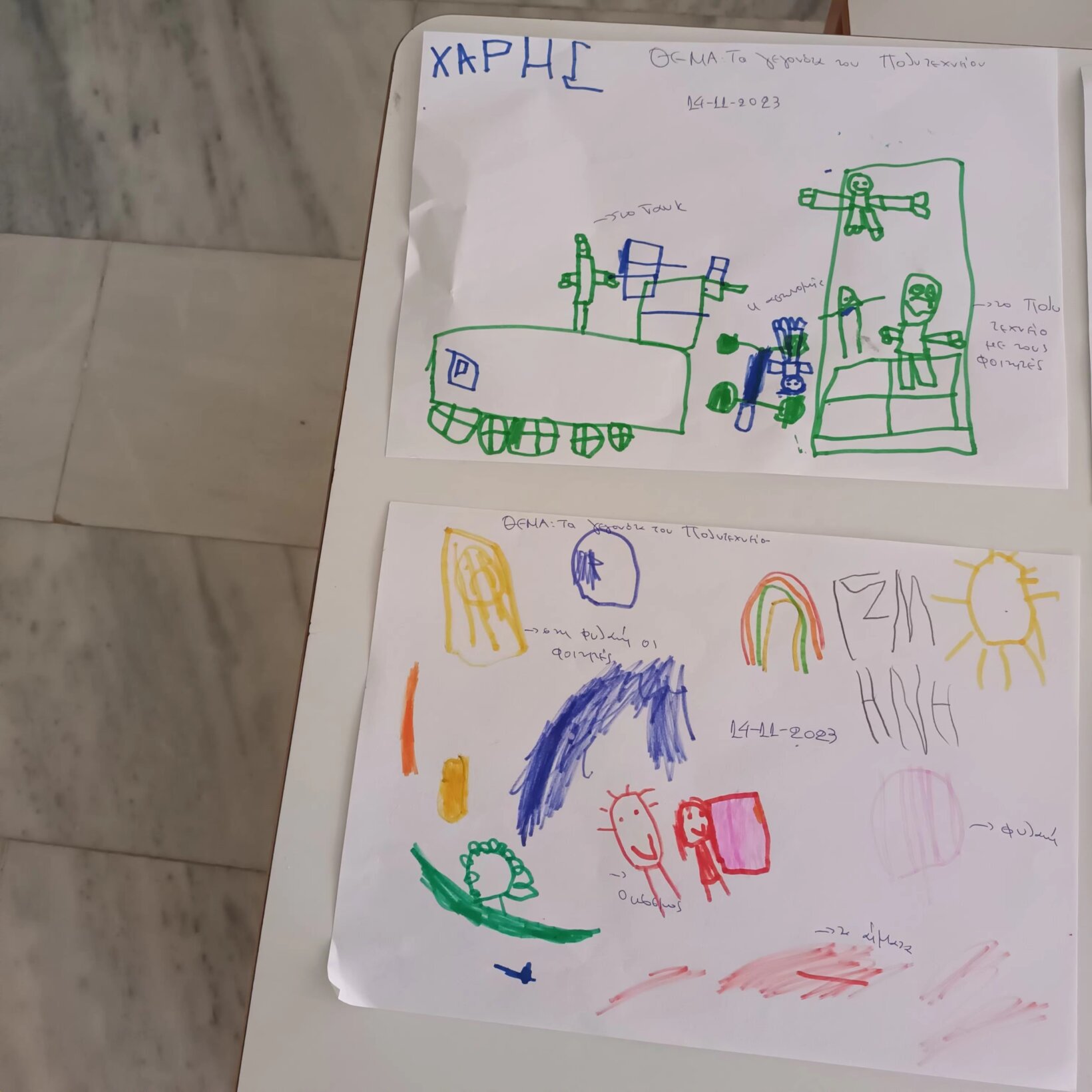 Τα παιδιά αποτύπωσαν τα γεγονότα του Πολυτεχνείου που είδαν σε εποπτικό υλικό,βιβλία,βίντεο εκπαιδευτικά,με τον δικό τους τρόπο: