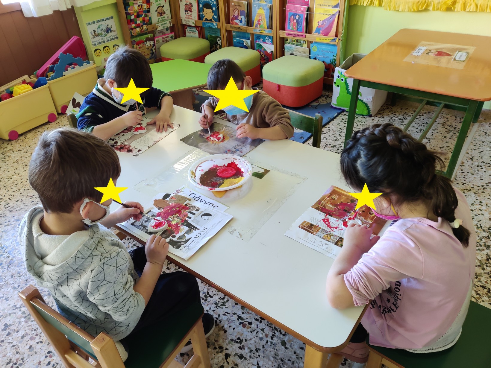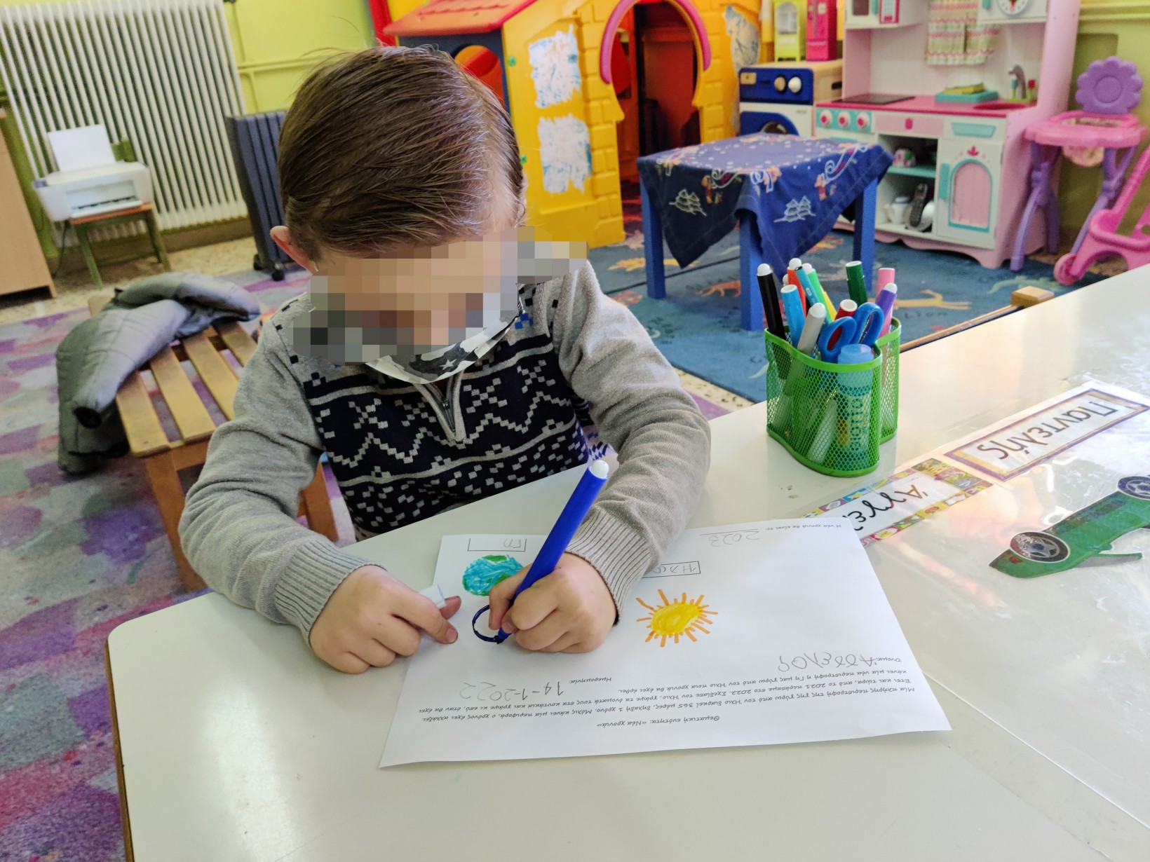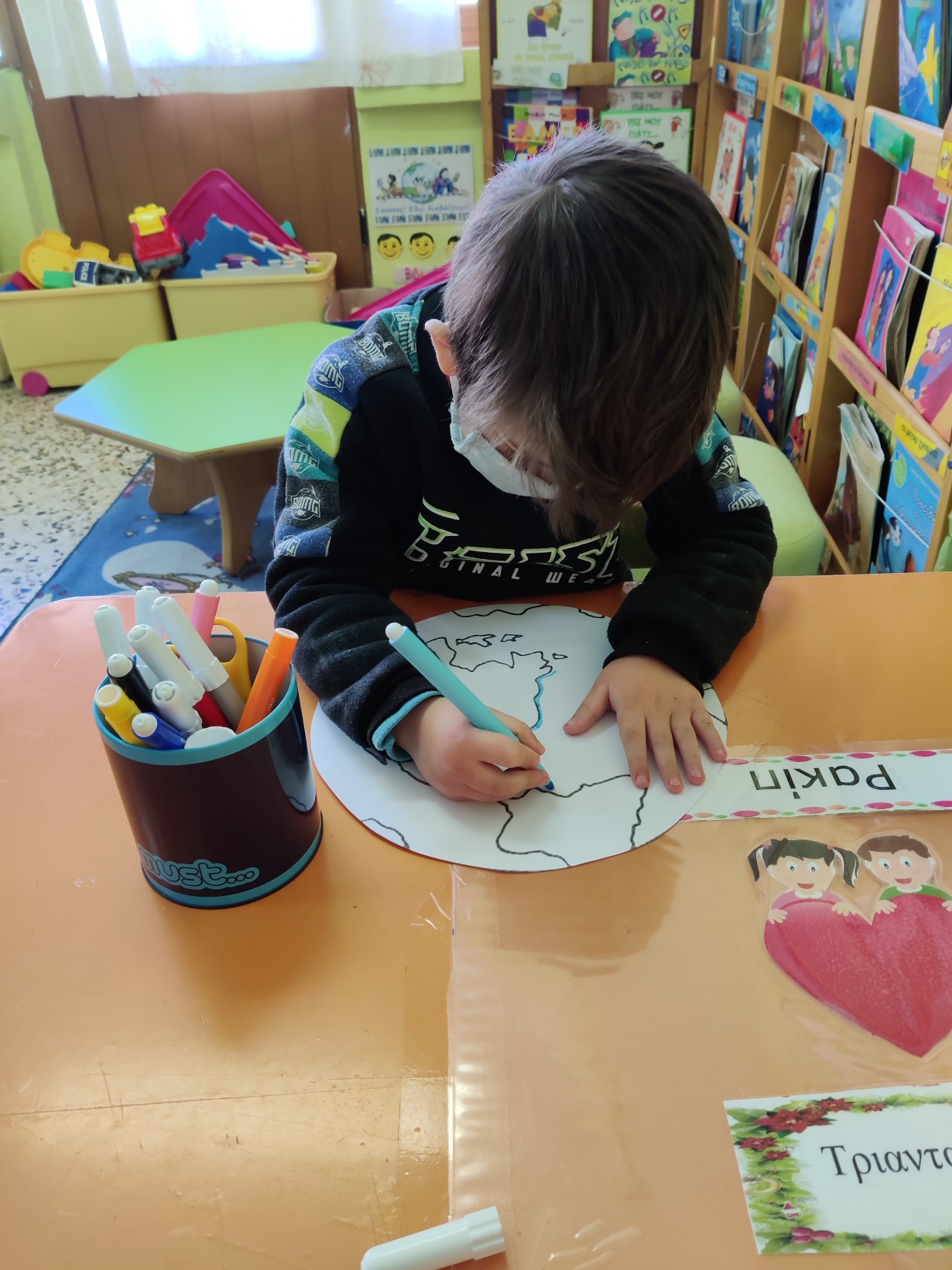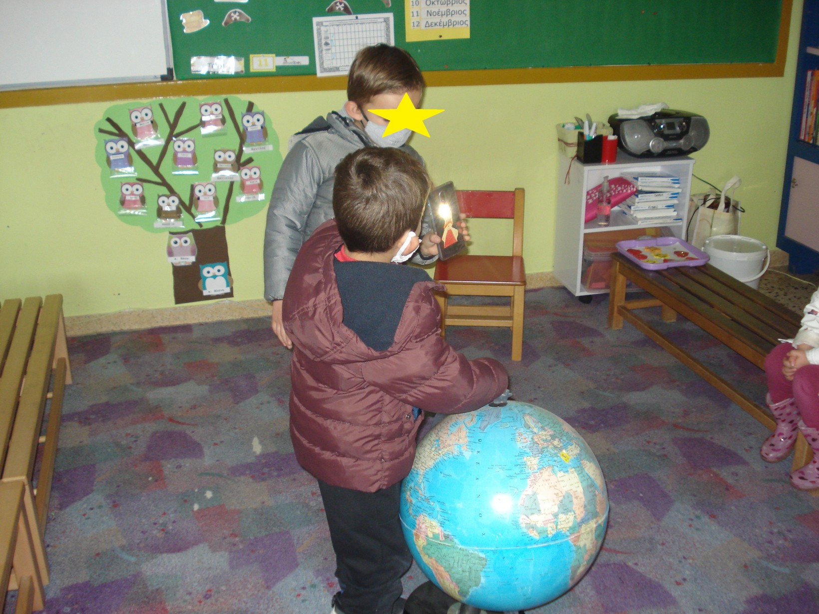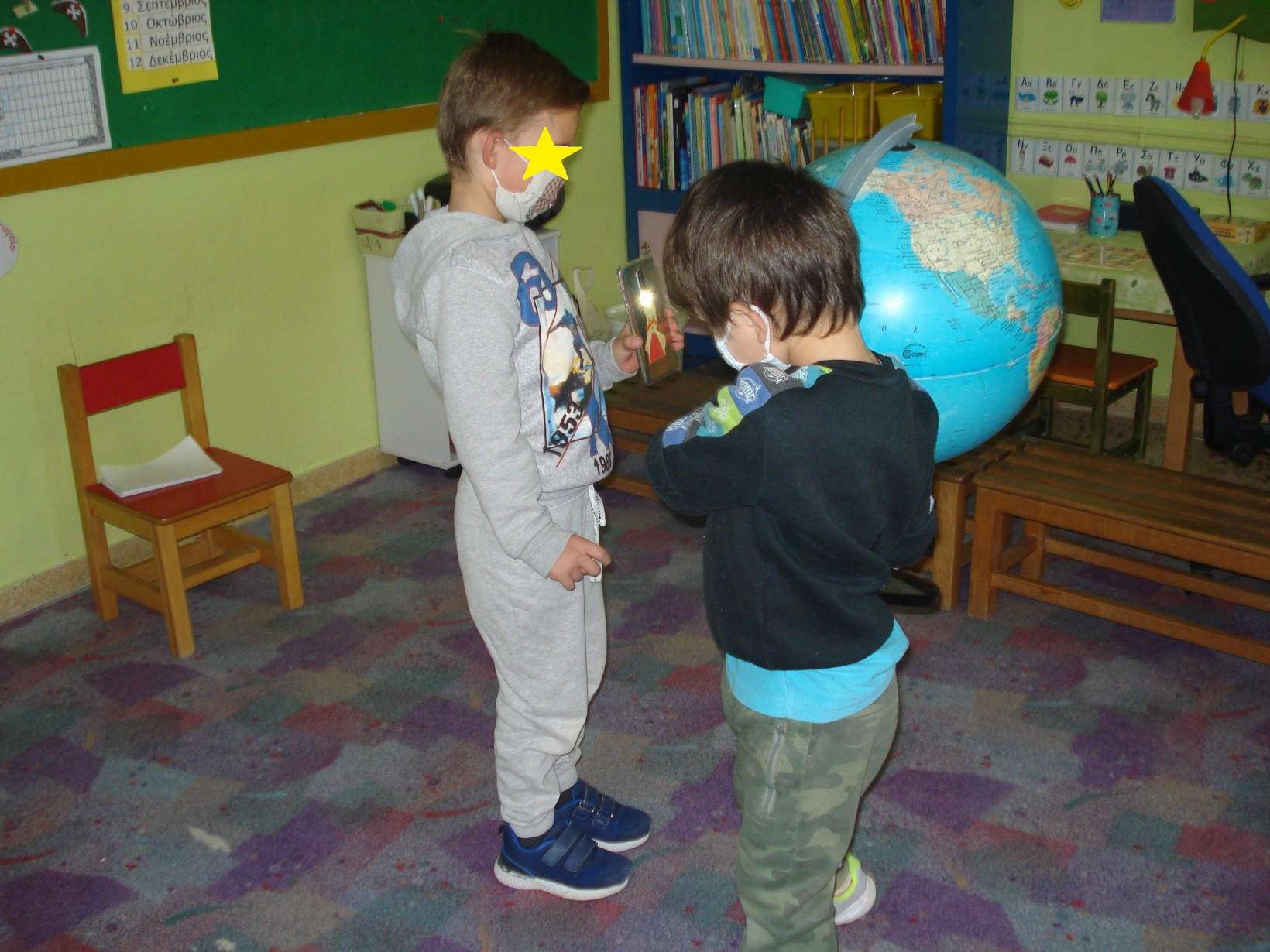 1.2345 Φτιάχνοντας τα γούρια για τη φετινή χρονιά.1234567 Ζωγραφίζοντας τη νέα χρονιά, τους μήνες και τις εποχές της με ωραία χρώματα και πολλές ελπίδες.1234567 Γιατί αλλάζουν οι χρονιές; Πόσες μέρες έχει ο χρόνος; Και ποιος ο ρόλος της Γης και του Ήλιου σε αυτή την αλλαγή; ΠείραμαΓίναμε Γη και Ήλιος.Τους ζωγραφίσαμε1και καταγράψαμε τις νέες μας γνώσεις.23456 Επανάληψη στα γραμματάκια που έχουμε μάθει έως τώρα. Μπορούμε να δημιουργήσουμε συλλαβούλες με αυτά και να σχηματίσουμε λέξεις;123456 Και φυσικά, τηρήσαμε και φέτος το έθιμο της βασιλόπιτας.Την κόψαμε,τηρώντας τα υγειονομικά πρωτόκολλα,τη μοιράσαμε σε σακουλάκια για να την απολαύσουμε στο σπίτι με ασφάλειακαι πήραμε και τα δωράκια μας,για το καλό.Έχουμε νικητή! Πάντα τυχερός να είσαι Παντελή μου!Και του χρόνου με υγεία!