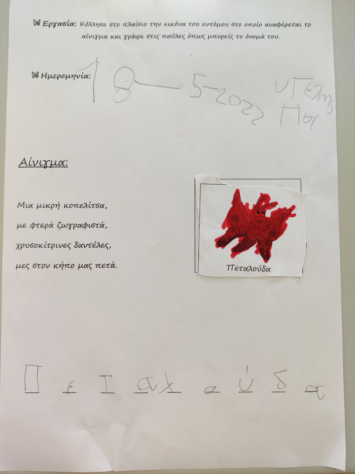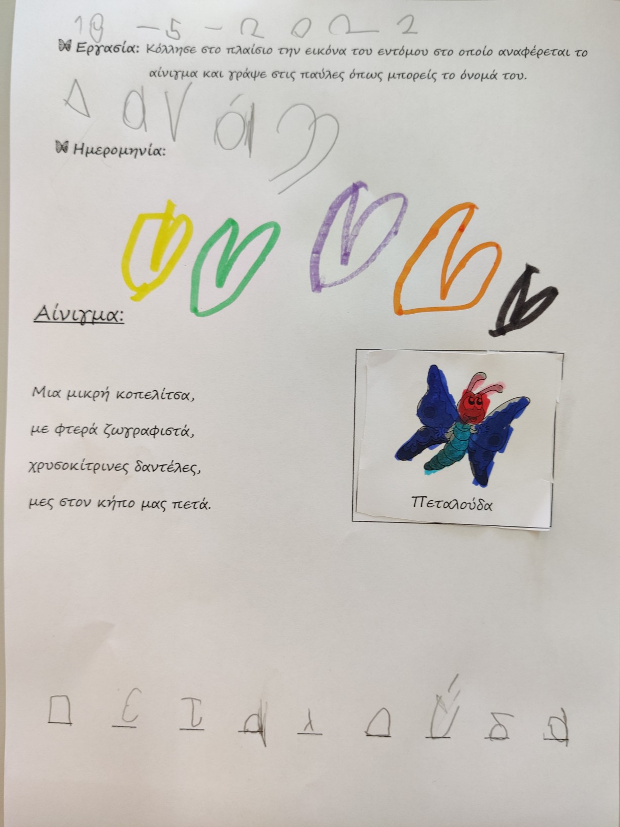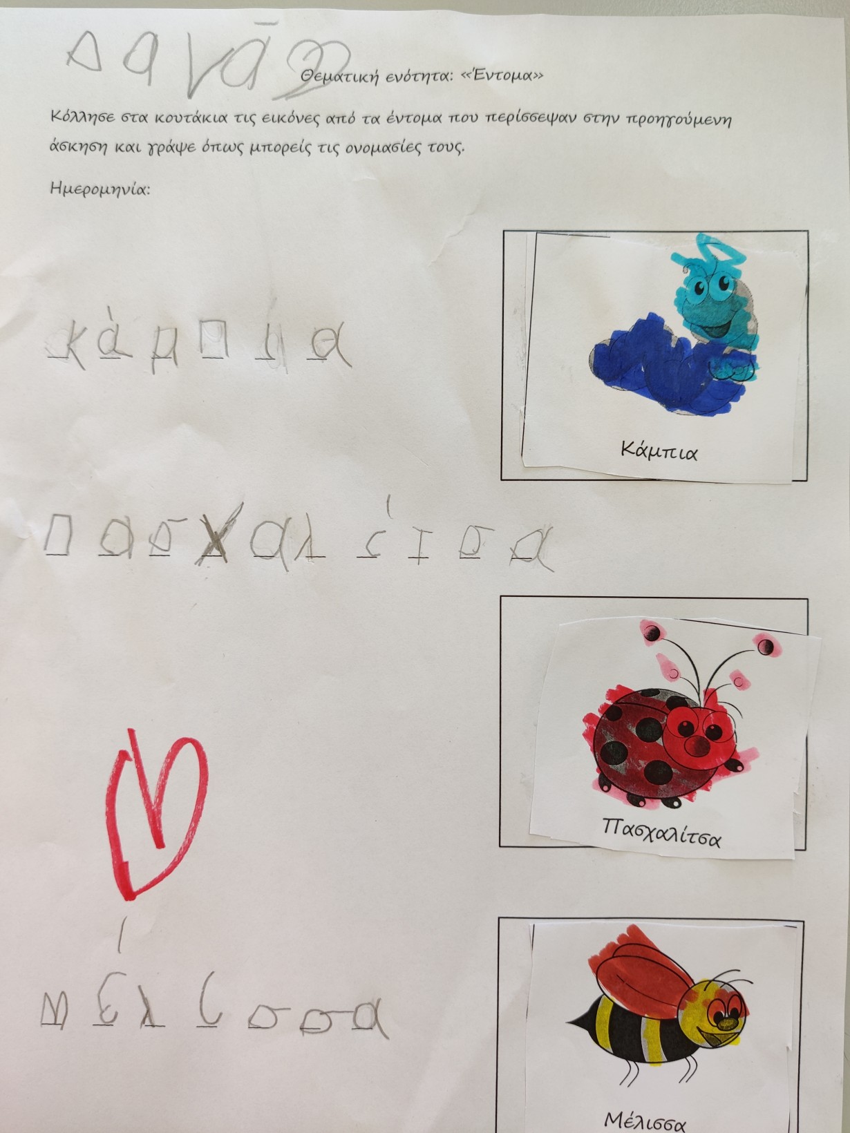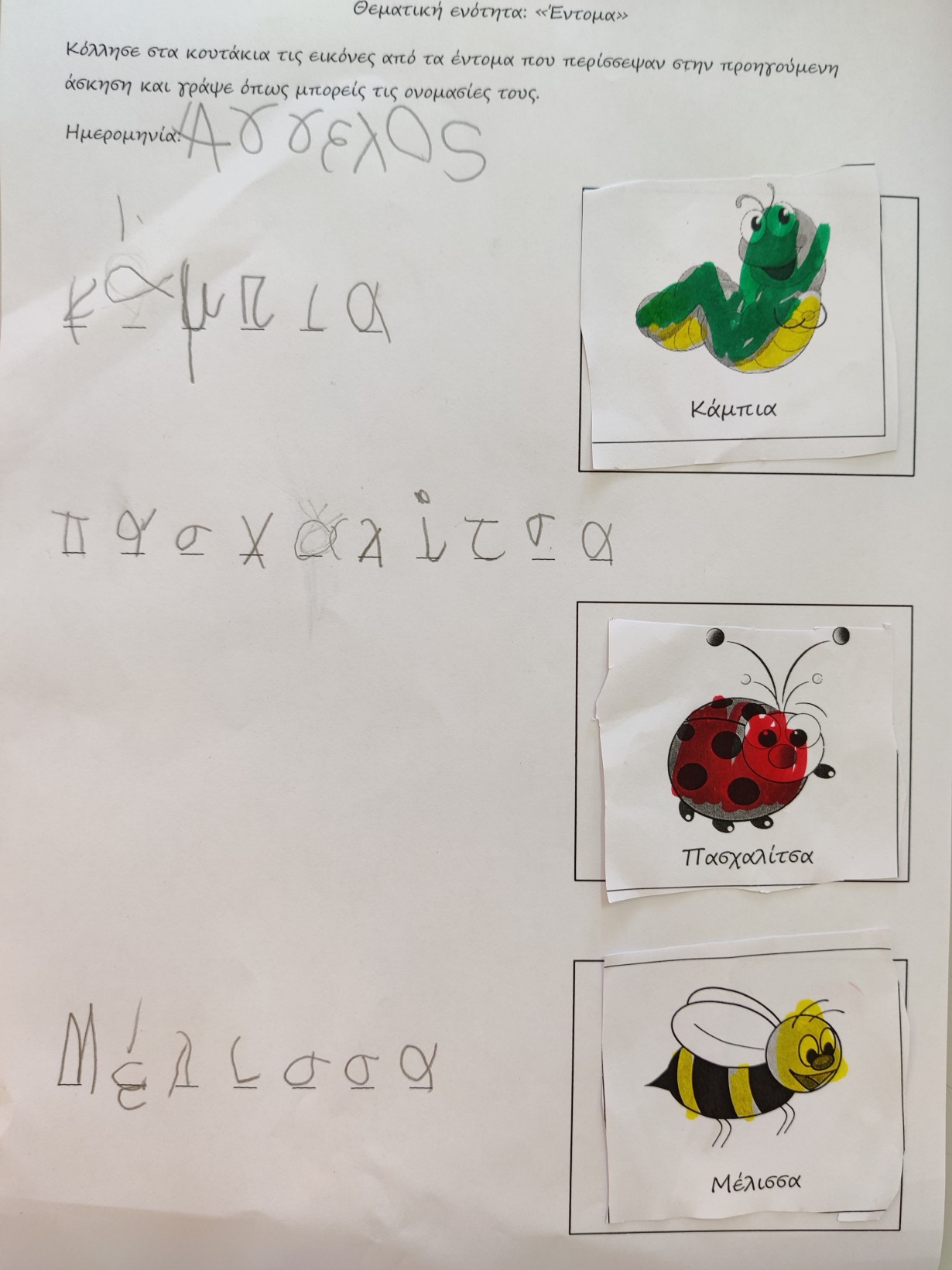 9 Παίξαμε γλωσσικό παιχνίδι με τα έντομα: Ποιες είναι οι ονομασίες τους; Ας τις συλλαβίσουμε μία – μία. Ποιο έντομο έχει τις περισσότερες συλλαβές και ποιο τις λιγότερες;