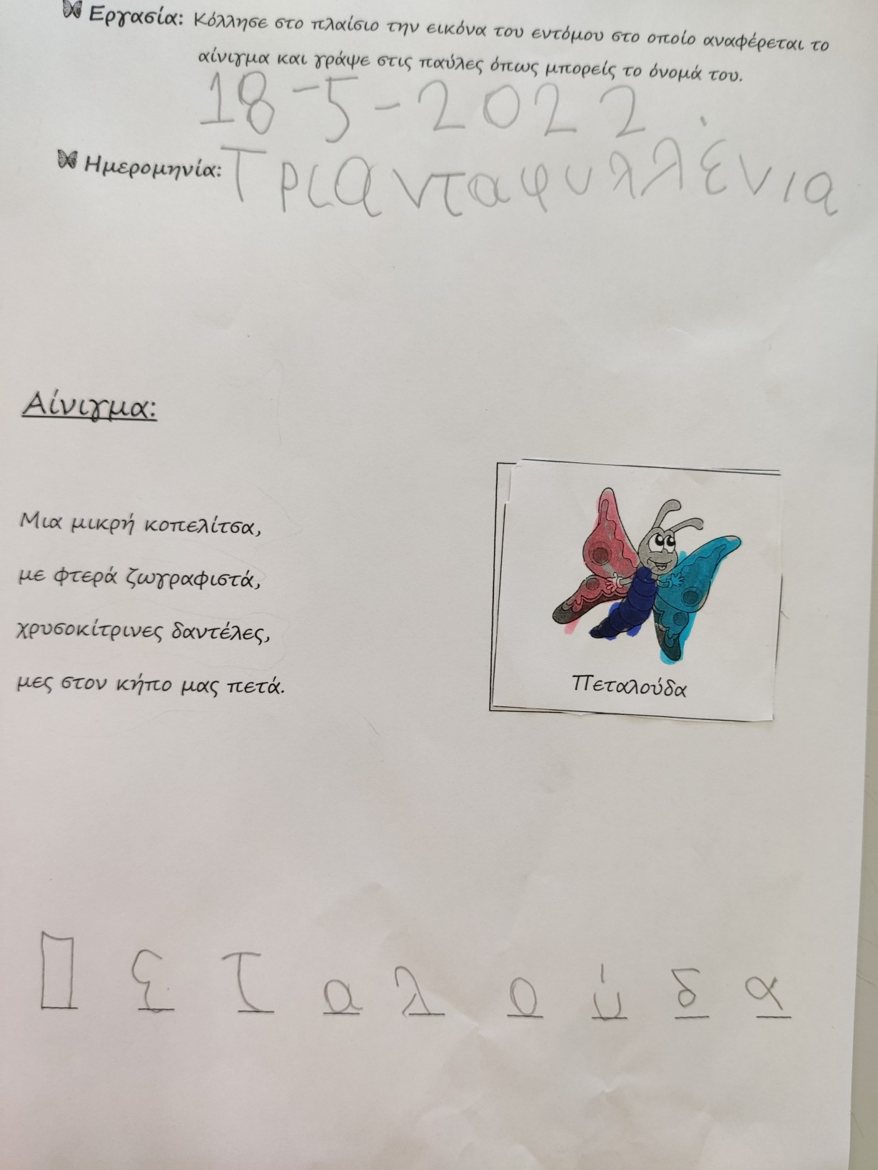 10 Με αφορμή τον κύκλο ζωής της πεταλούδας, κάναμε αντιστοίχηση ονόματος – εικόνας στον υπολογιστή.