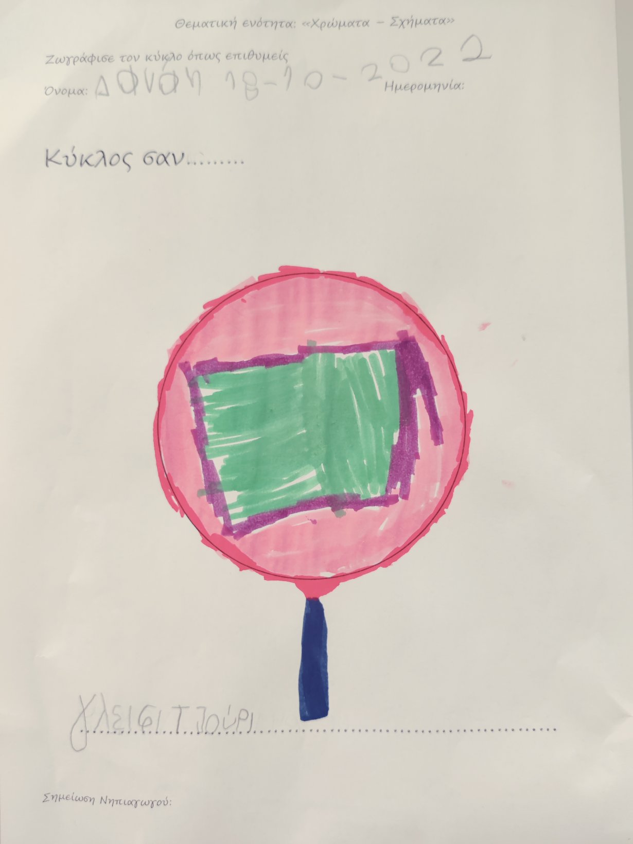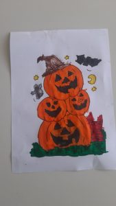SquareTriangleCircleΤα ζωγραφίσαμεσύμφωνα με τις οδηγίες.Μιλήσαμε για τα μέλη της οικογένειάς μας: Πώς τα αποκαλούμε, ποιες είναι οι ονομασίες τους στα Αγγλικά;Τα ζωγραφίσαμε σε μικρές δαχτυλόκουκλεςκαι τραγουδήσαμε κουνώντας τα δαχτυλάκια μας με τις πολύχρωμες κουκλίτσες το “Family finger”.Μιλήσαμεγια τη γιορτή του Halloween.Και την ζωγραφίσαμε