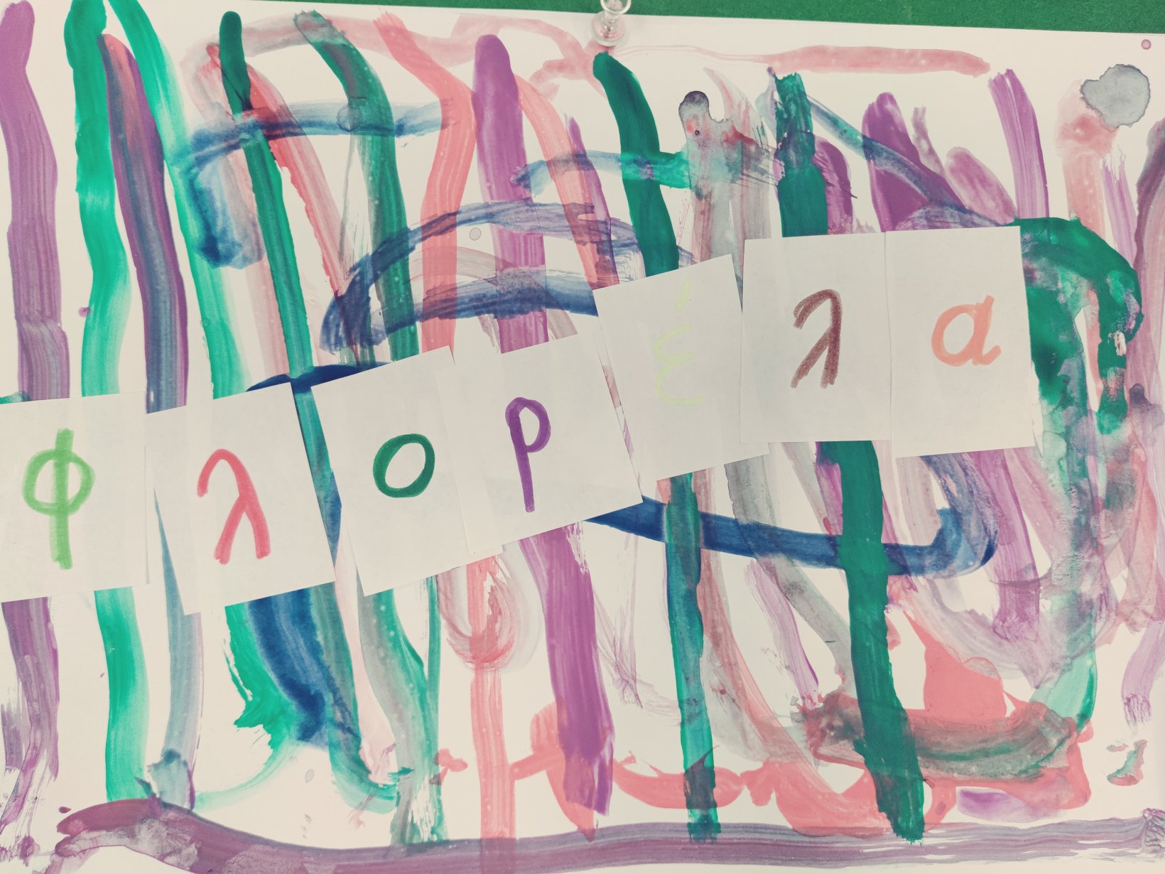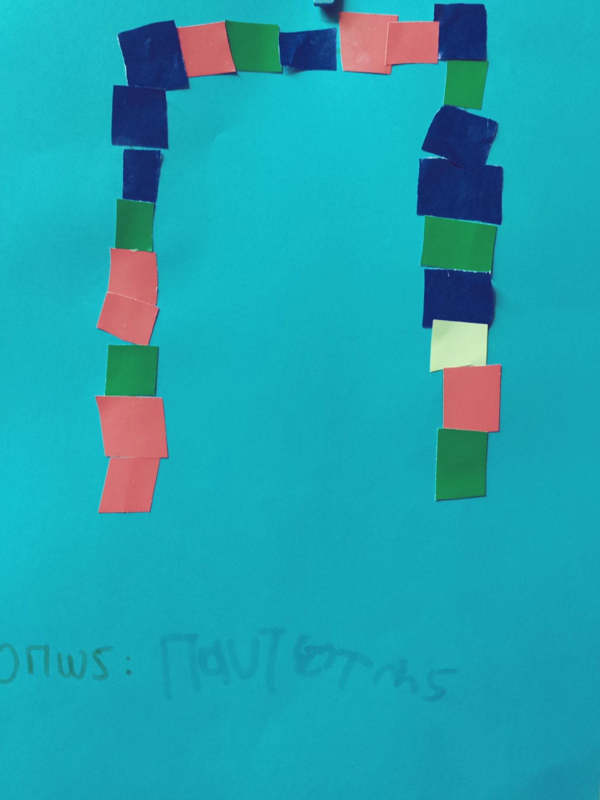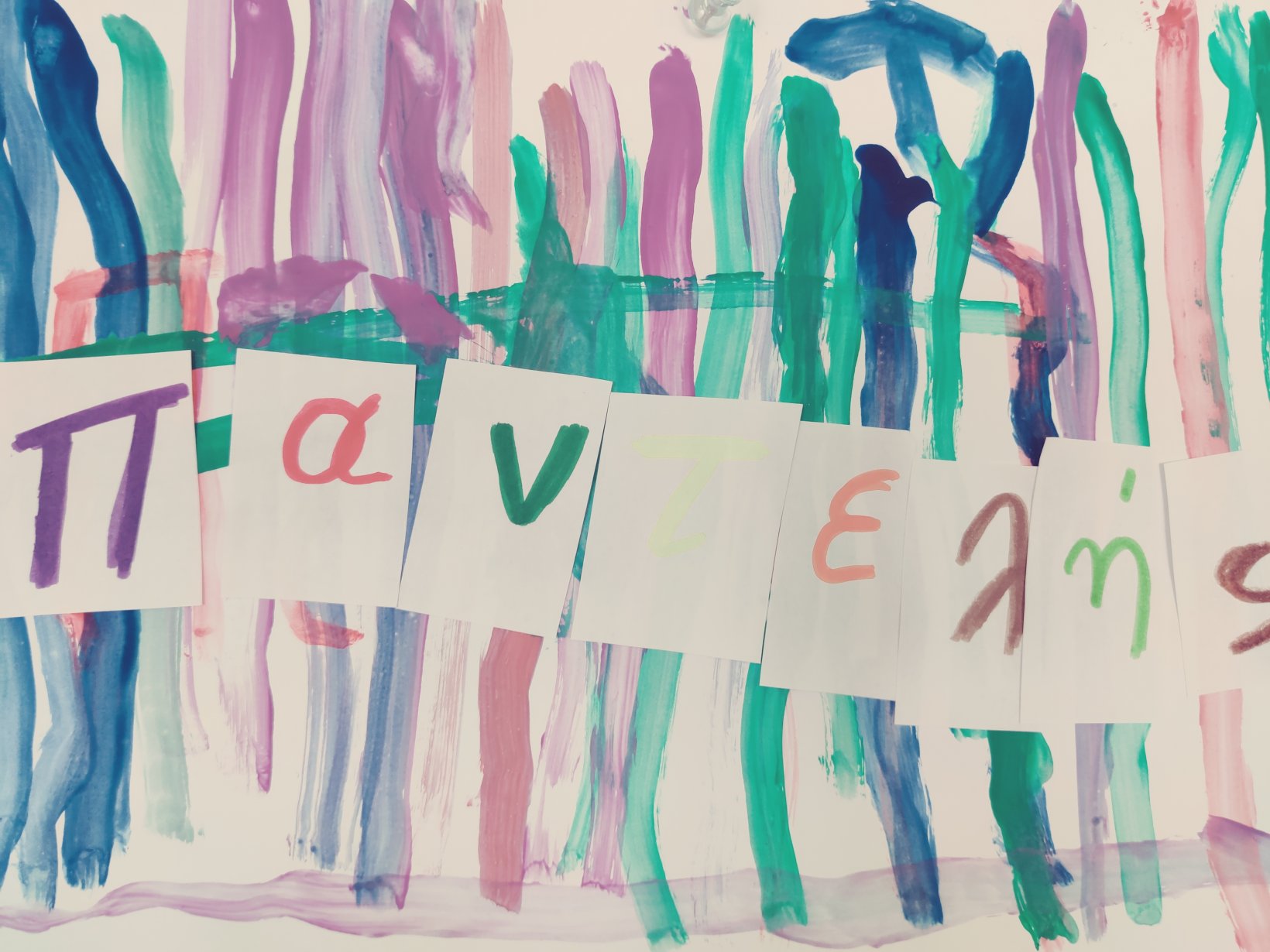Ζωγραφίσαμε με πινέλαΒάλαμε πολλά χρώματαΣυνθέσαμε το όνομά μας.Κολλήσαμε τα γράμματα στη σωστή σειρά.1Ακολουθήσαμε τα ίχνηκαι γράψαμετο όνομά μας.Κόψαμε πολύχρωμα χαρτάκια,τα κολλήσαμε στο χαρτίκαι διακοσμήσαμε το αρχικό μας γράμμα.Το Π