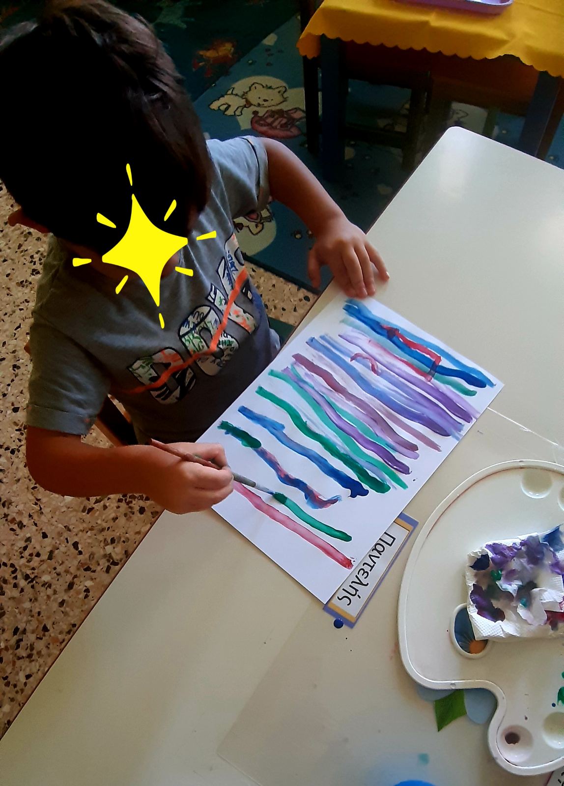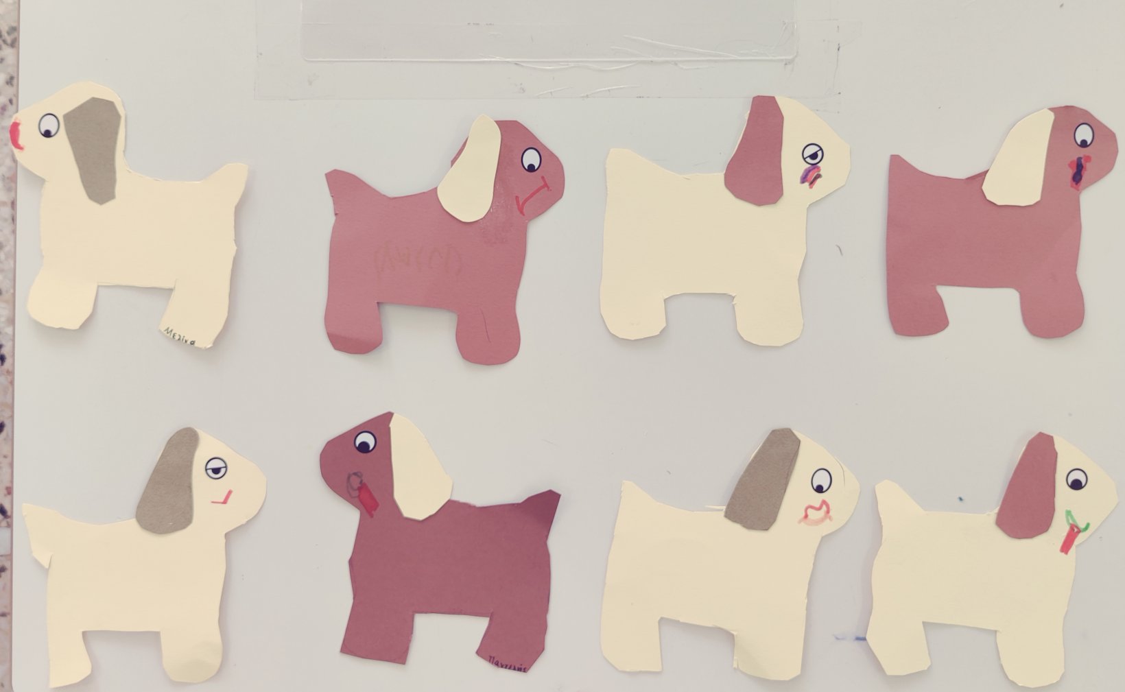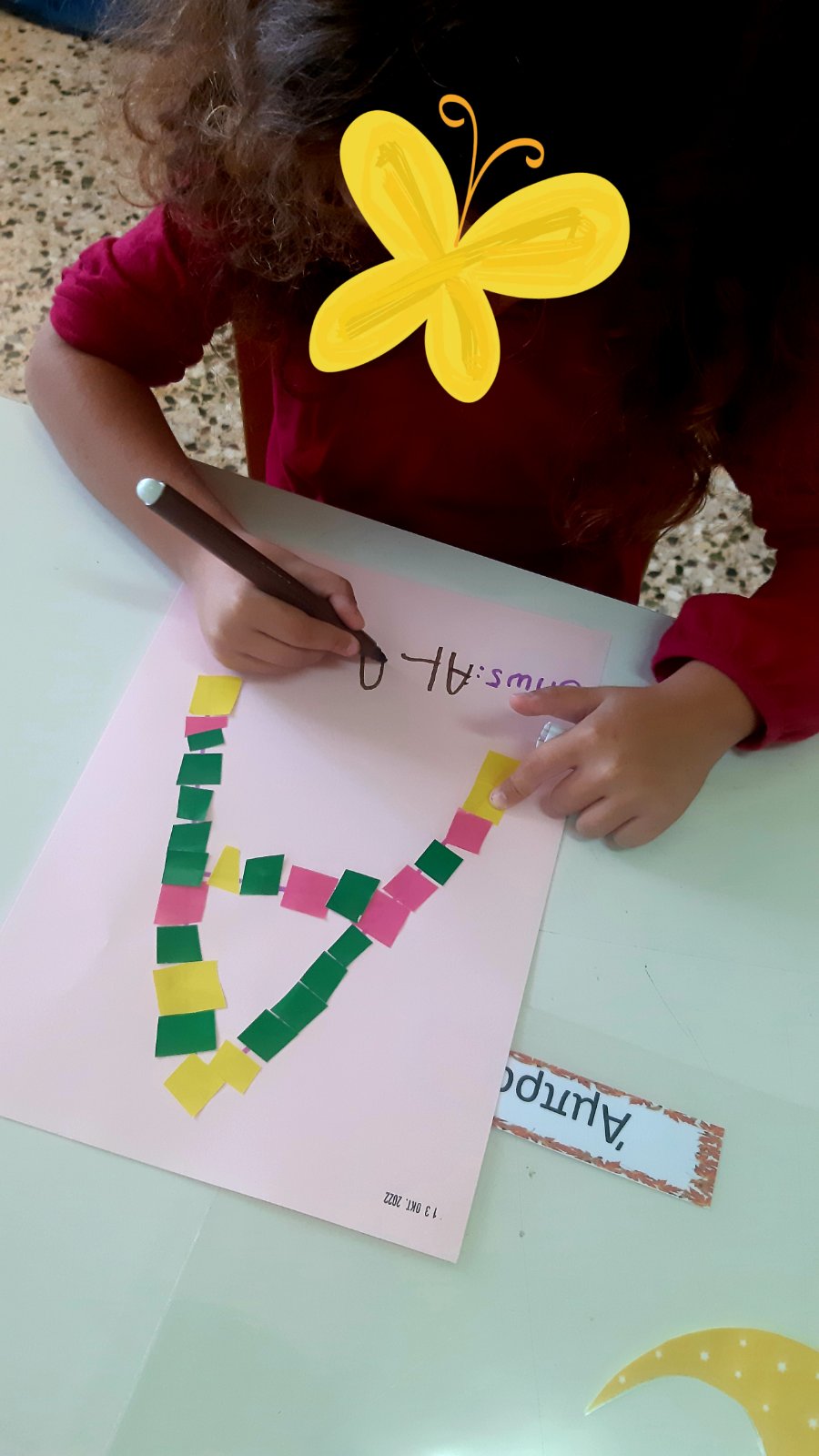Ζωγραφίσαμε με πινέλαΒάλαμε πολλά χρώματαΣυνθέσαμε το όνομά μας.Κολλήσαμε τα γράμματα στη σωστή σειρά.1Ακολουθήσαμε τα ίχνηκαι γράψαμετο όνομά μας.Κόψαμε πολύχρωμα χαρτάκια,τα κολλήσαμε στο χαρτίκαι διακοσμήσαμε το αρχικό μας γράμμα.Το Π