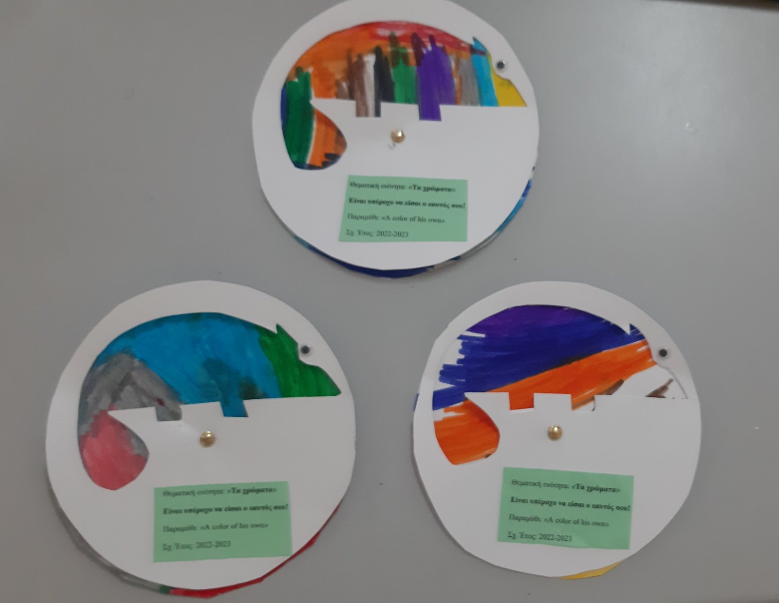 Ζωγραφίσαμε με πολλά χρώματαέναν λευκό κύκλοκαι προέκυψε ένα υπέροχο, πολύχρωμο Ιγκουάνα.