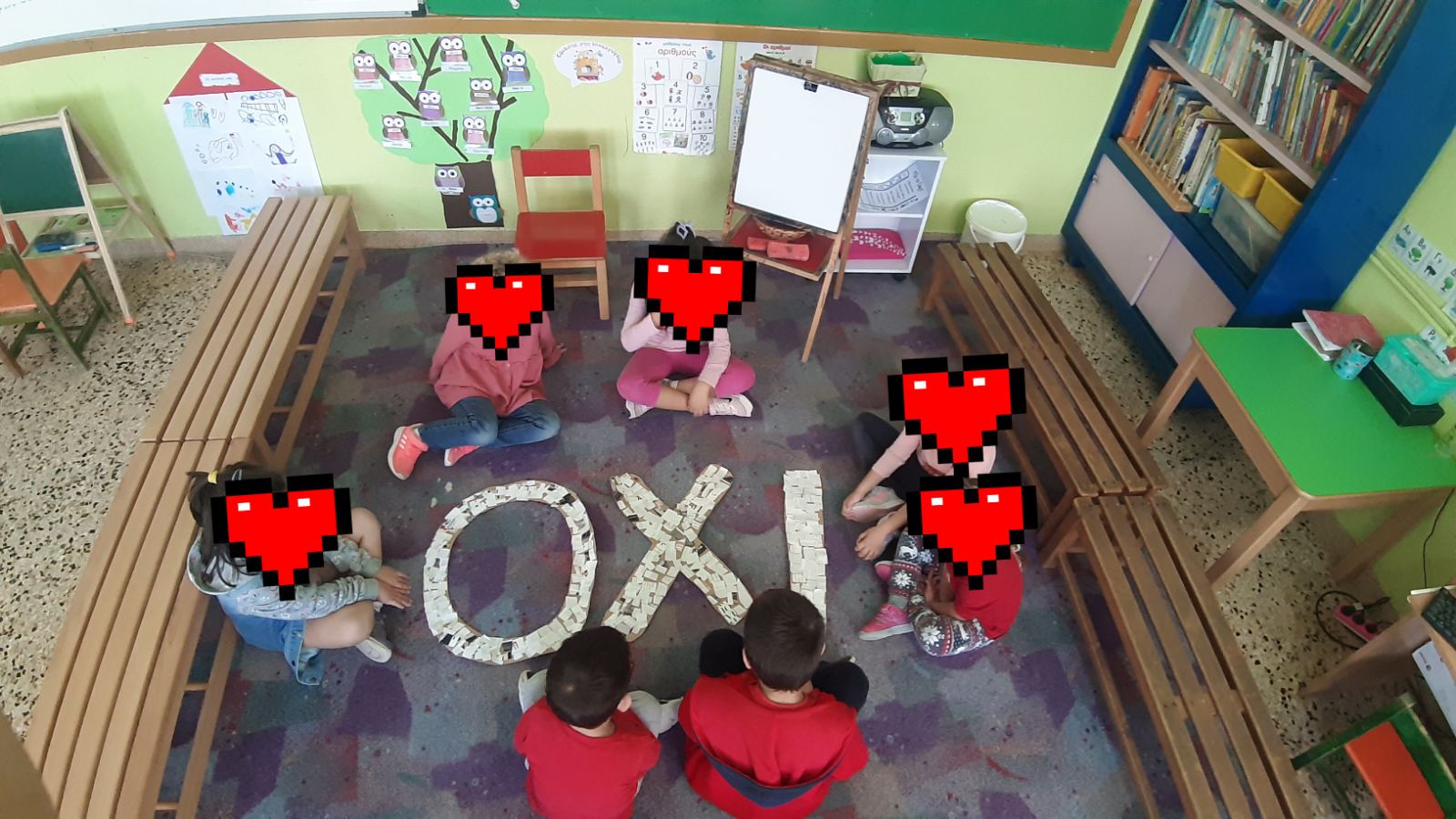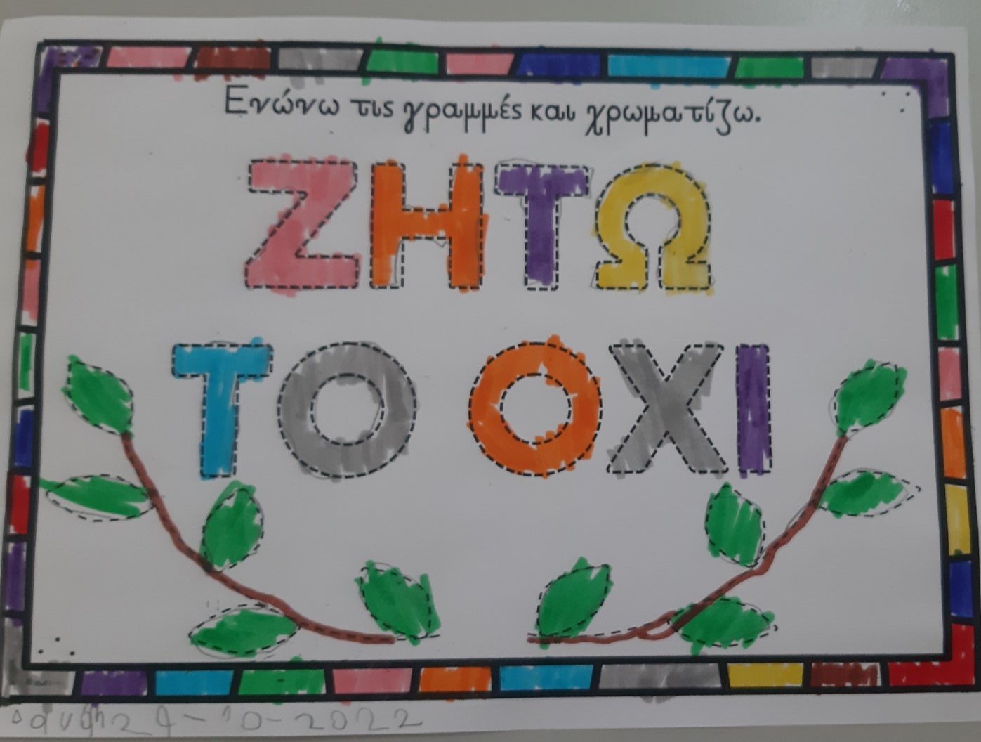 Κόψαμε,κολλήσαμε σε χαρτί του μέτρουκαι σχηματίσαμετη λέξη “Όχι”.