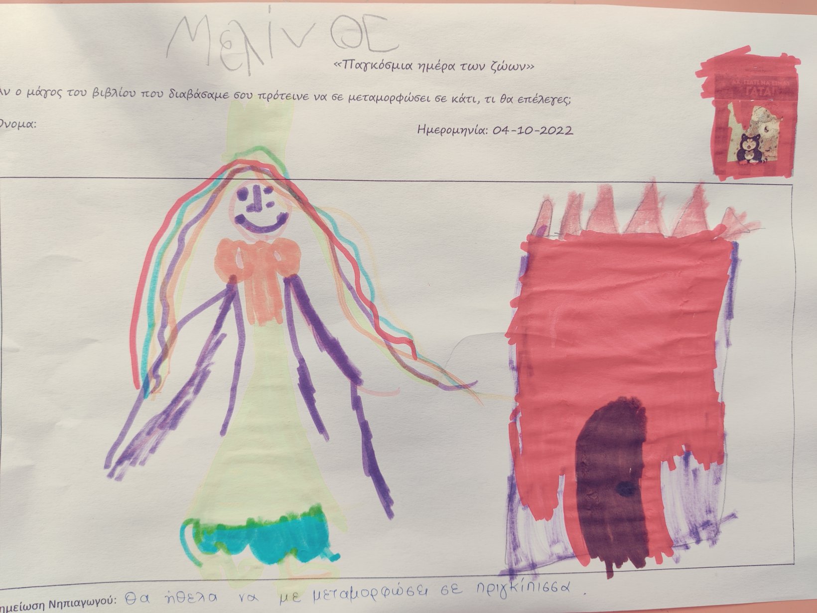 1Ζωγραφίσαμετο αγαπημένο μας κραγιόνι από την ιστορίακι εξηγήσαμε το λόγο της προτίμησής μας αυτής.
