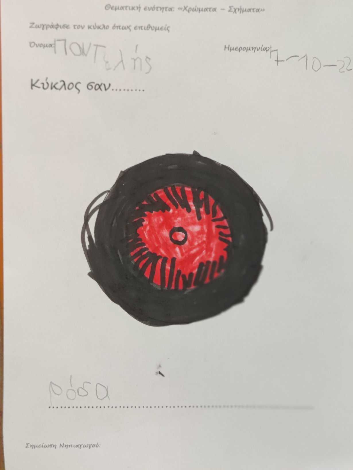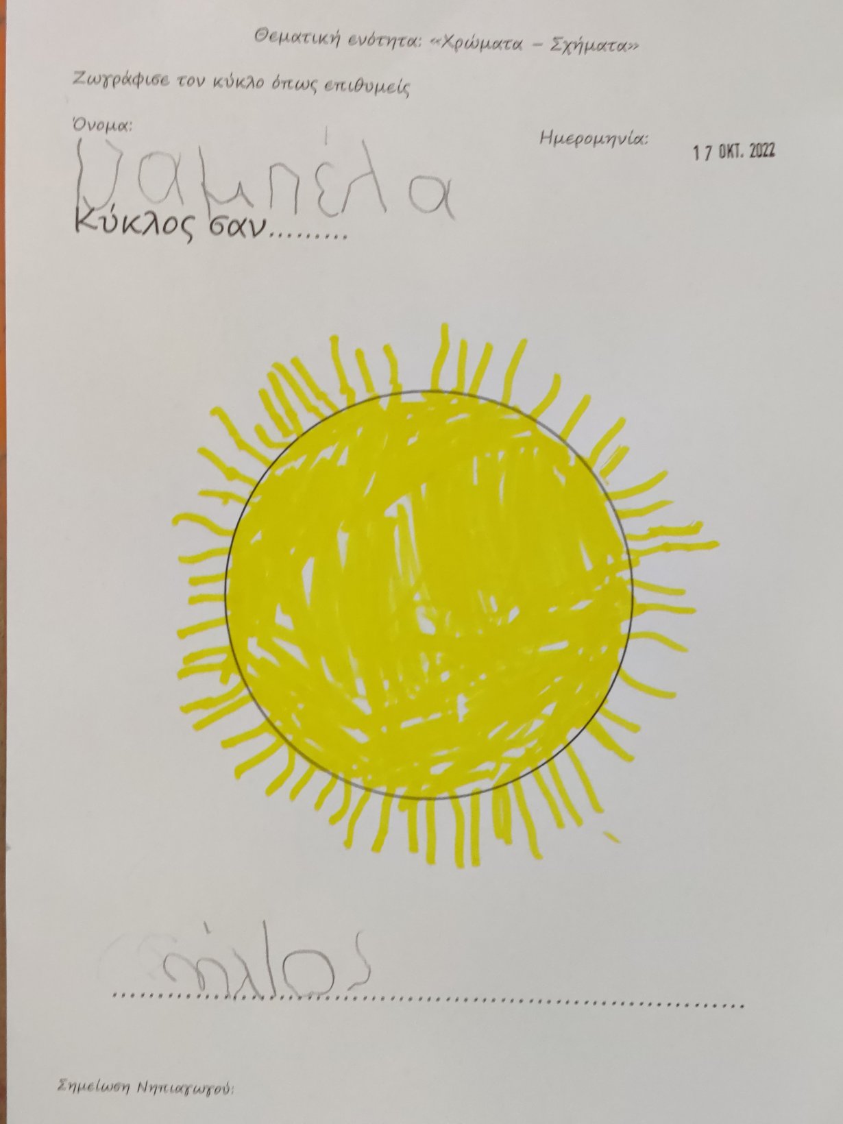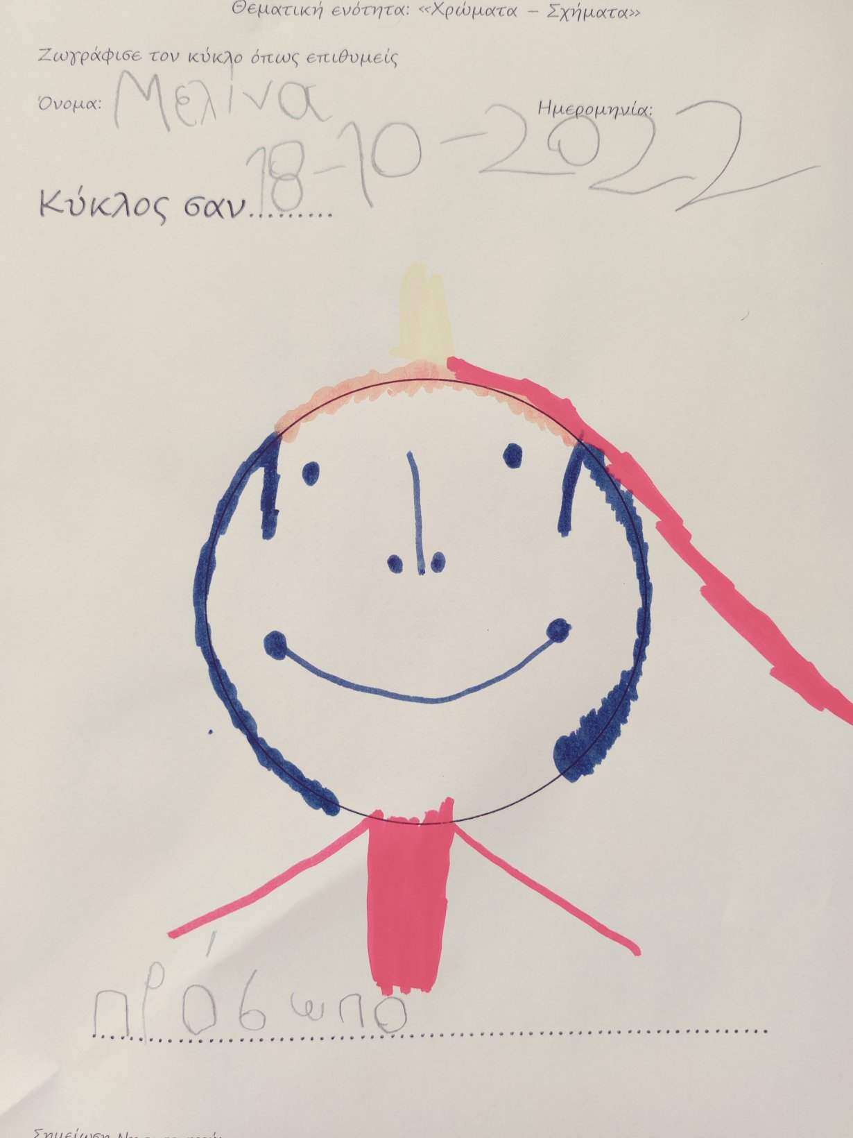 Αφηγηθήκαμε την ιστορία του στενοχωρημένου κύκλου και για να τον χαροποιήσουμε, τον μετατρέψαμε σε:ΡόδαΉλιοΠορτοκάλιΤον πλανήτη ΆρηΜπαλόνιΠρόσωποΓλειφιτζούρι