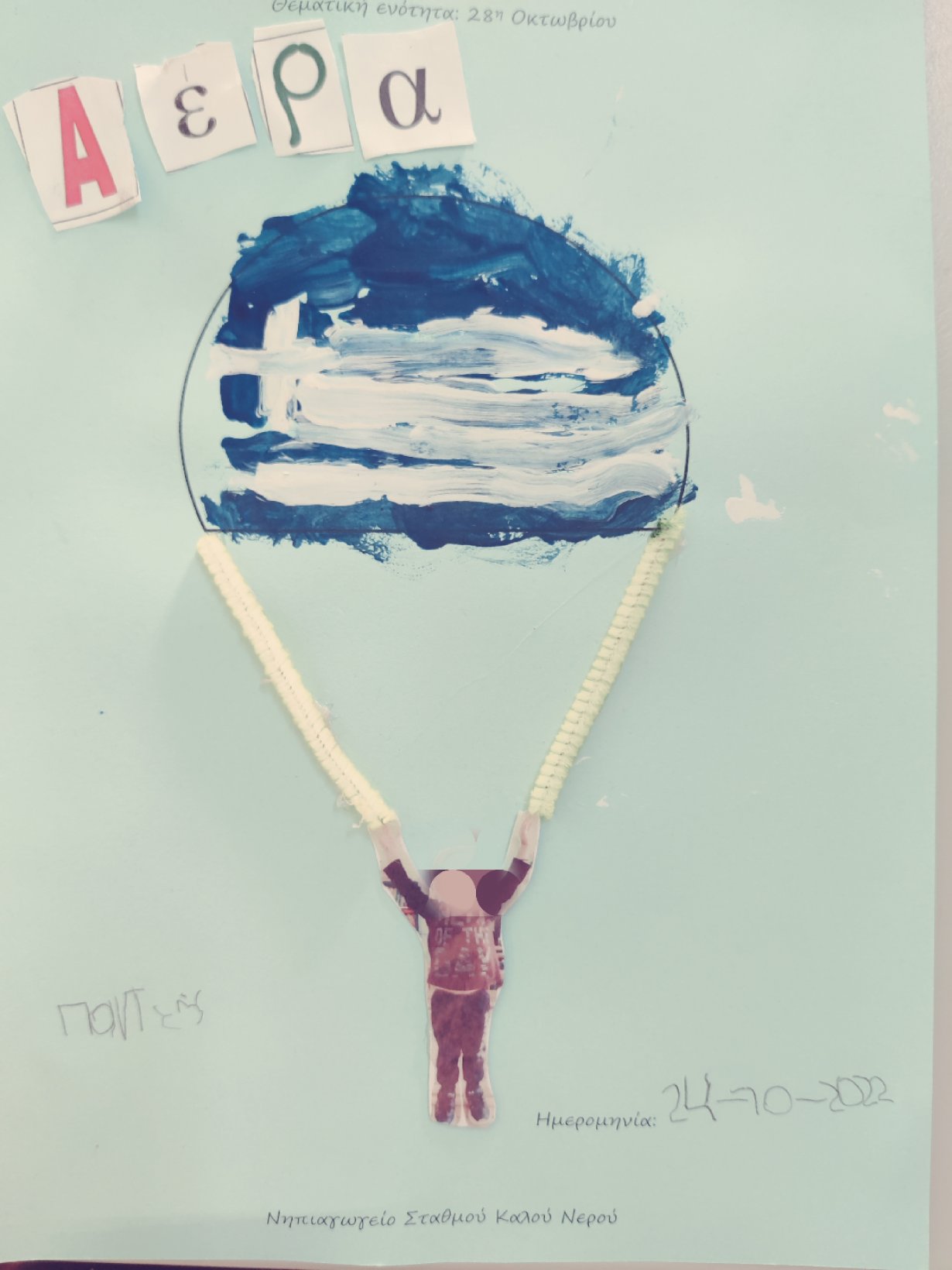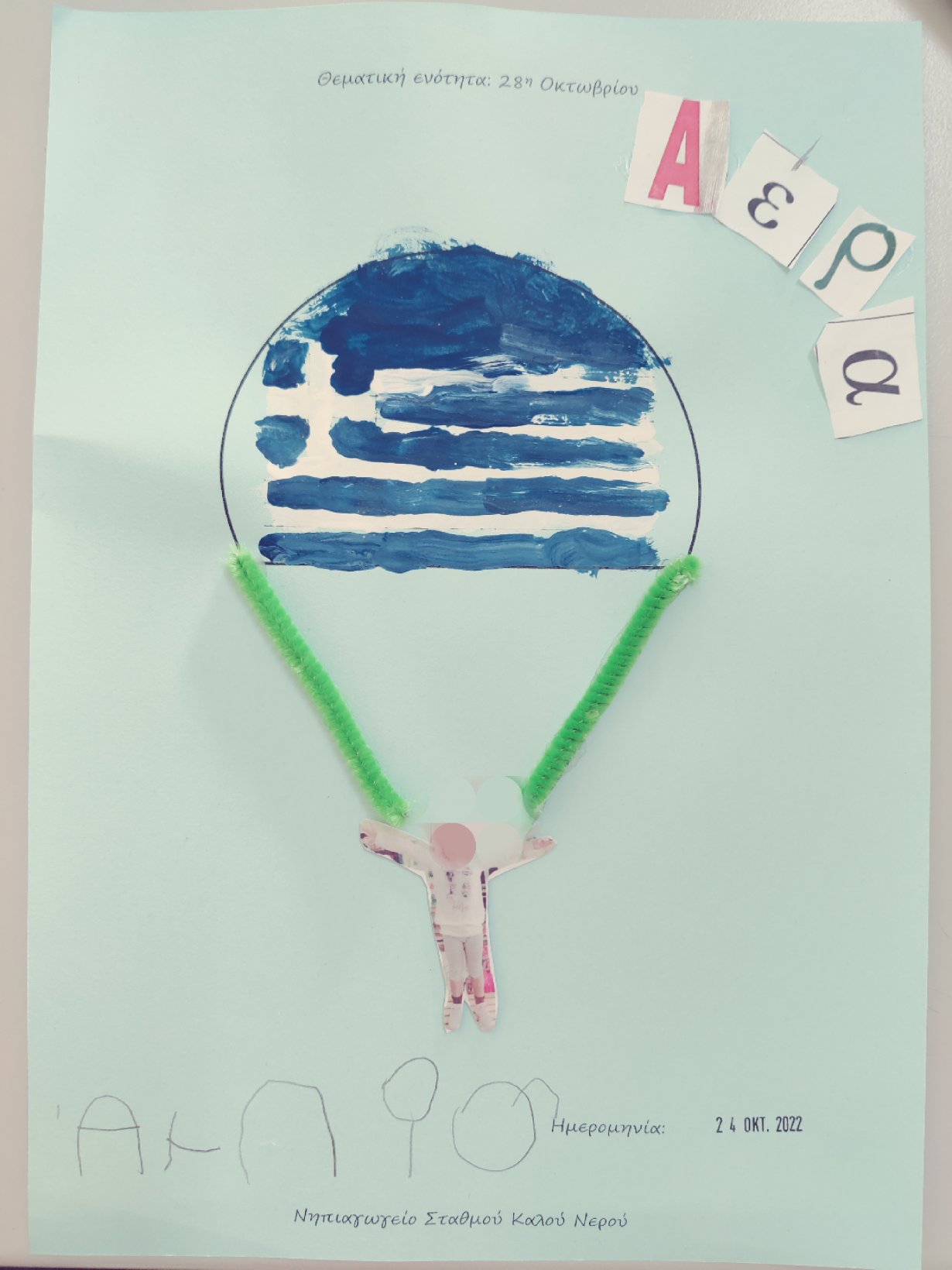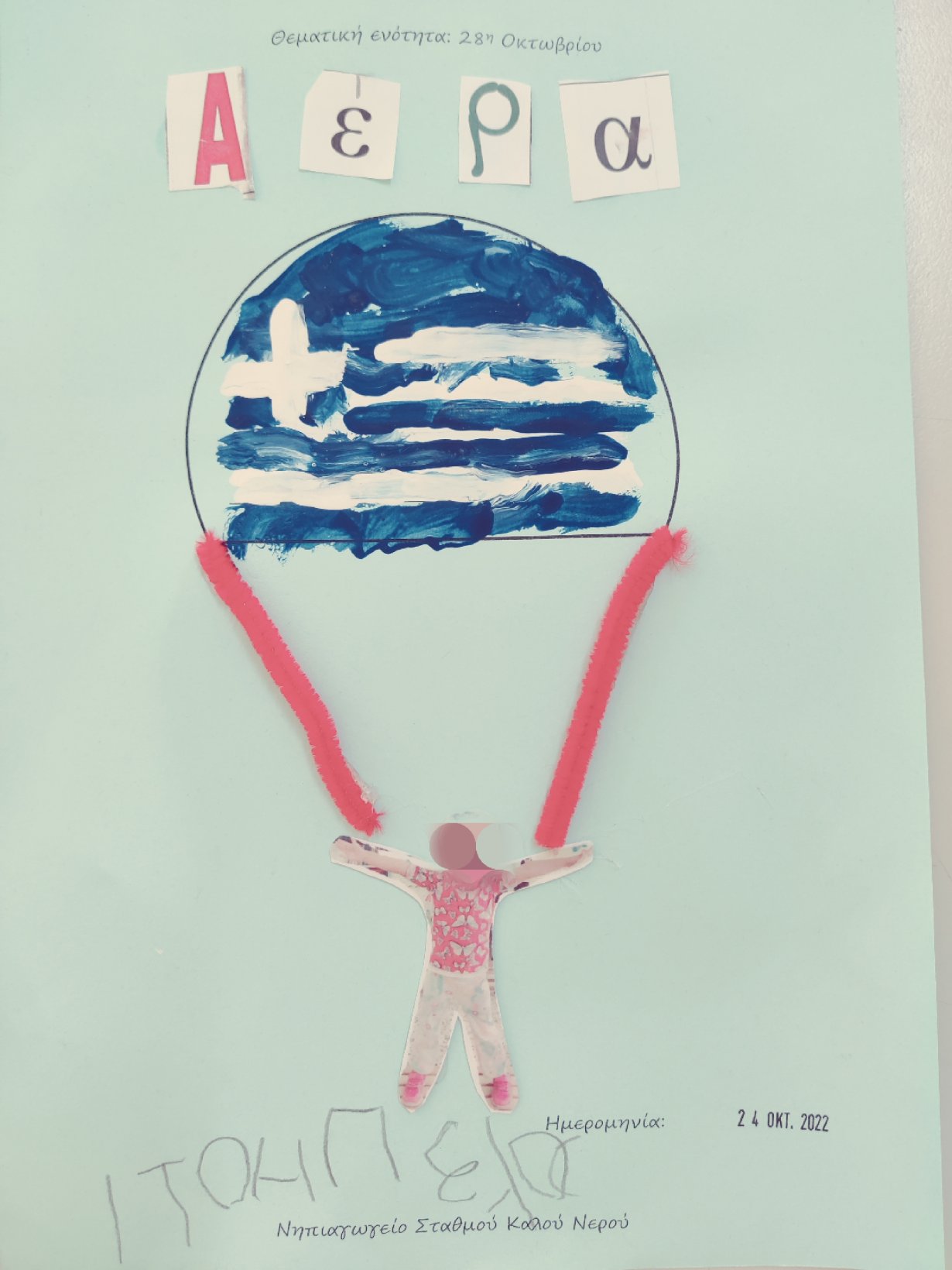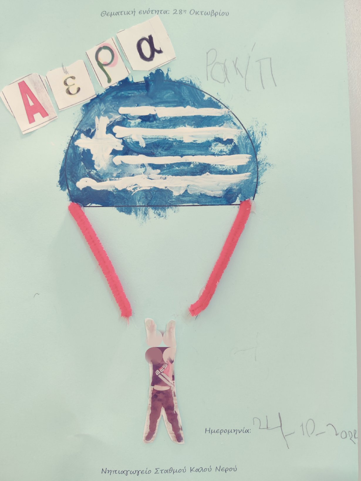 Μάθαμε το σύνθημα που φώναζαν οι Έλληνες φαντάροι στις μάχεςκαι ζωγραφίσαμετη σημαία στο αλεξίπτωτό μας.12345