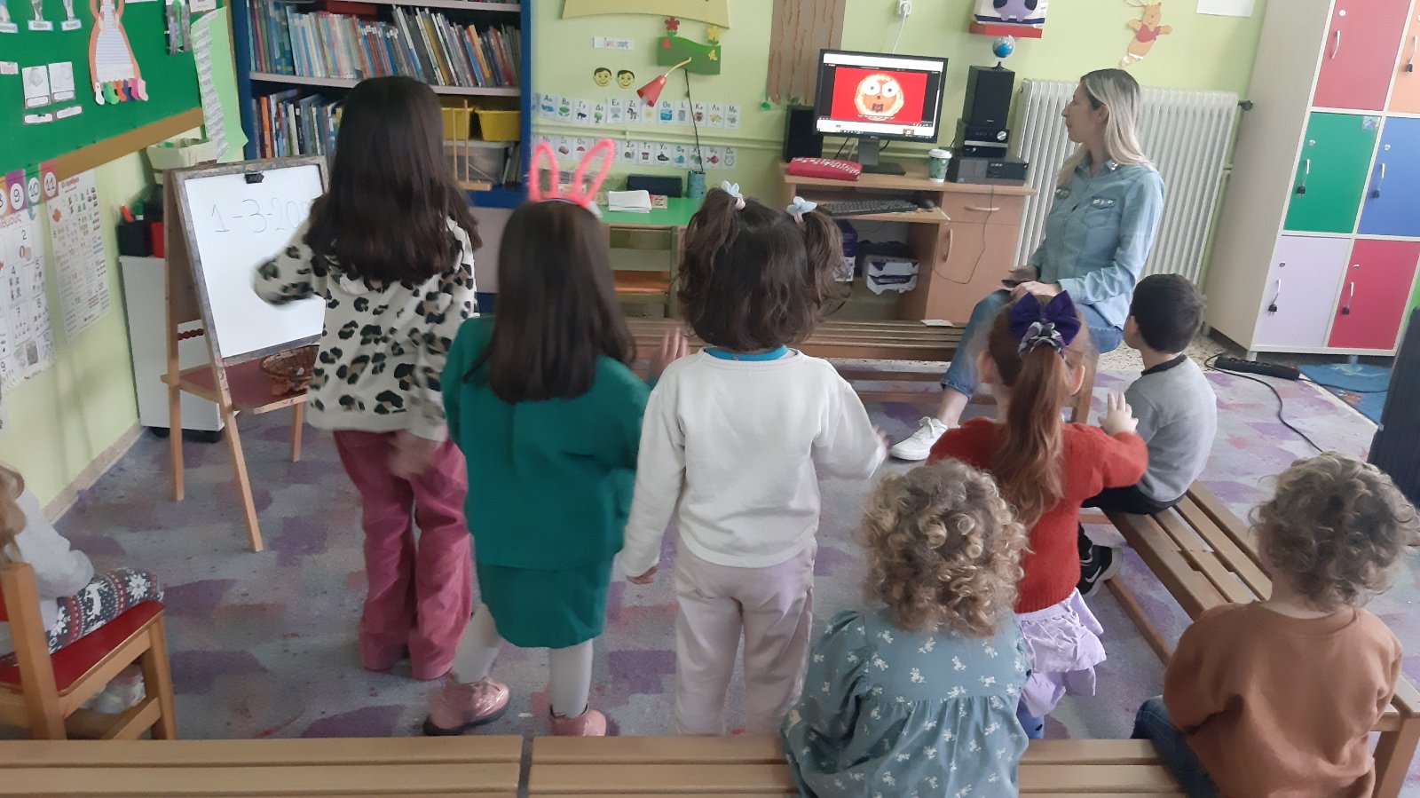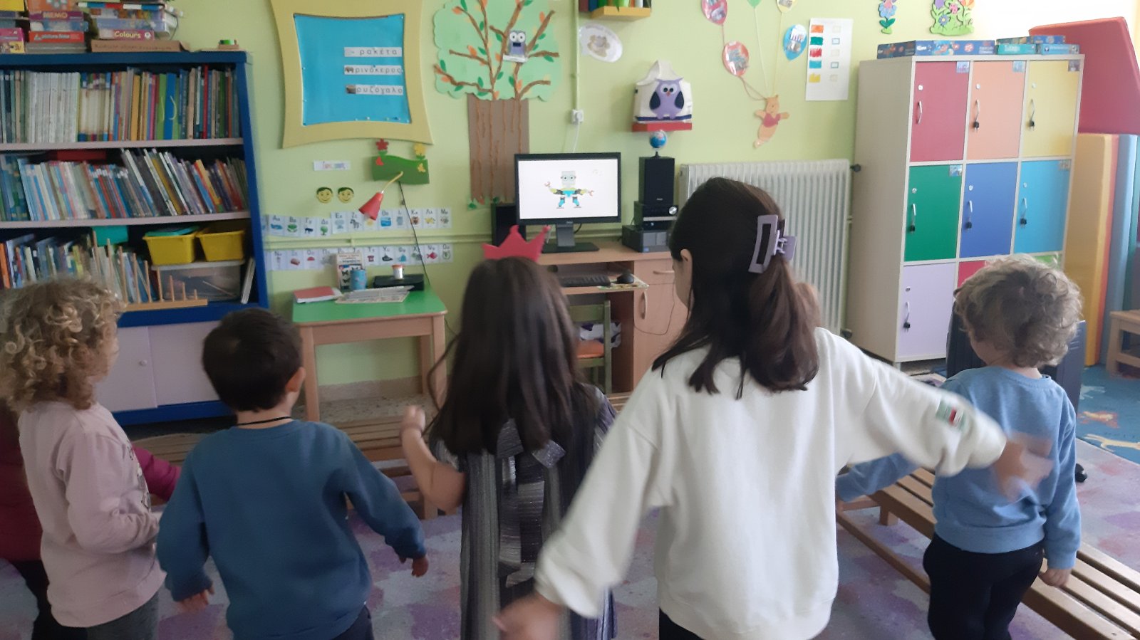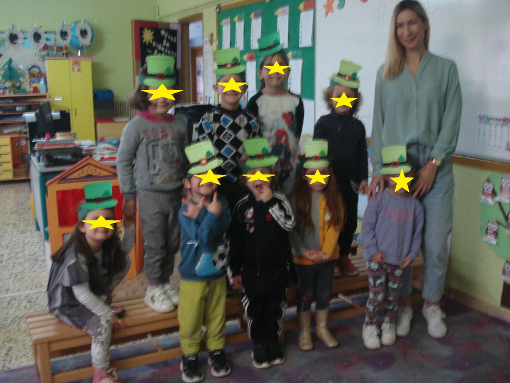 Γιορτάσαμε την ημέρα των pancakes που γιορτάζουν στην Αγγλία. Τα παιδιά έμαθαν για τα υλικά που χρειάζονται για τη συνταγή και μετά χόρεψαν κι ένα σχετικό τραγούδι.Έφτιαξαν τα δικά τους pancakes από πλαστελίνη.1Κι έκαναν αγώνες δρόμουστο διάδρομο του σχολείου, για να δούμε ποιος θα τερματίσει πρώτος με το pancake του.Ακούσαμε ένα ρυθμικό τραγούδι για την Άνοιξη και μάθαμε τις ονομασίες κάποιων εντόμων.Ζωγραφίσαμε τις εικόνεςπου αποκομίσαμε απ’ το τραγούδι αυτό.1345Είδαμε ένα βίντεο για την μετάβαση από το Χειμώνα στην Άνοιξηκαι παίξαμε ψηφιακά παιχνίδια μνήμηςγια να μάθουμε τις ονομασίες κάποιων λουλουδιών που ανθίζουν την Άνοιξη.Γιορτάσαμε την St.Patrick ‘s day.Αποτελεί αφορμή για εορτασμό του ιρλανδέζικου πολιτισμού, κυριαρχεί το πράσινο χρώμα και το τριφύλλι φέρνει γούρι σε όλους!Χορέψαμε με την Ιρλανδέζικη μουσική, είδαμε το ξωτικό με τα πορτοκαλί μούσια και κυνηγήσαμε τον κουβά με τα χρυσά νομίσματα.Κόψαμε και ζωγραφίσαμε το καπέλο του ξωτικούκαι γίναμε κι εμείς για λίγο μικρά leprechauns (ξωτικά) για λίγο.Ζωγραφίσαμε πασχαλινά κοτοπουλάκιακαι μπήκαμε στο εορταστικό κλίμα λίγο πριν κλείσουν τα σχολεία.Είδαμε τον easter bunny και το υπέροχο κυνήγι θησαυρού με τα πασχαλινά αυγά.Μαντέψαμε τις λέξεις που εμφανίζονταν στην οθόνη πριν προλάβουν να αποκαλυφθούν.Ψάξαμε να βρούμε τα κρυμμένα αυγάσε διάφορα σημείαμέσα στην τάξη.