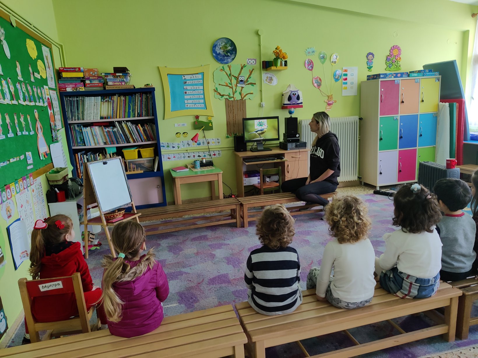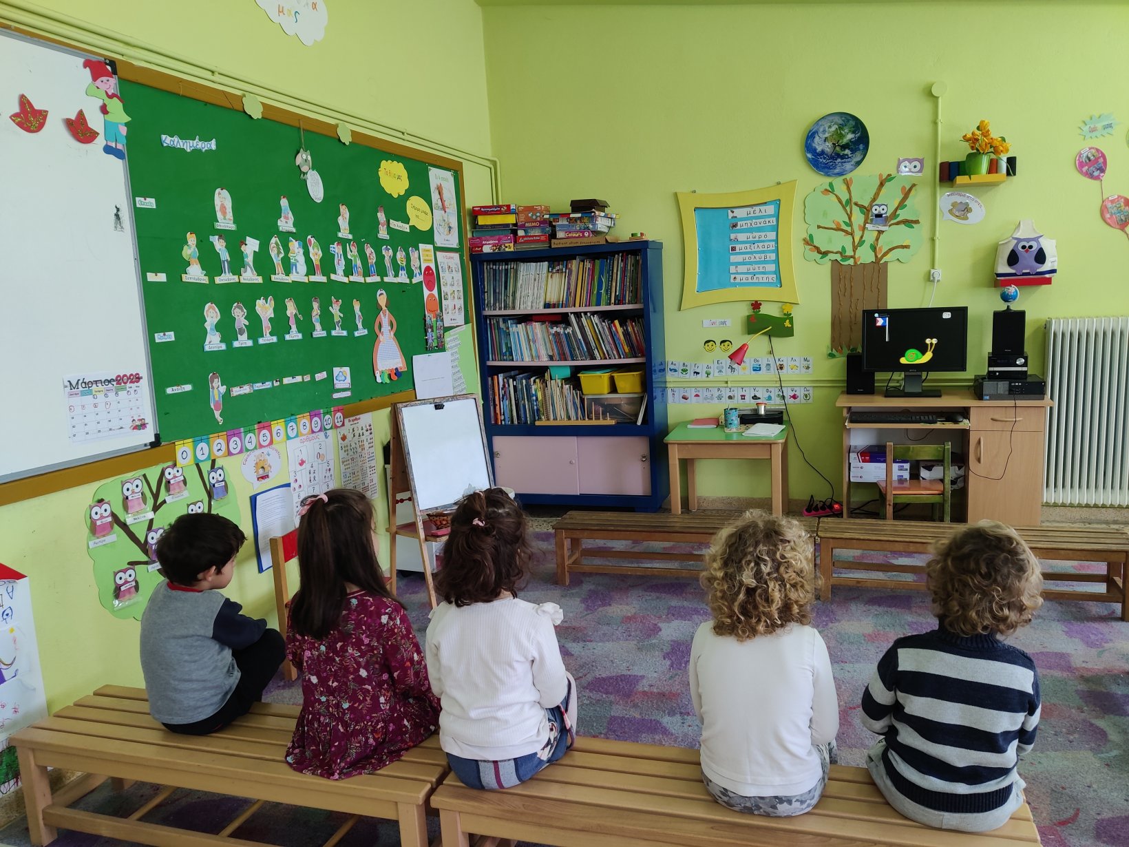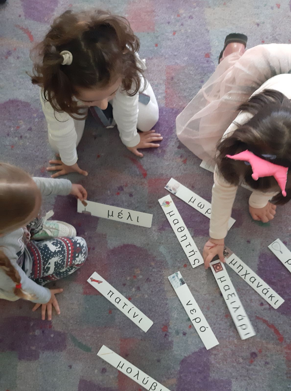 Γιορτάσαμε την ημέρα των pancakes που γιορτάζουν στην Αγγλία. Τα παιδιά έμαθαν για τα υλικά που χρειάζονται για τη συνταγή και μετά χόρεψαν κι ένα σχετικό τραγούδι.Έφτιαξαν τα δικά τους pancakes από πλαστελίνη.1Κι έκαναν αγώνες δρόμουστο διάδρομο του σχολείου, για να δούμε ποιος θα τερματίσει πρώτος με το pancake του.Ακούσαμε ένα ρυθμικό τραγούδι για την Άνοιξη και μάθαμε τις ονομασίες κάποιων εντόμων.Ζωγραφίσαμε τις εικόνεςπου αποκομίσαμε απ’ το τραγούδι αυτό.1345Είδαμε ένα βίντεο για την μετάβαση από το Χειμώνα στην Άνοιξηκαι παίξαμε ψηφιακά παιχνίδια μνήμηςγια να μάθουμε τις ονομασίες κάποιων λουλουδιών που ανθίζουν την Άνοιξη.Γιορτάσαμε την St.Patrick ‘s day.Αποτελεί αφορμή για εορτασμό του ιρλανδέζικου πολιτισμού, κυριαρχεί το πράσινο χρώμα και το τριφύλλι φέρνει γούρι σε όλους!Χορέψαμε με την Ιρλανδέζικη μουσική, είδαμε το ξωτικό με τα πορτοκαλί μούσια και κυνηγήσαμε τον κουβά με τα χρυσά νομίσματα.Κόψαμε και ζωγραφίσαμε το καπέλο του ξωτικούκαι γίναμε κι εμείς για λίγο μικρά leprechauns (ξωτικά) για λίγο.Ζωγραφίσαμε πασχαλινά κοτοπουλάκιακαι μπήκαμε στο εορταστικό κλίμα λίγο πριν κλείσουν τα σχολεία.Είδαμε τον easter bunny και το υπέροχο κυνήγι θησαυρού με τα πασχαλινά αυγά.Μαντέψαμε τις λέξεις που εμφανίζονταν στην οθόνη πριν προλάβουν να αποκαλυφθούν.Ψάξαμε να βρούμε τα κρυμμένα αυγάσε διάφορα σημείαμέσα στην τάξη.