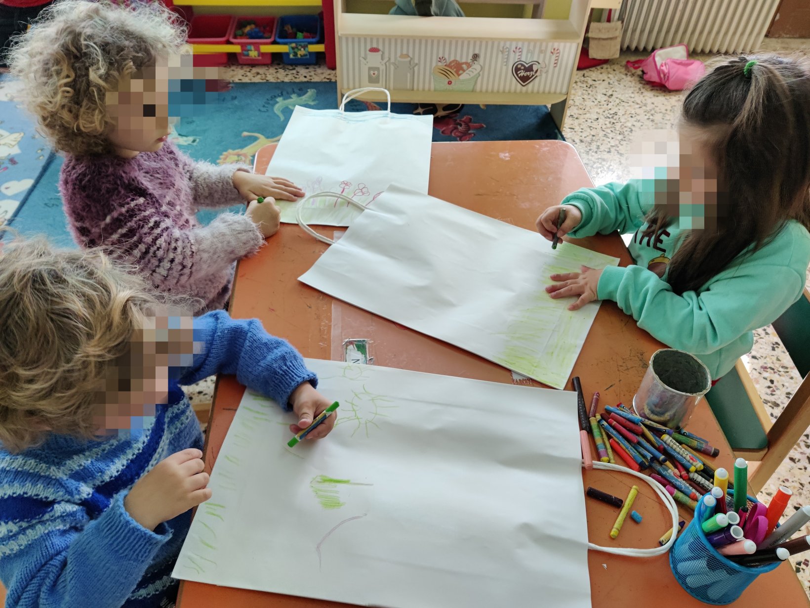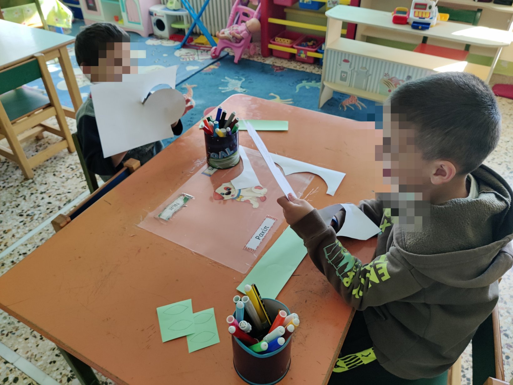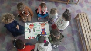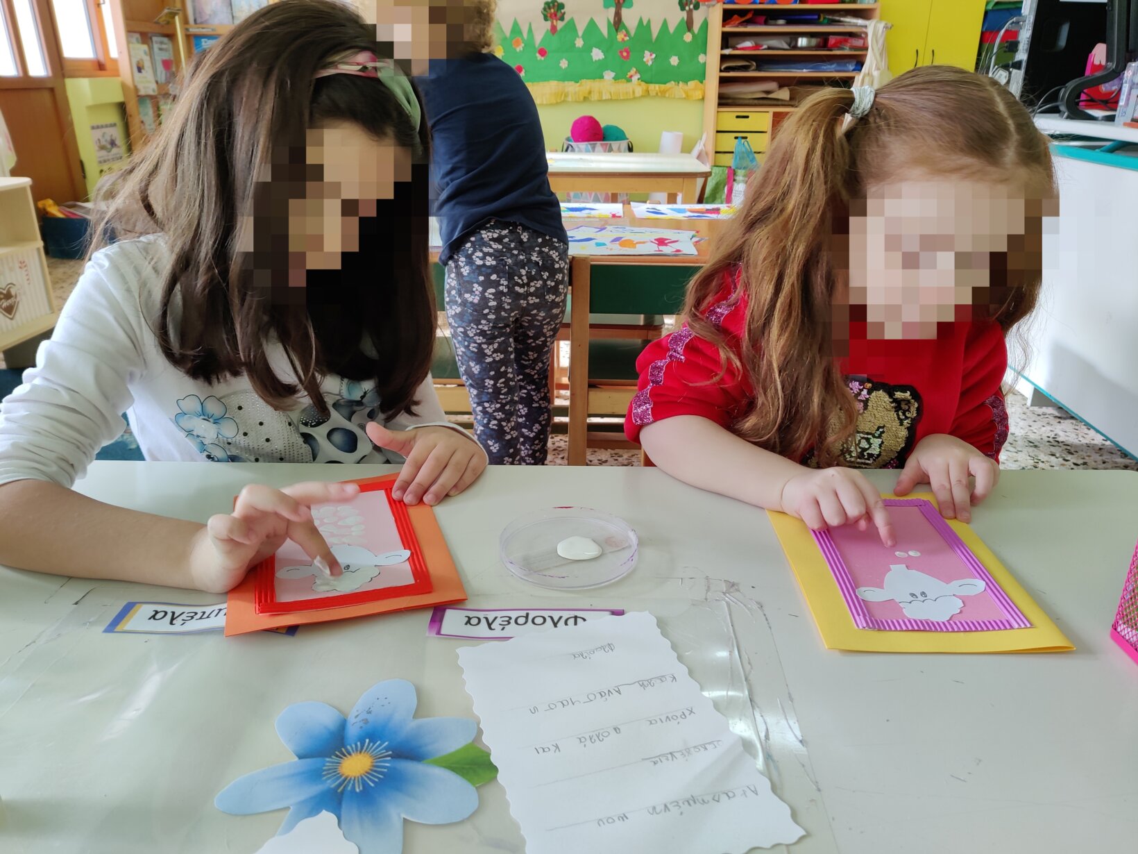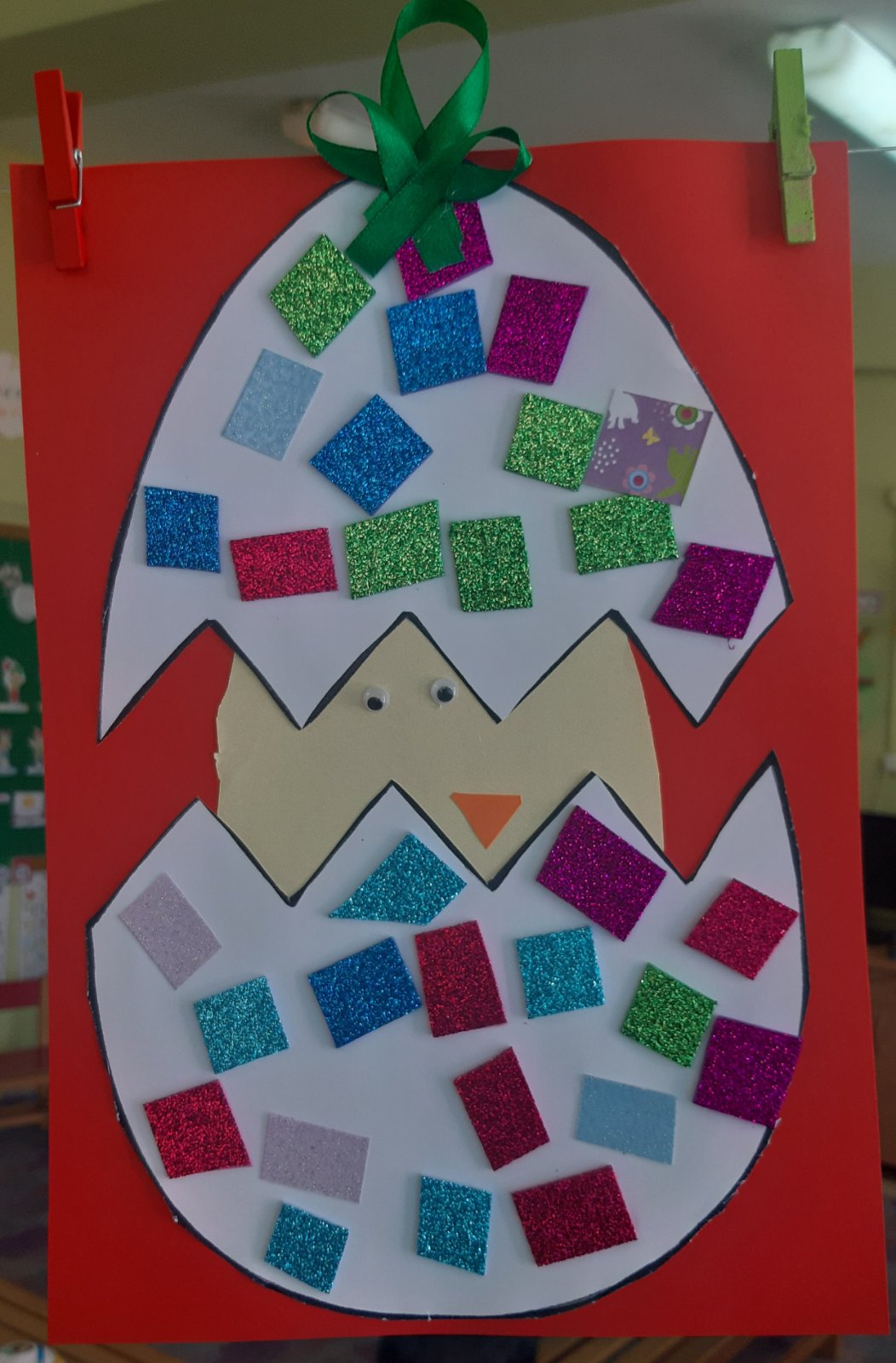 Ετοιμάσαμε τις τσάντες που θα “υποδεχτούν” τις πασχαλινές κατασκευές μας.Επιμεληθήκαμε τόσο την μπροστινή όσο και την πίσω όψη της.1Σχηματίσαμε και γράψαμε τη λέξη Πάσχα.12Φτιάξαμε τα καλάθιαΕτοιμάσαμε τις κάρτες μαςκαι γράψαμε τις ευχές μας.211Διαβάσαμε το υπέροχο βιβλίο της κ. Λότης Πέτροβιτς Ανδρουτσοπούλου.και γράψαμε όπως μπορούσαμε τι έμαθε η δασκάλα χελώνα στα χελωνάκια της.και τι προσπάθησε να σπάσει ο λαγός.Κόψαμε,κολλήσαμε τα ψηφιδωτά μας πάνω στο αυγό για να το διακοσμήσουμεκαι από μέσα ξεπρόβαλε ένα όμορφο κοτόπουλο.1