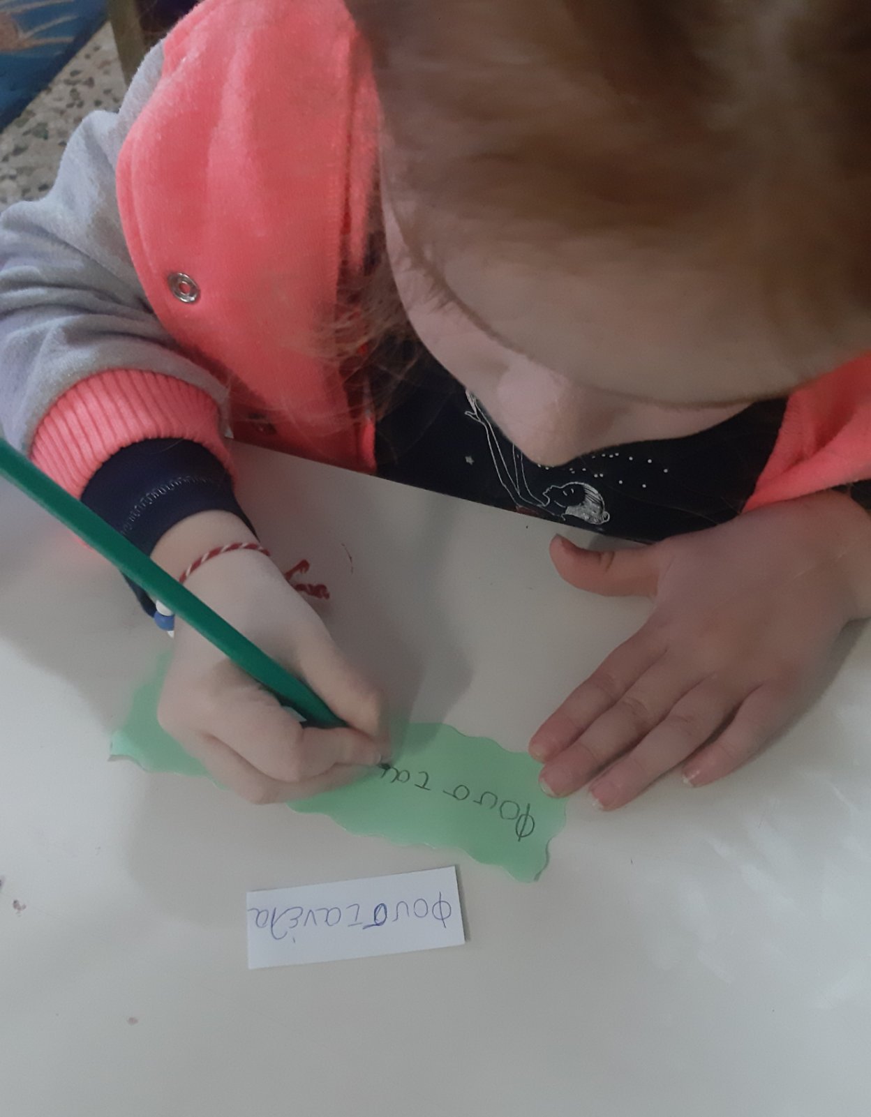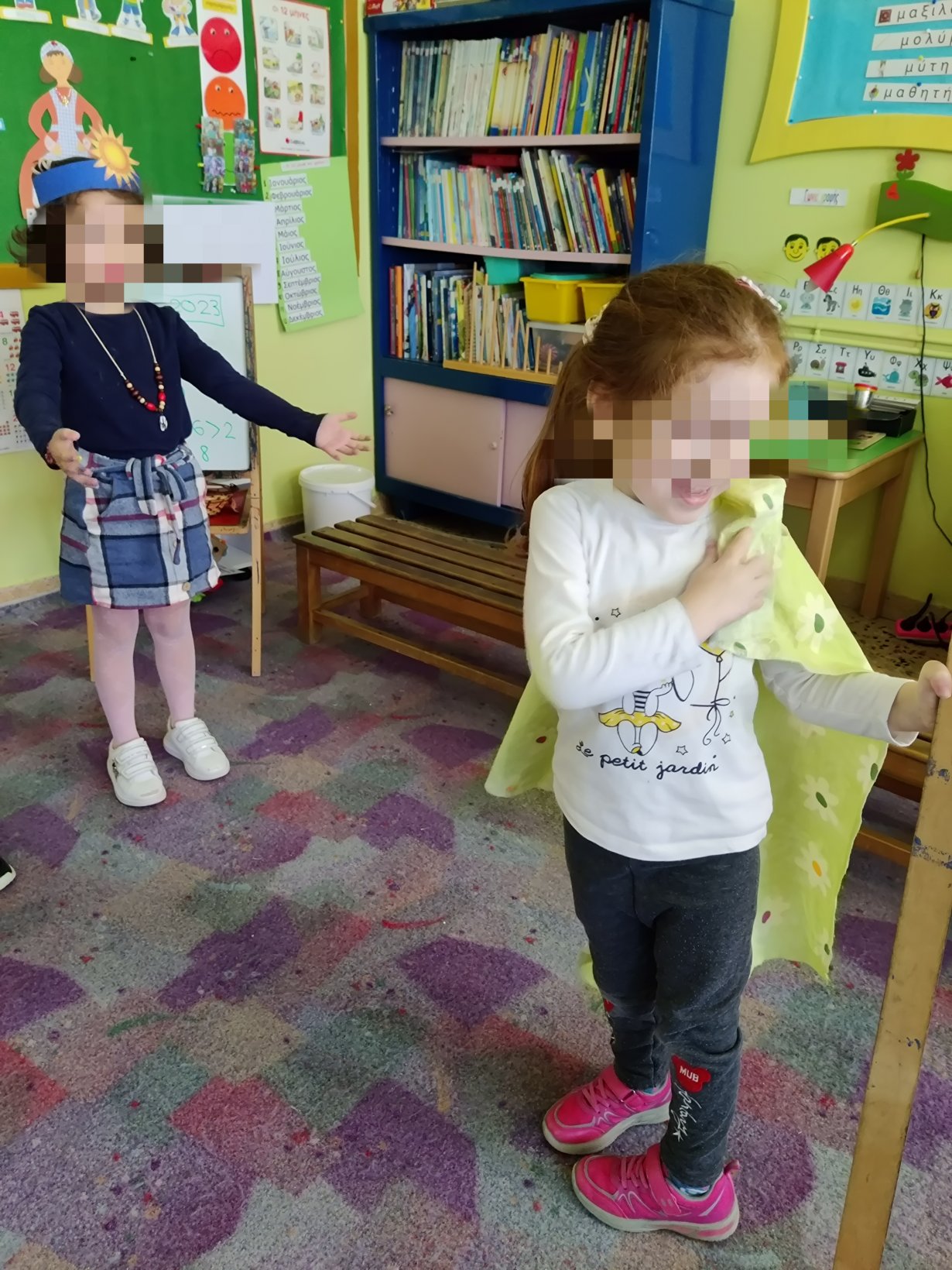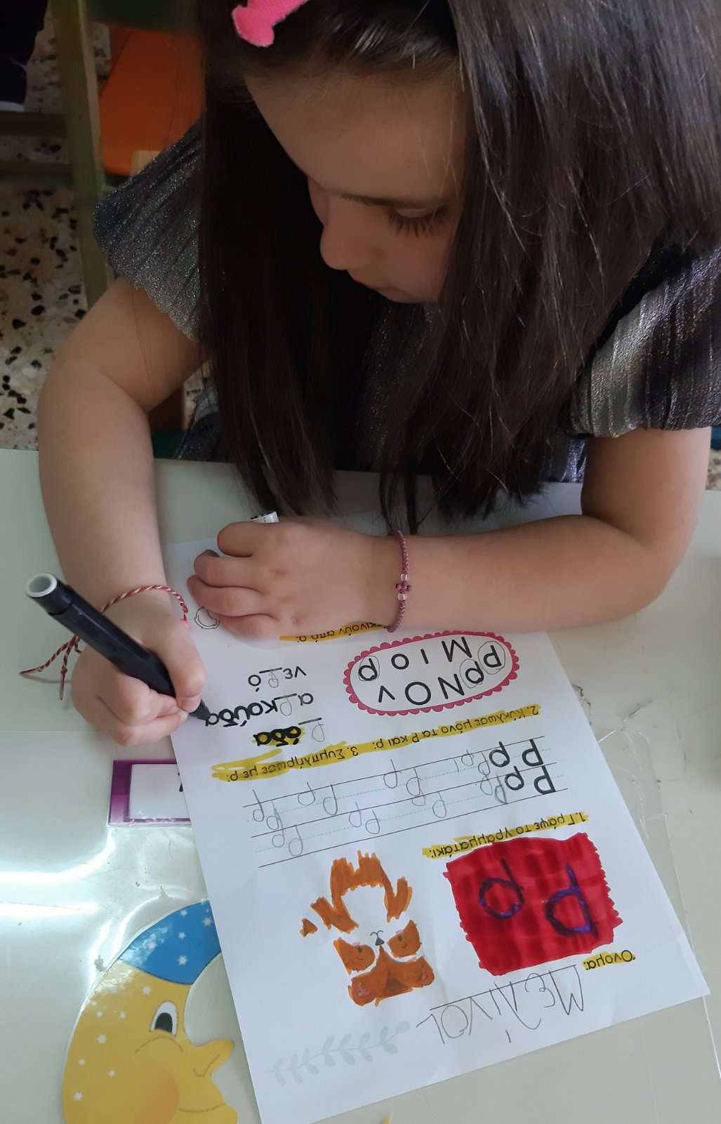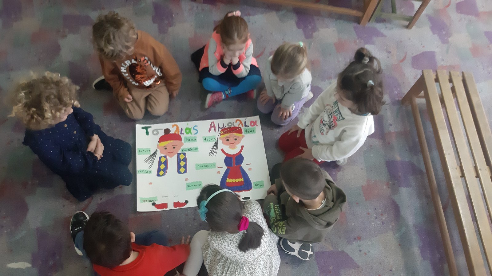 Γράψαμε το όνομα του Μάρτη με μικρά και κεφαλαία.Μάθαμε την παροιμία«Μάρτης είναι, νάζια κάνει ποτέ κλαίει πότε γελάει»και την ζωγραφίσαμε.Μετά την κάναμε κατασκευή.Ο Μάρτης προσωποποιήθηκεκαι πότε κλαίει και πότε γελάει.Φτιάξαμε μαρτάκια και τα φορέσαμε στο χεράκι μας για να μην μας κάψει ο ήλιος.Γράψαμε το μέρος του προσώπου που λείπει από την κυρά Σαρακοστήκαι το όνομα τηςκαι ετοιμάσαμε την ατομική μαςκατασκευήγια να την πάρουμε στο σπίτι μαςκαι να κόβουμε κάθε εβδομάδα και από ένα πόδι.