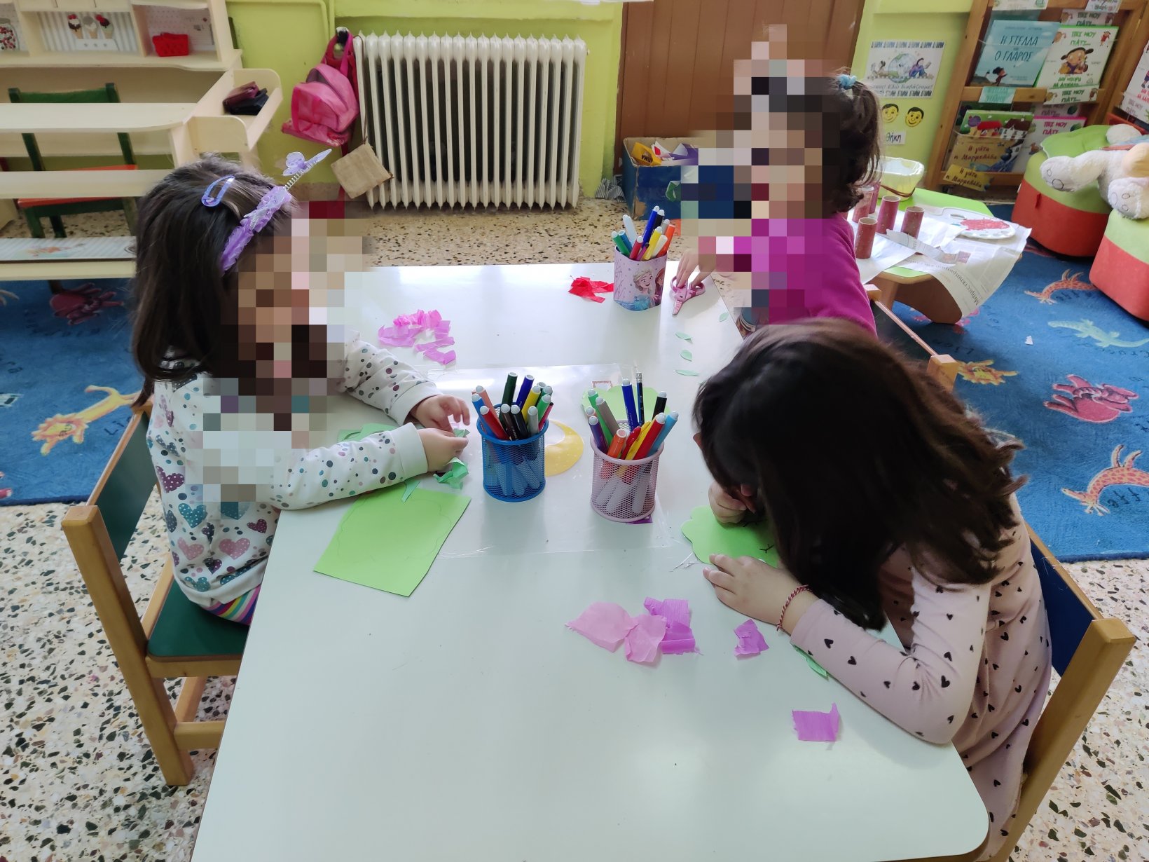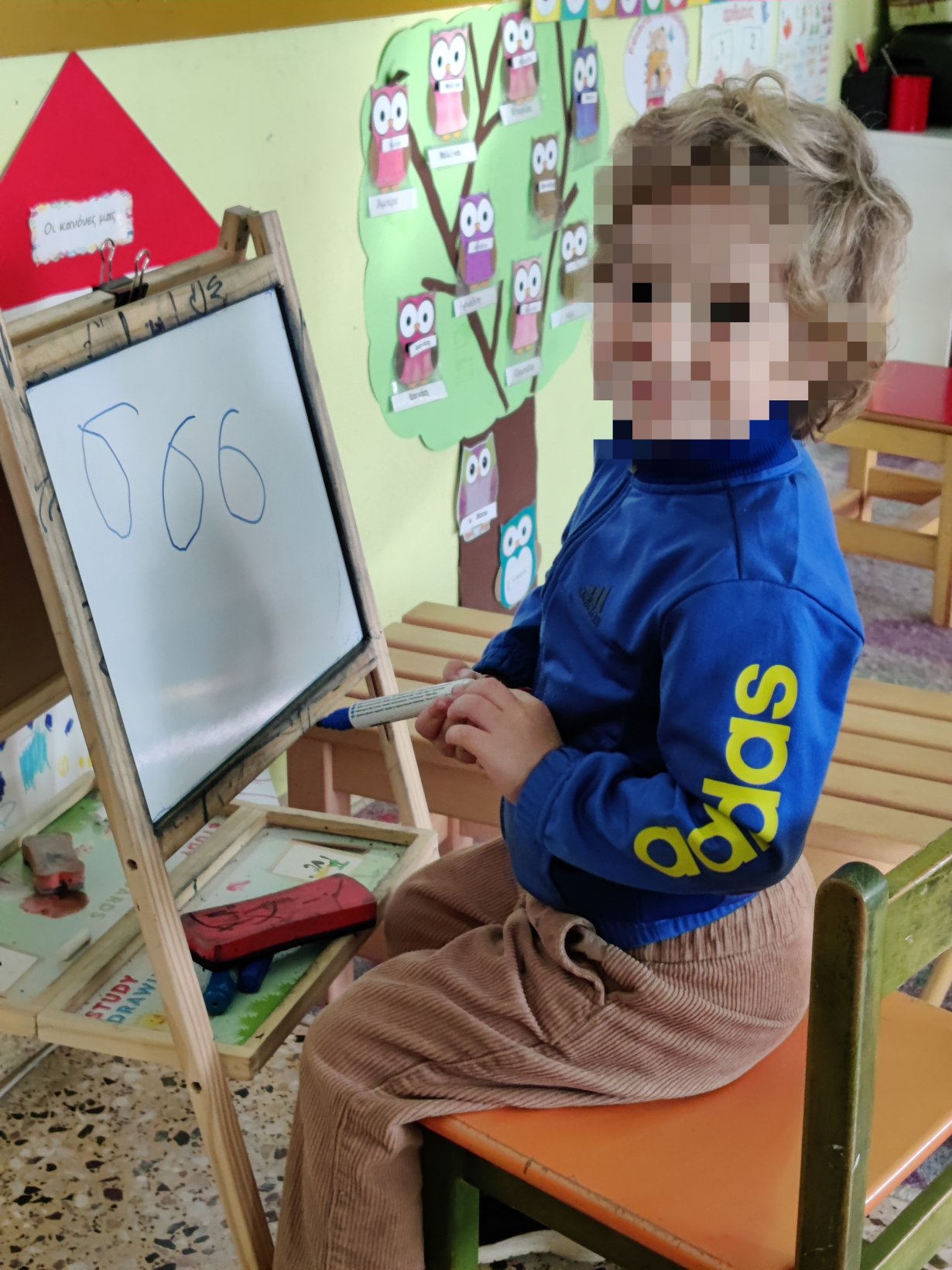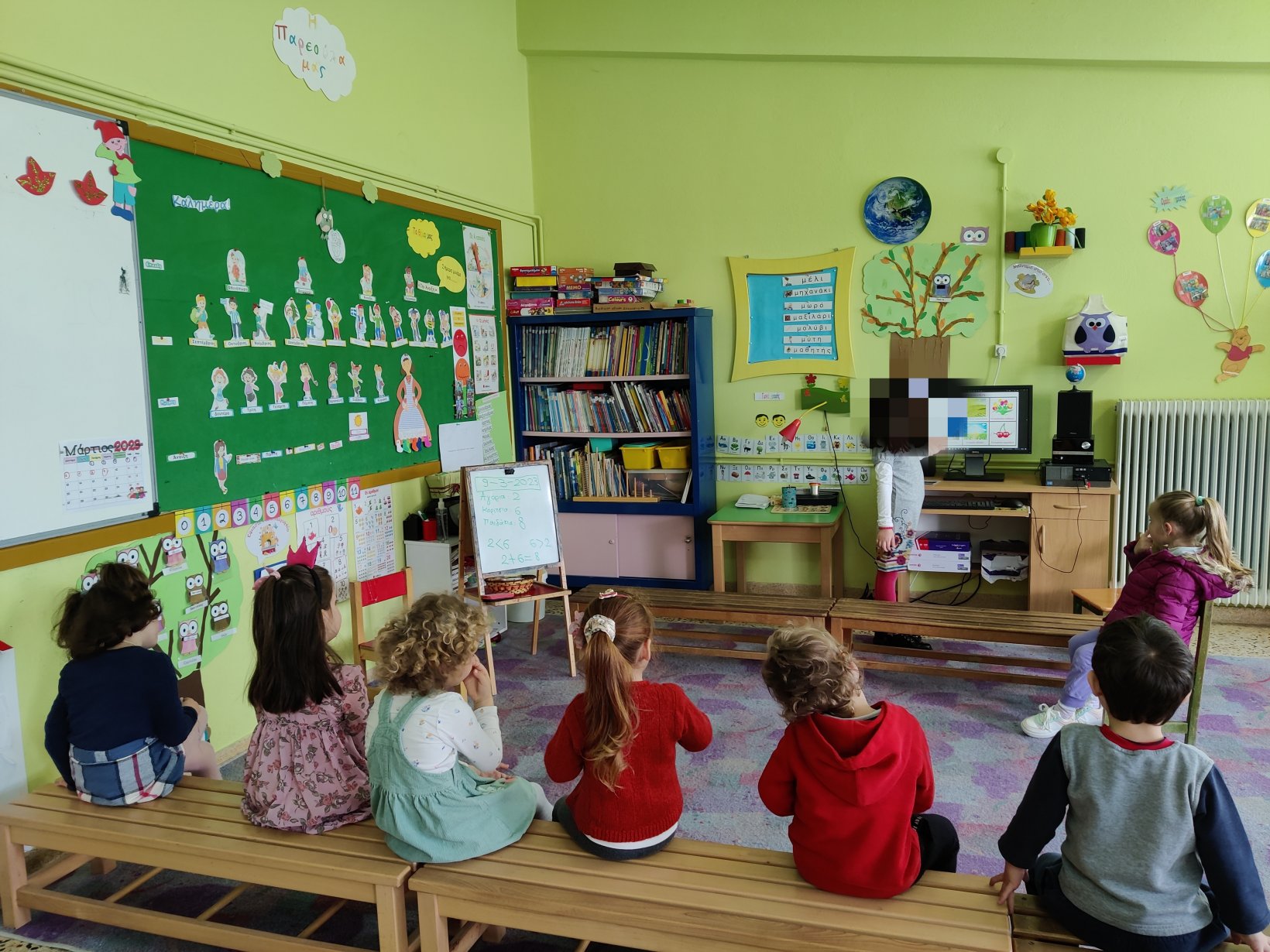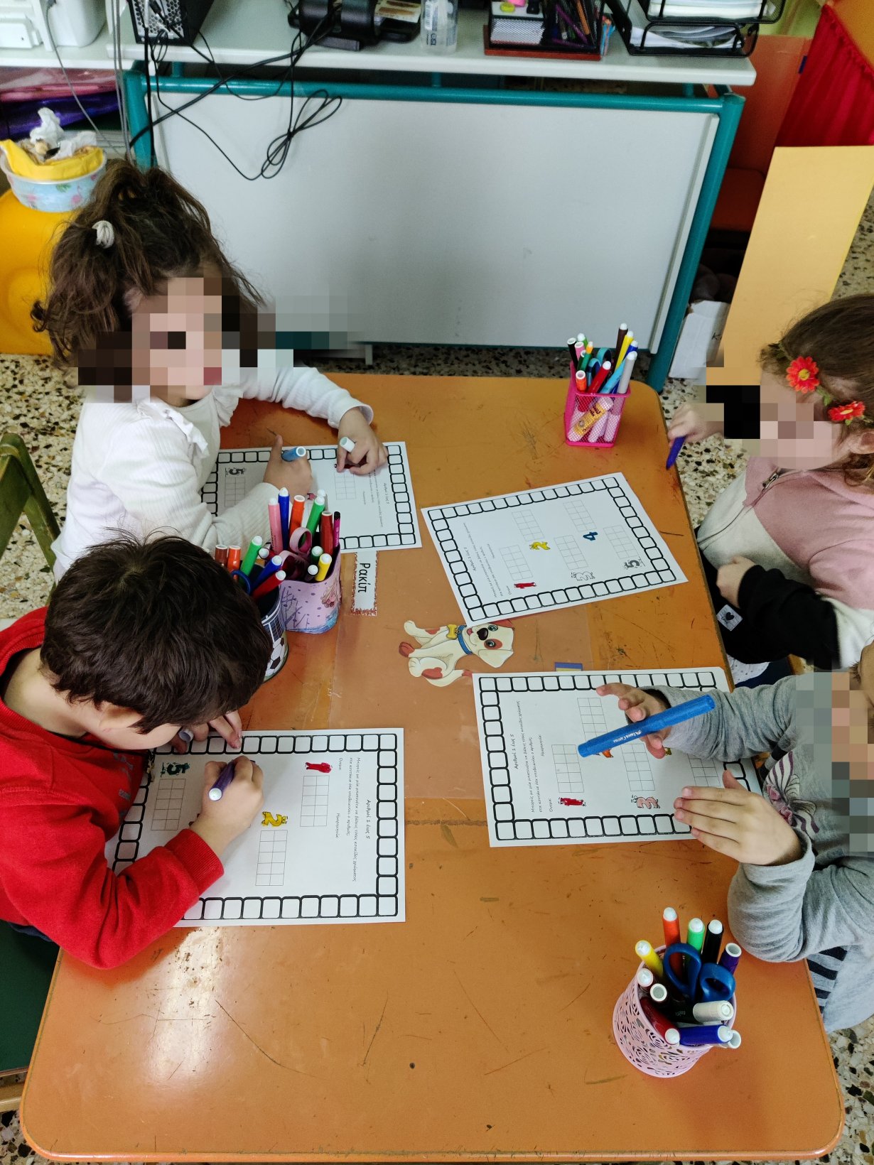 Γράψαμε τον αριθμό 6στον ασπροπίνακα της τάξης.Το 6.Βρήκαμε 6 αντικείμενα ο καθένας6 τουβλάκια,6 μαρκαδόρους,6 αυτοκινητάκια,6 γράμματα της αλφαβήτας.