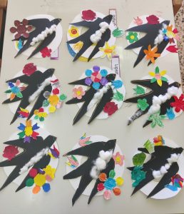 Μιλήσαμε για τον ερχομό των χελιδονιών και είδαμε στην υδρόγειο σφαίρα που βρίσκεται η Ελλάδα και πού η Αφρική. Μάθαμε τα κάλαντα της Άνοιξης.Κόψαμε και διακοσμήσαμε το χελιδόνι μαςΈτοιμα τα χελιδόνια μας για τα χελιδονίσματα.