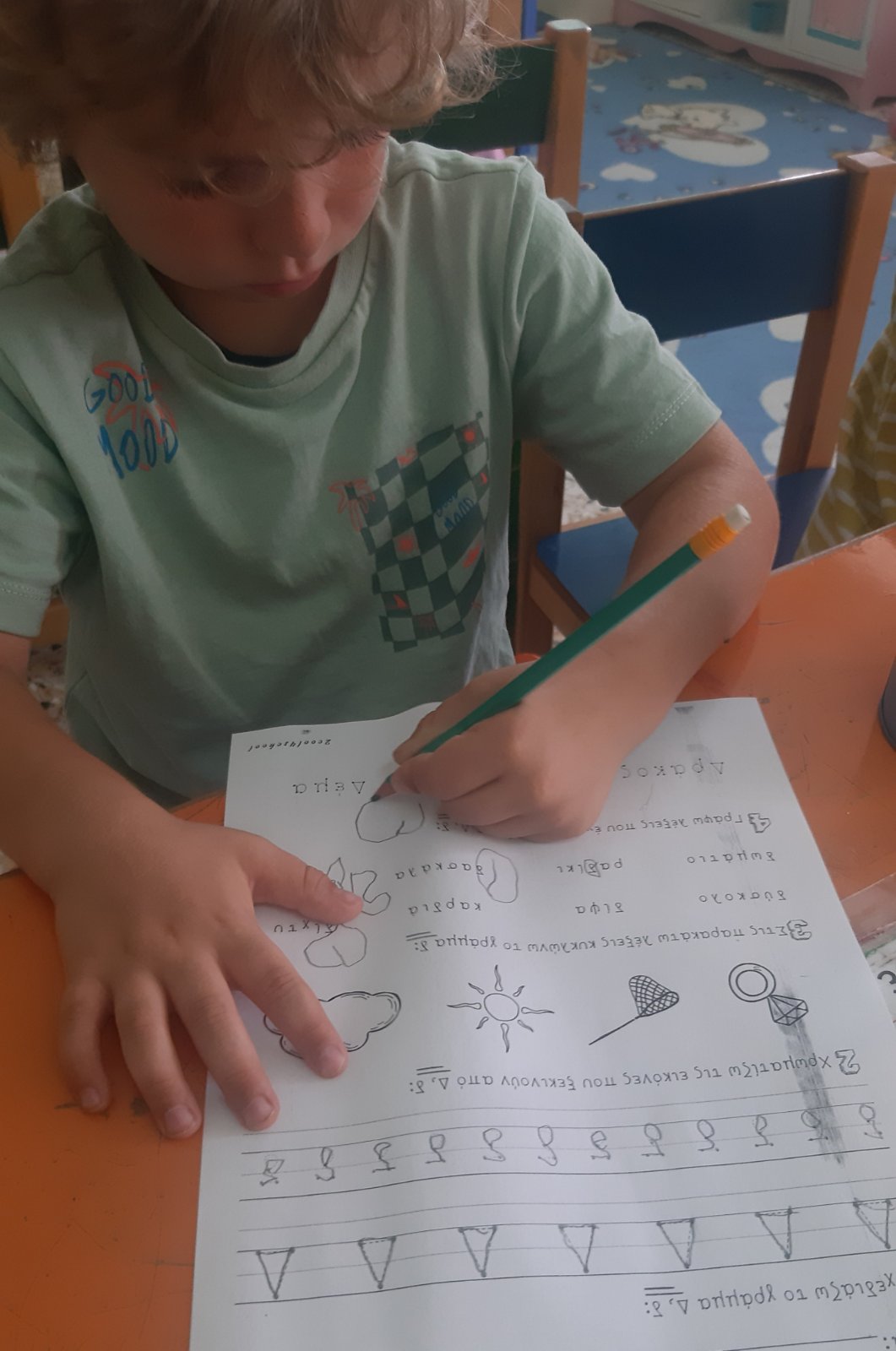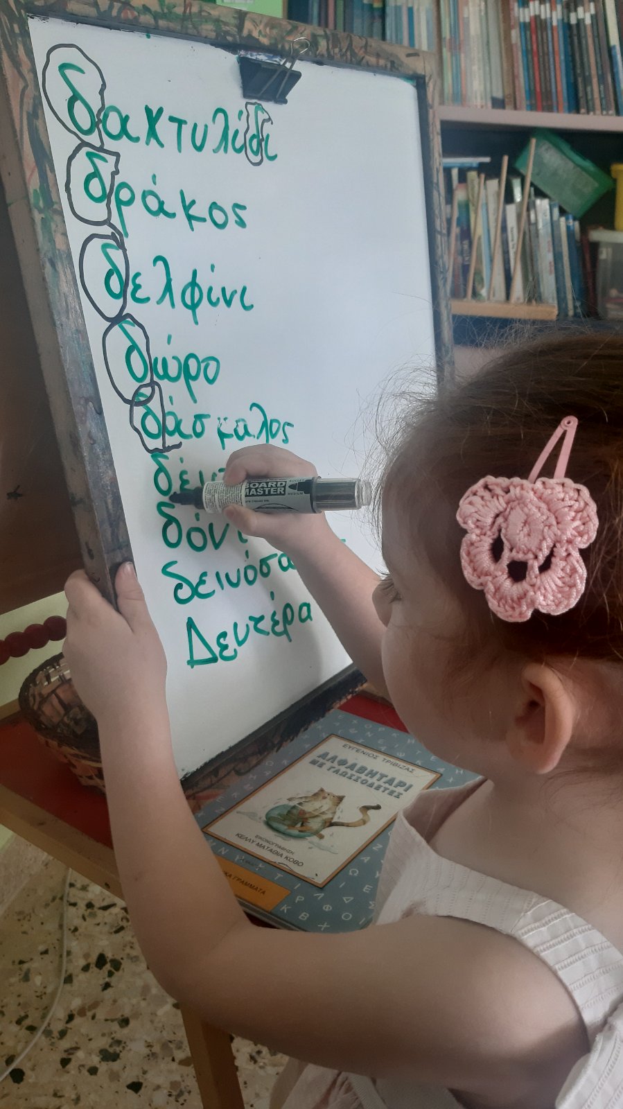 Γράψαμε λεξούλες και ζωγραφίσαμε σχέδια καλοκαιρινά.