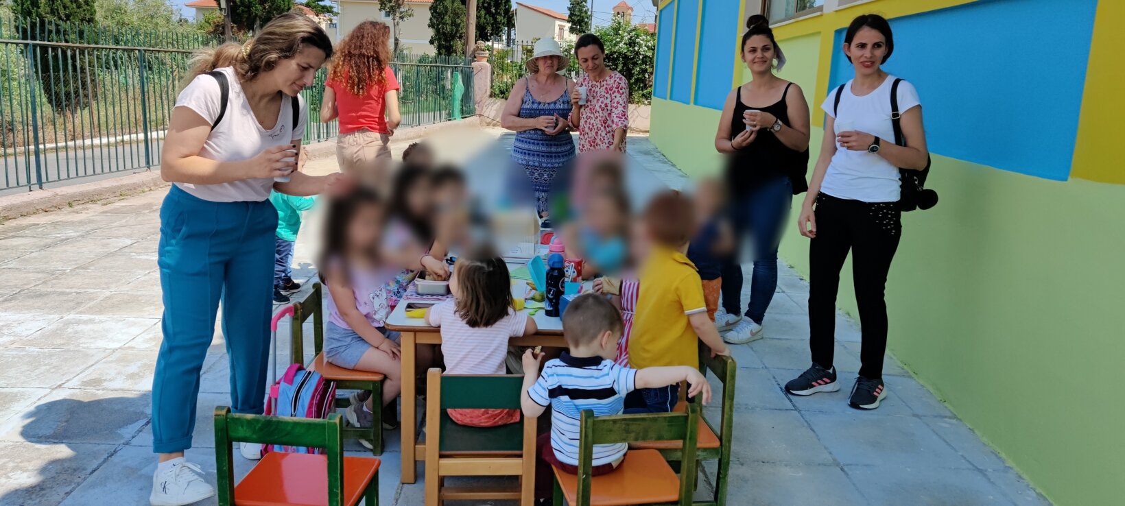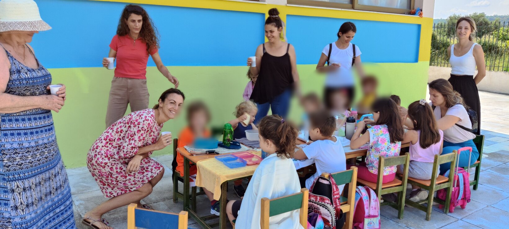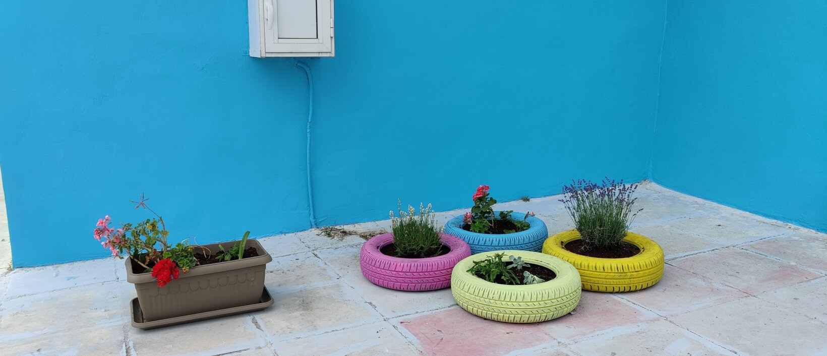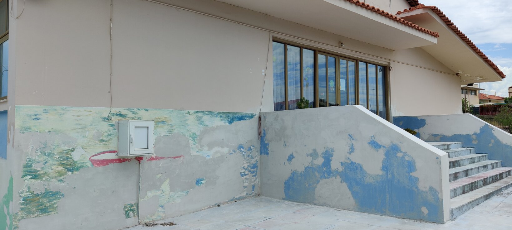 Η εξωτερική εικόνα του σχολείου ήταν κάτι που για πολλά χρόνια “αδικούσε”το σχολείο μας.Αιτήματα στον πρόεδρο της σχολικής επιτροπής γίνονταν τα 3 τελευταία χρόνια,όμως φέτος ήταν η τυχερή μας χρονιά.Διαθέσαμε λοιπόν τα 500€ της έκτακτης επιχορήγησης στην αγορά χρωμάτων και την πληρωμή του ελαιοχρωματιστή, απευθυνθήκαμε και στον πρόεδρο της κοινότητας για να μας βοηθήσει καθώς τα χρήματα δεν ήταν αρκετάκαι καλύψαμε τις υπόλοιπες ανάγκες μας με χρήματα που είχαν περισσέψει από τις τριμηνιαίες κατανομές για την κάλυψη λειτουργικών εξόδων, υλικά που είχαμε φυλαγμένα για το σκοπό αυτό και φυσικά…..το προσωπικό μας μεράκι και χρόνο, μετά το τέλος του διδακτικού ωραρίου.Και αφού καλέσαμε τις μαμάδεςγια να κάνουμε ένα καλοκαιρινό πικνίκ όλοι μαζί,στρωθήκαμε στη δουλειά, μεγάλοι και μικροί.Φυτέψαμε τα λουλούδια που έφεραν για τον καλλωπισμό του προαύλιου χώρουστα λάστιχα που είχαμε βάψεικαι τις ζαρτινιέρεςκαι βγάλαμεαναμνηστικές φωτογραφίεςγια να θυμόμαστε τη δράση αυτή.Το αποτέλεσμα μας δικαίωσε πλήρως.Ομορφιά, θετική ενέργειακαι πολύ χρώμα.Τα σκαλιά τα αναλάβαμε εμείς! Σε καλοκαιρινές αποχρώσεις, η τελευταία πινελιά που δώσαμεκαι έπεται και συνέχεια…..του χρόνου!
