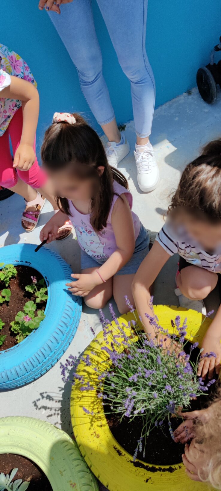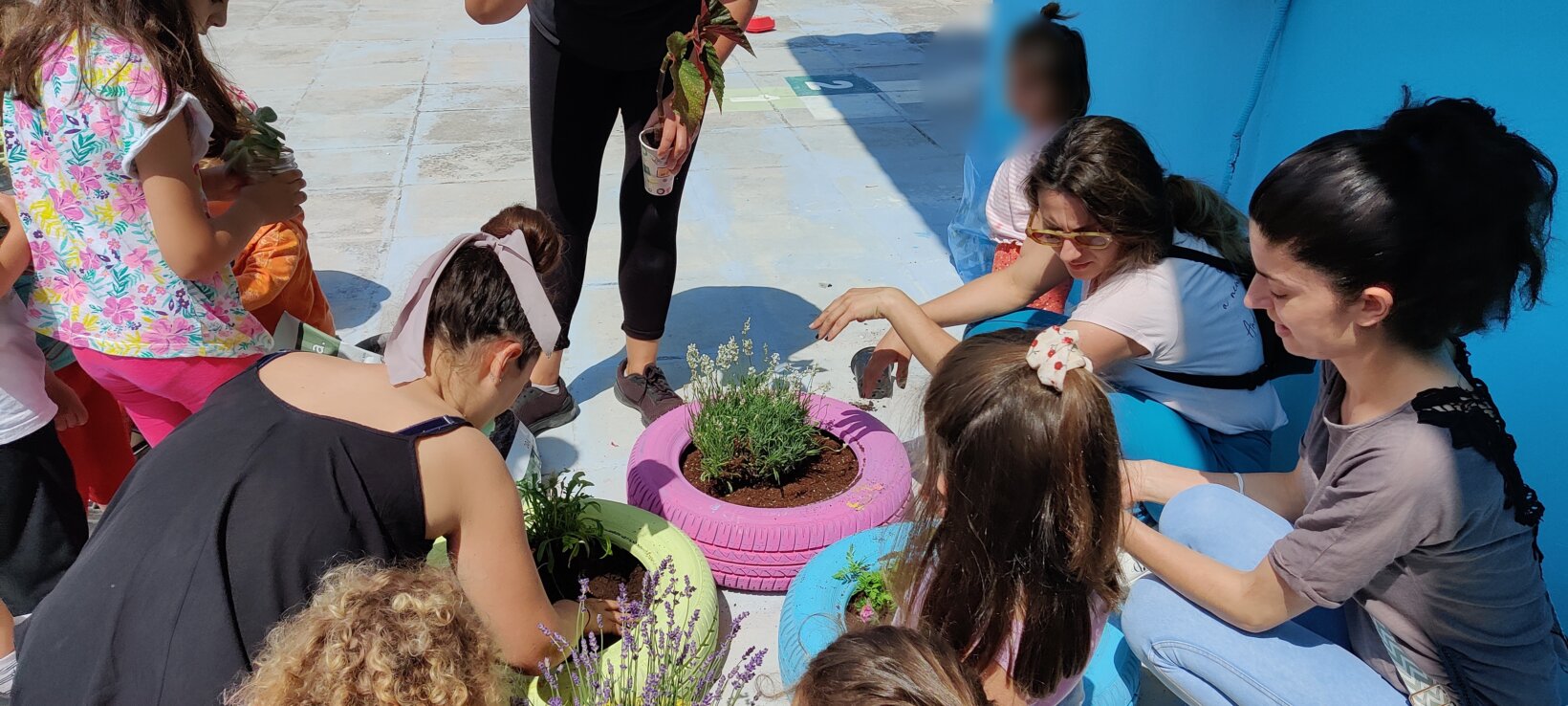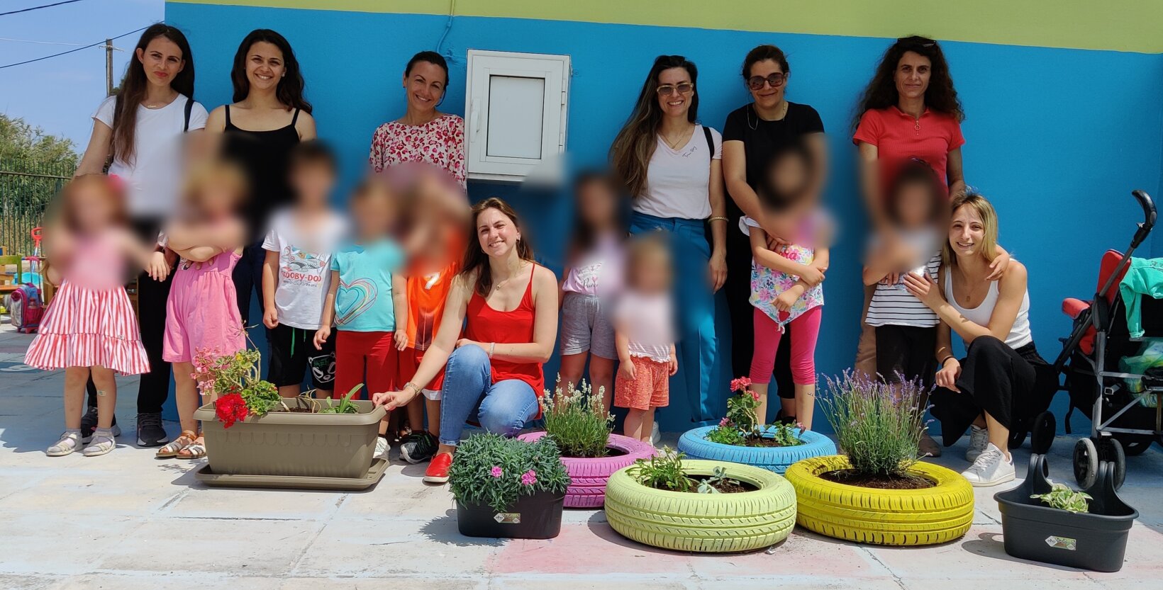 Η εξωτερική εικόνα του σχολείου ήταν κάτι που για πολλά χρόνια “αδικούσε”το σχολείο μας.Αιτήματα στον πρόεδρο της σχολικής επιτροπής γίνονταν τα 3 τελευταία χρόνια,όμως φέτος ήταν η τυχερή μας χρονιά.Διαθέσαμε λοιπόν τα 500€ της έκτακτης επιχορήγησης στην αγορά χρωμάτων και την πληρωμή του ελαιοχρωματιστή, απευθυνθήκαμε και στον πρόεδρο της κοινότητας για να μας βοηθήσει καθώς τα χρήματα δεν ήταν αρκετάκαι καλύψαμε τις υπόλοιπες ανάγκες μας με χρήματα που είχαν περισσέψει από τις τριμηνιαίες κατανομές για την κάλυψη λειτουργικών εξόδων, υλικά που είχαμε φυλαγμένα για το σκοπό αυτό και φυσικά…..το προσωπικό μας μεράκι και χρόνο, μετά το τέλος του διδακτικού ωραρίου.Και αφού καλέσαμε τις μαμάδεςγια να κάνουμε ένα καλοκαιρινό πικνίκ όλοι μαζί,στρωθήκαμε στη δουλειά, μεγάλοι και μικροί.Φυτέψαμε τα λουλούδια που έφεραν για τον καλλωπισμό του προαύλιου χώρουστα λάστιχα που είχαμε βάψεικαι τις ζαρτινιέρεςκαι βγάλαμεαναμνηστικές φωτογραφίεςγια να θυμόμαστε τη δράση αυτή.Το αποτέλεσμα μας δικαίωσε πλήρως.Ομορφιά, θετική ενέργειακαι πολύ χρώμα.Τα σκαλιά τα αναλάβαμε εμείς! Σε καλοκαιρινές αποχρώσεις, η τελευταία πινελιά που δώσαμεκαι έπεται και συνέχεια…..του χρόνου!
