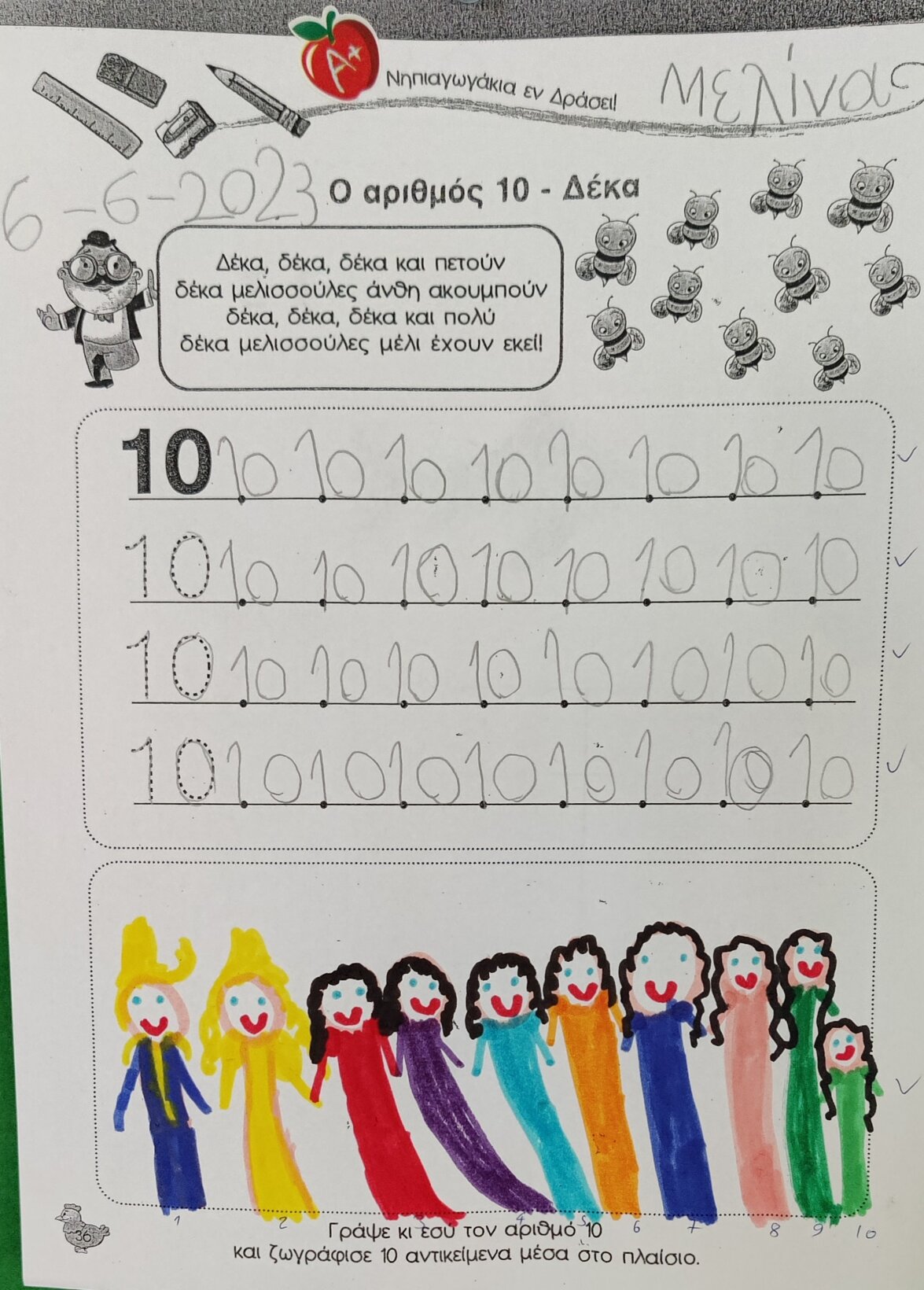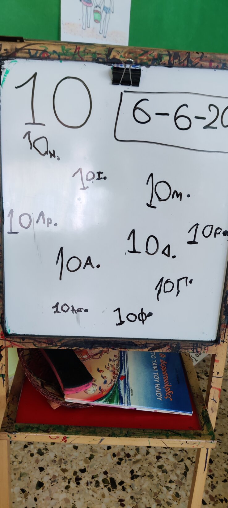 α) Μάθαμε τον αριθμό 10.Τον γράψαμε στον ασπροπίνακαβ) τον γράψαμε και σε φύλλο εργασίας.γ) τον ζωγραφίσαμε για το βιβλίο των αριθμών μας.και ολοκληρώσαμε το βιβλίο μας. Τα γράμματα και οι αριθμοί….με μια αλλιώτικη μορφή!
