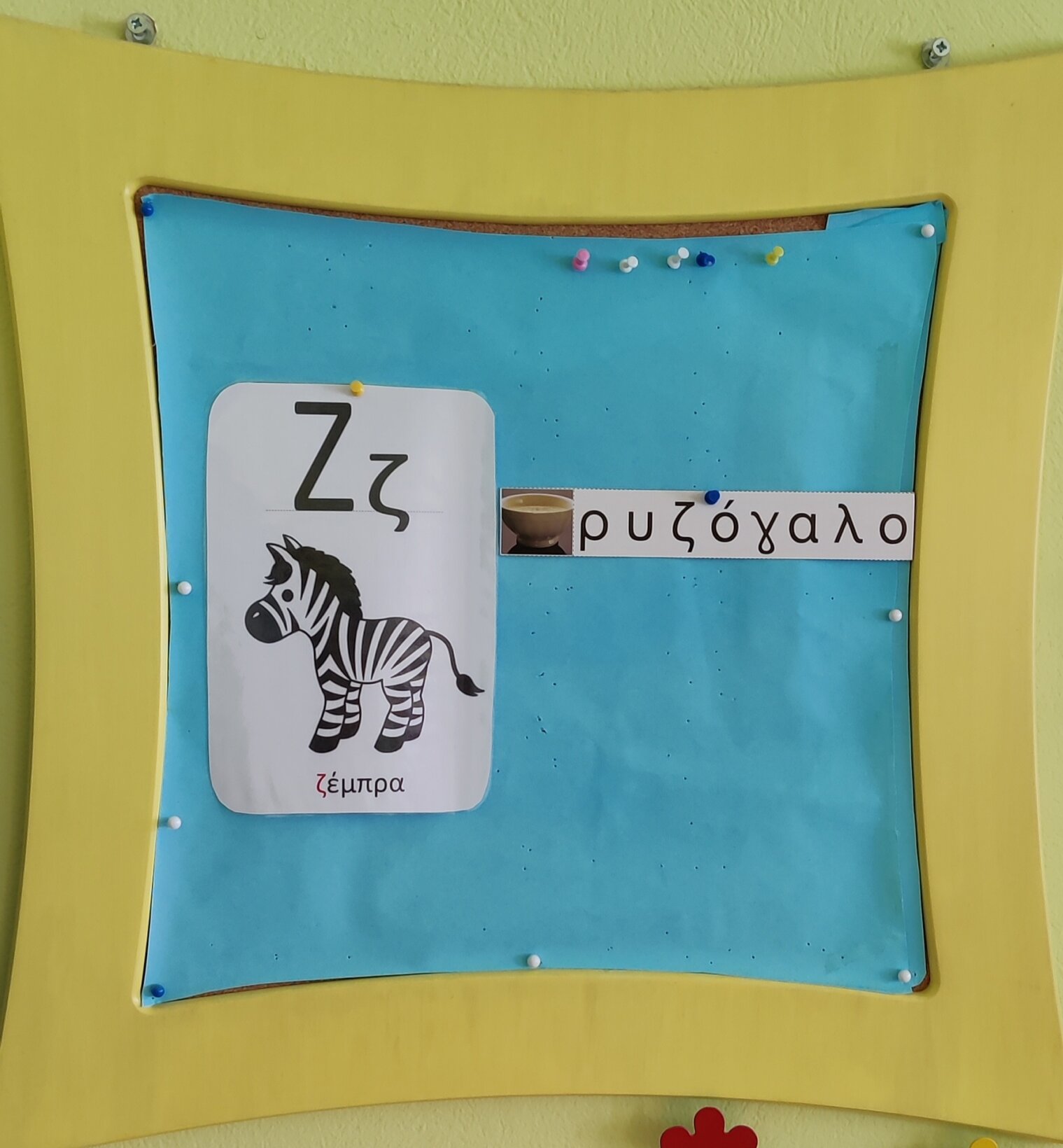 Επειδή τελικά δεν υπήρχε καμία,κρεμάσαμε στον πίνακα της γωνιάς γραφής την λέξη που περιείχε το γράμμα ζ.