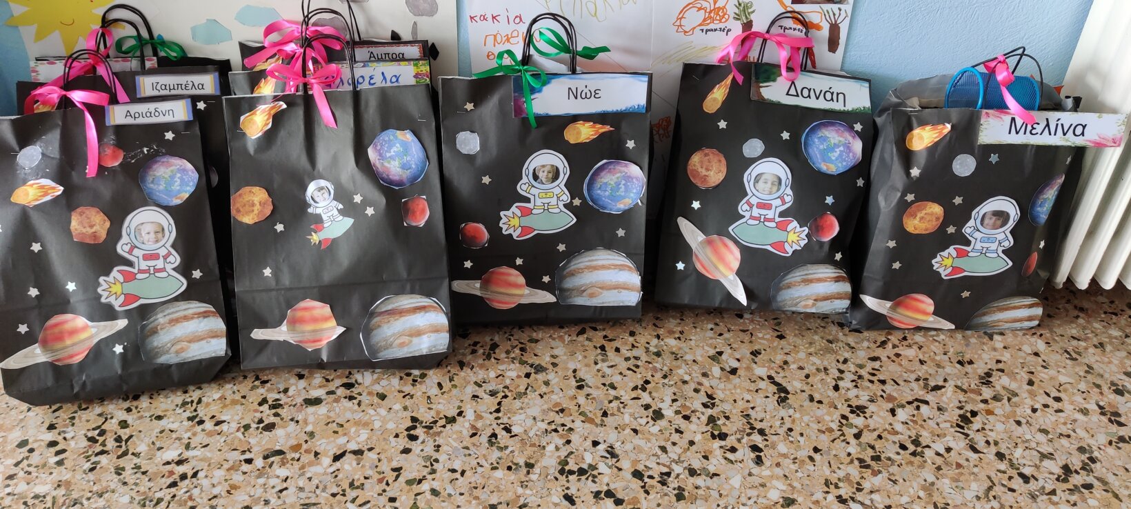 Αφού θυμηθήκαμε ποια είναι τα τρία παιδιά του καλοκαιριούΞεκινήσαμε μία καλοκαιρινή κατασκευήγια να δώσουμε μία καλοκαιρινή αύρα στο χώρο.Φτιάξαμε τις προσκλήσεις για την γιορτούλα μας.Διακοσμήσαμε τις σακούλεςπου θα φιλοξενήσουν τα έργα μιας ολόκληρης σχολικής χρονιάς.Και φέτος φτάσαμε ψηλά……πολύ ψηλά!
