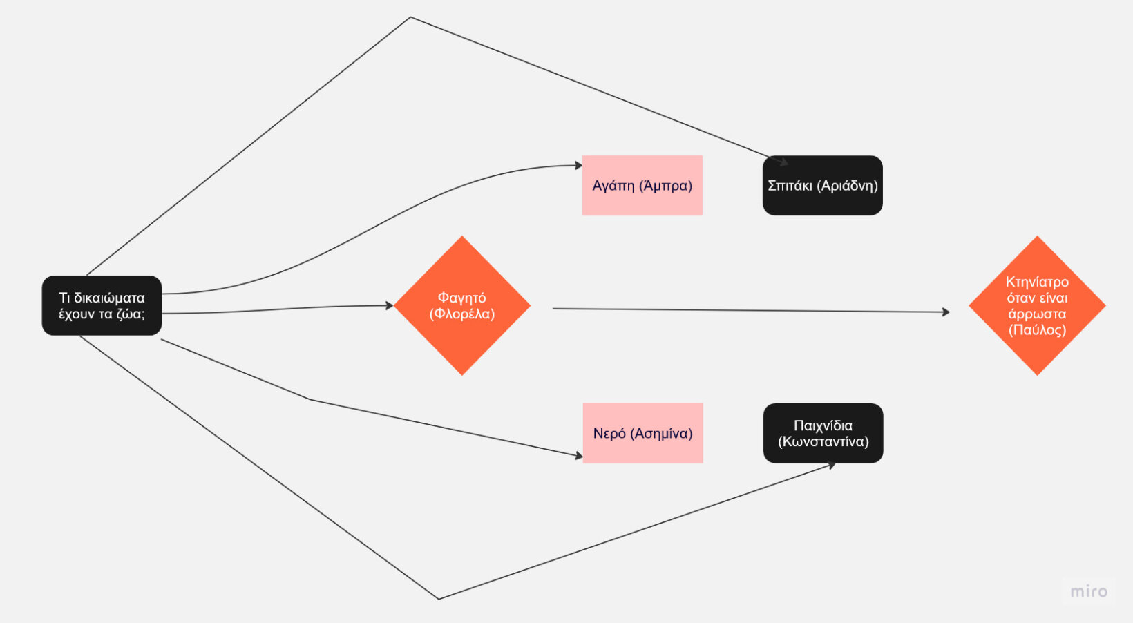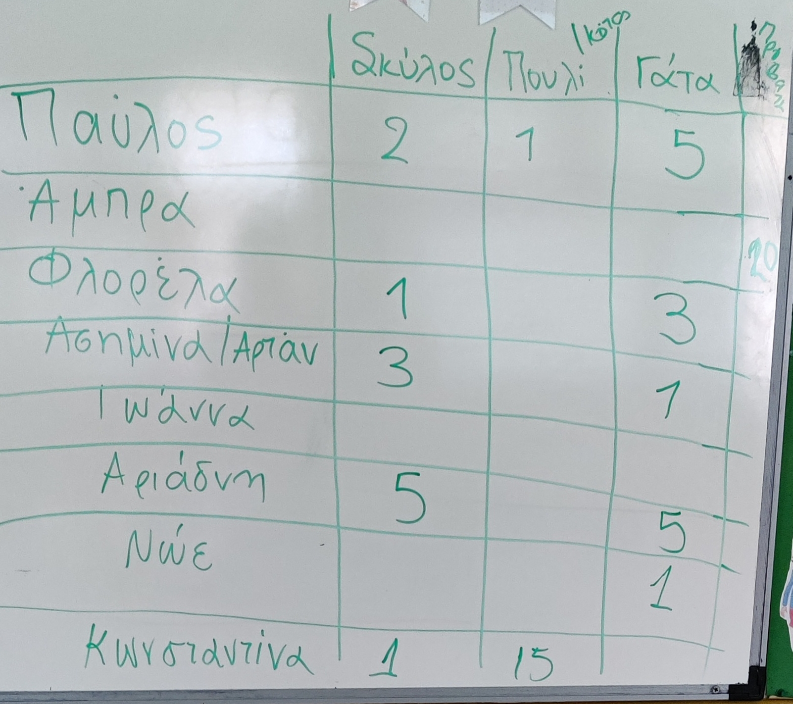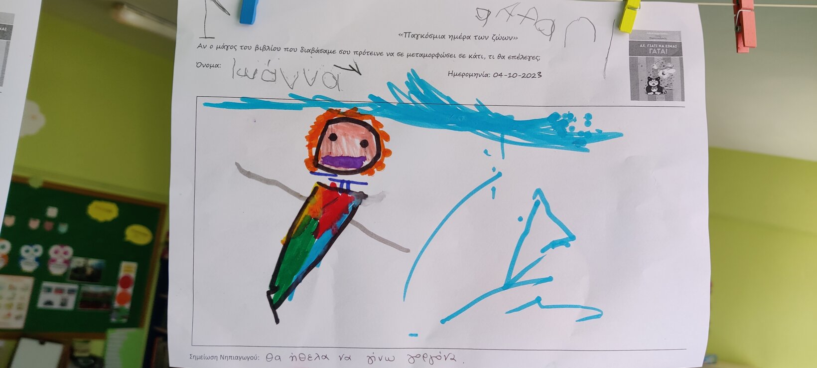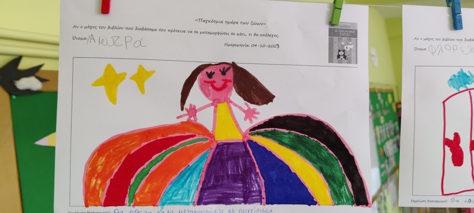 Καταγράψαμε ποια είναι τα δικαιώματα των ζώων σε γράφημα.Σημειώσαμε σε πίνακα 2ης εισόδου τα ζώα που έχει ο καθένας στο σπίτι του.Δημιουργήσαμε μια κατασκευή για να θυμόμαστε αυτή την παγκόσμια ημέρα.Η κατασκευή μας.Διαβάσαμε το βιβλίο της Μαριανίνας Κριεζή “Αχ, γιατί να είμαι γάτα”και φανταστήκαμε σε τί θα θέλαμενα μας μεταμορφώσει ο μάγος της ιστορίας αν είχαμε την επιλογή.