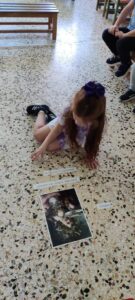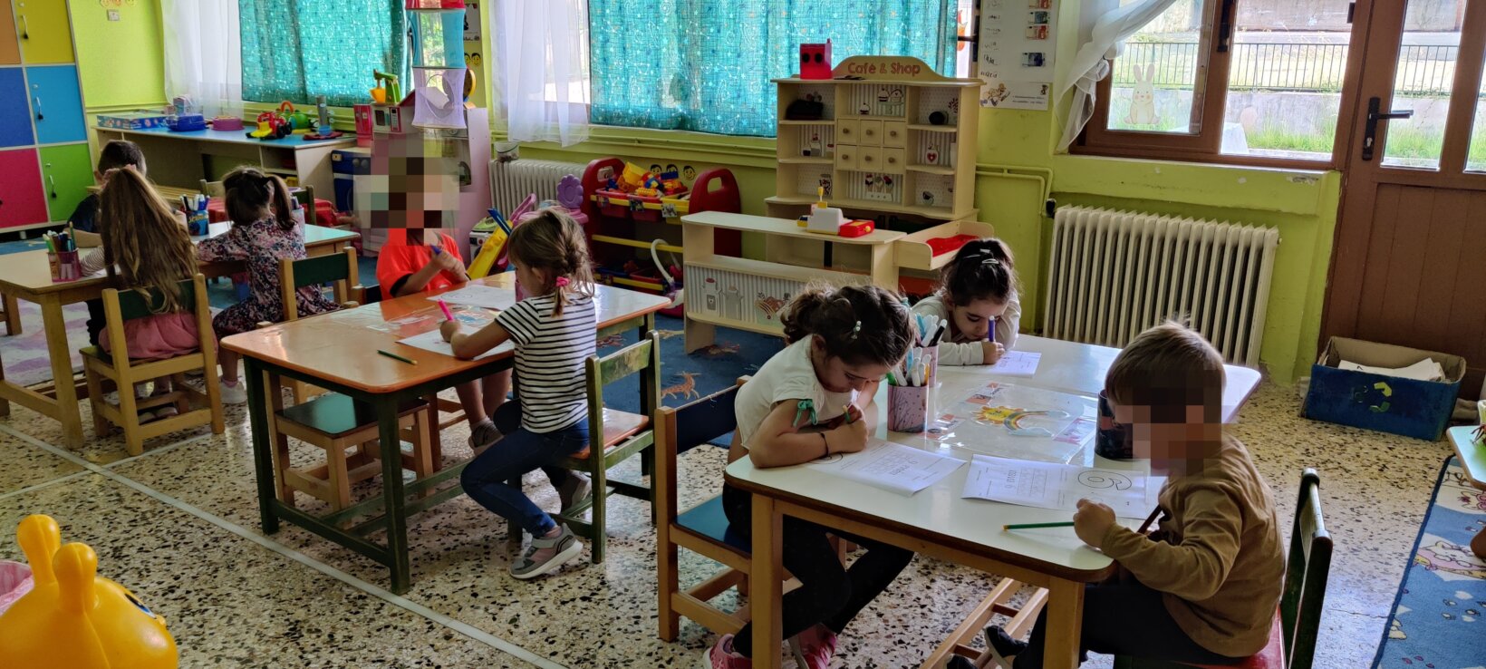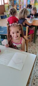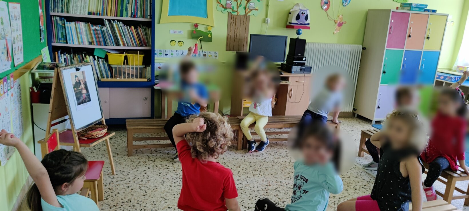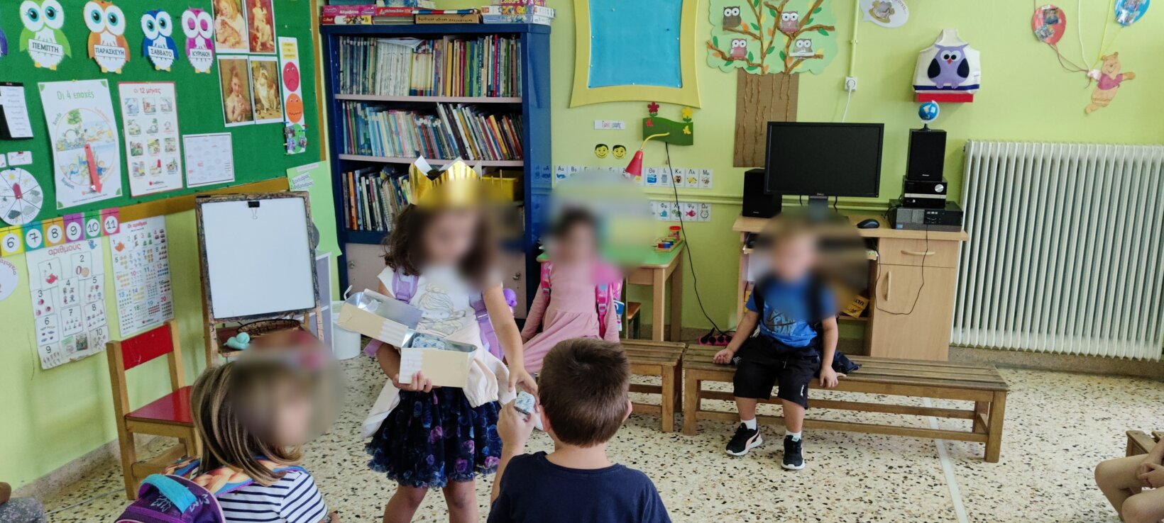 Η σφυρίχτρα της κυρίας ήχησε 3 φορές. 1η άσκηση σεισμού για τη φετινή χρονιά.Όλοι χωρίς πανικό κάτω απ’ τα τραπεζάκια,κρατάμε με το ένα χέρι το πόδι του τραπεζιού και με το άλλο προστατεύουμε τον αυχένα μας.Με τη λήξη του “σεισμού”,όλοι με τρένο βγήκαμε έξω στο μέρος διαφυγής-τη βρύση του σχολείου μας.