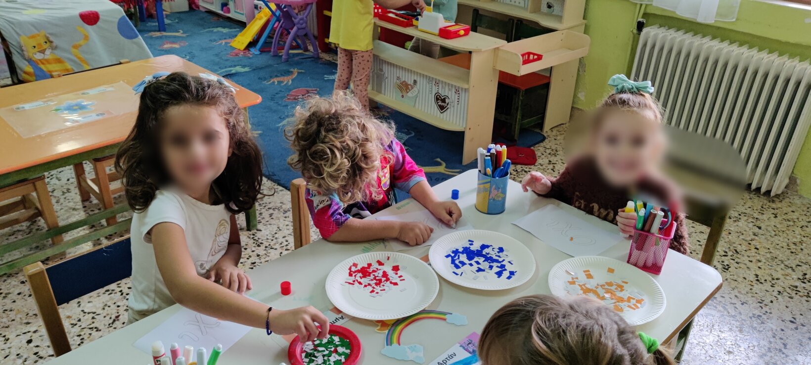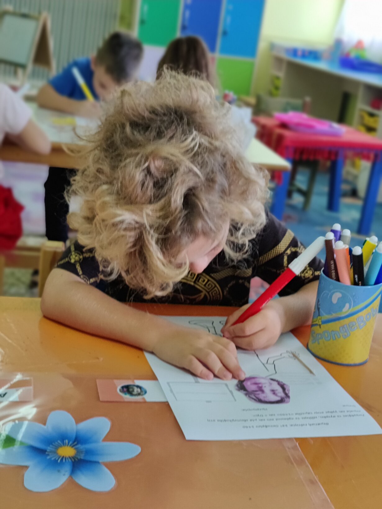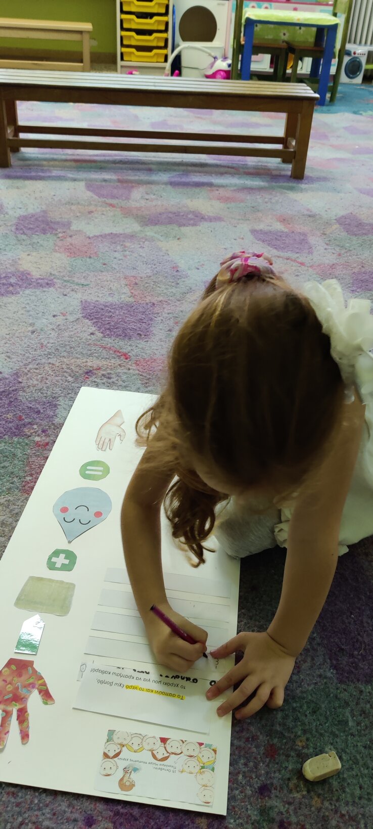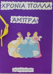 Ζωγραφίσαμε και δημιουργήσαμε έναν φάκελο για την Άμπρα που είχε τα γενέθλιά της.Ήταν η βασίλισσα της ημέρας και για να μας ευχαριστήσει μας κέρασε γλυκά και χυμούς.