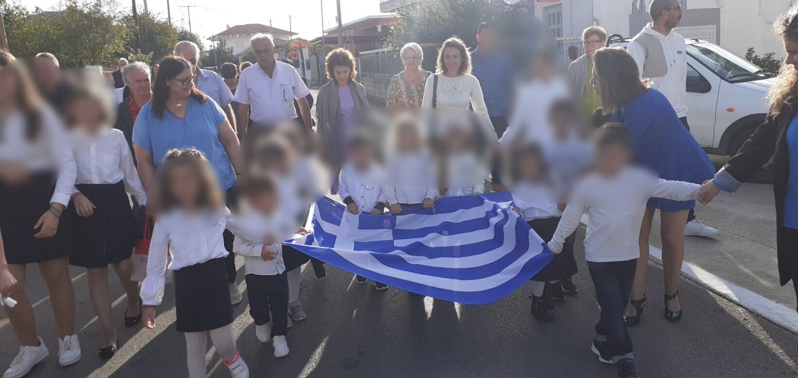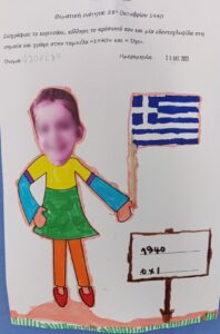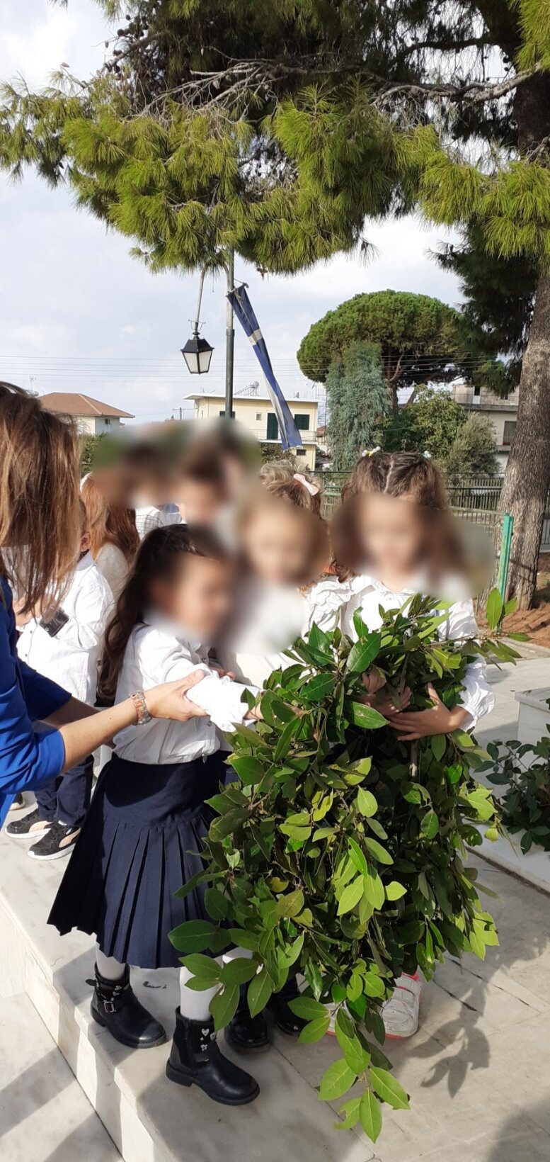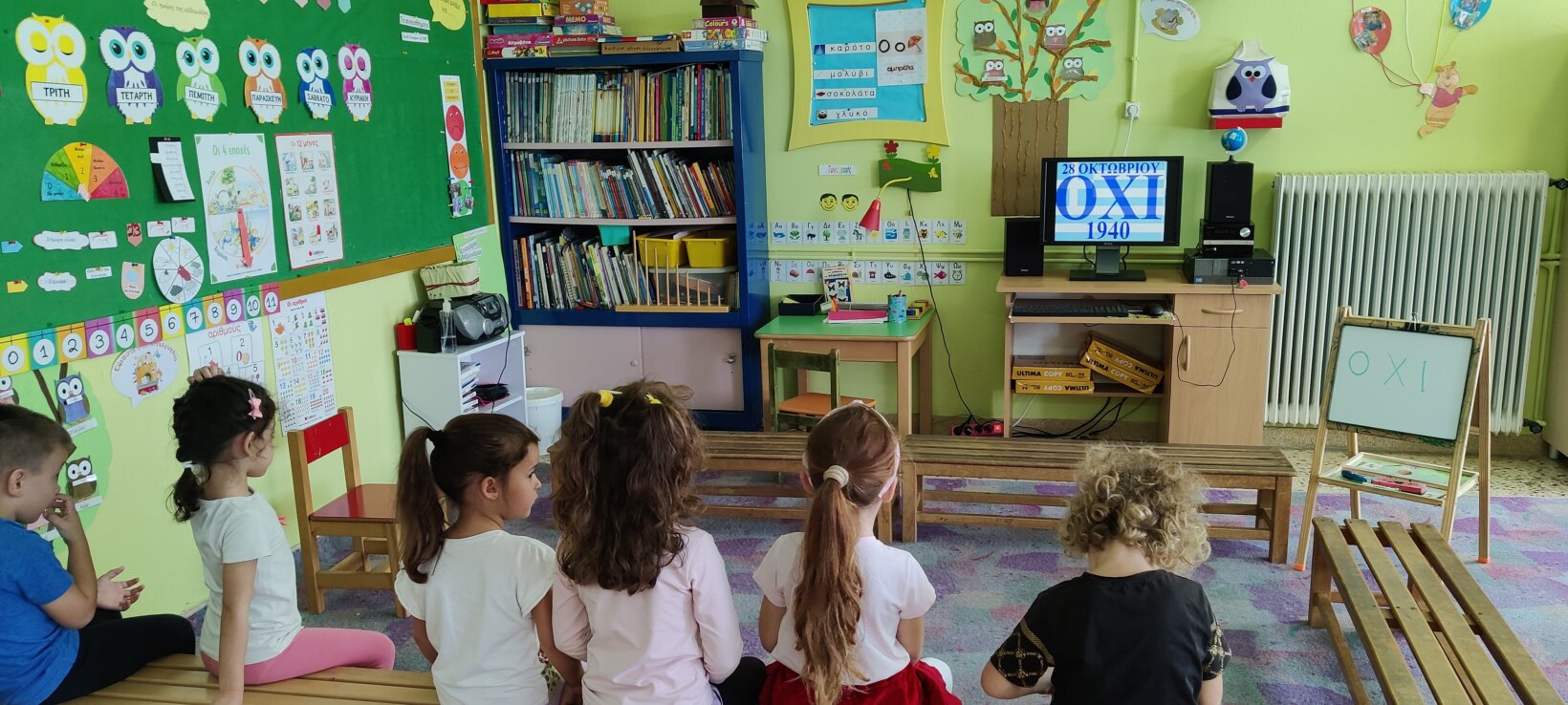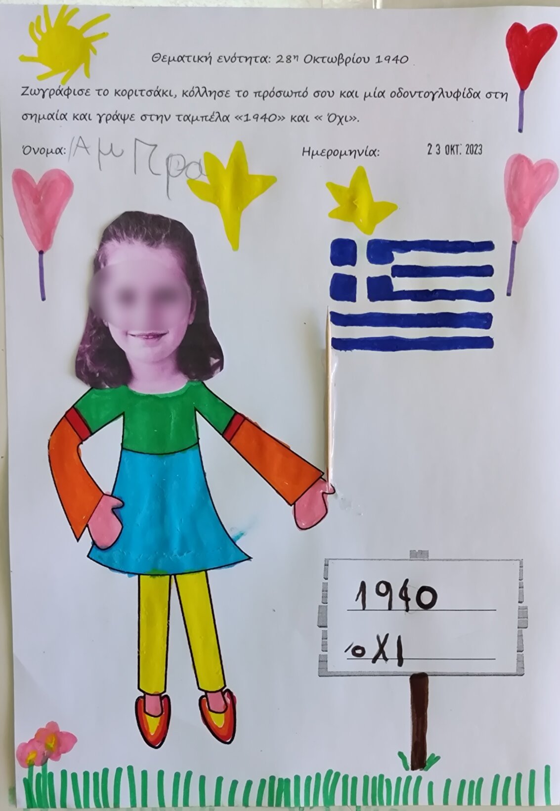 Κάναμε πρόβες για την παρέλασηπου θα κάνουμε ανήμερα της γιορτής στο χωριό.Παρακολουθήσαμε μία παρουσίαση για τη γιορτή της 28ης Οκτωβρίου.Γράψαμε τι γιορτάζουμεκαι διακοσμήσαμε την κατασκευή μας.Το αποτέλεσμα.1Δουλέψαμε σε φύλλα εργασίας τις λέξεις που σχετίζονται με τη γιορτή, π.χ. αέρα, σημαία, όχι κ.τ.λ.Προσπαθήσαμε να εντοπίσουμε το “Όχι“ανάμεσα σε καρτέλες με αναγραμματισμό της λέξης.Το κάναμε κατασκευή, κολλώντας ψηφίδες στο Όχικαι κολλώντας το στο στεφάνι της 28ης Οκτωβρίου.Η κατασκευή μαςΓιορτάσαμε το”Λοιπόν έχουμε πόλεμο”παραμονή της εθνικής μας επετείουκαι εκκλησιαστήκαμε στον Ι.Ν Αγ.Κωνσταντίνου ανήμερα.Κατόπιν,με παρέλασηφτάσαμε στο ηρώοκαι καταθέσαμε στεφάνι, παρουσία κόσμου και της τοπικής ηγεσίας.Χρόνια πολλά!