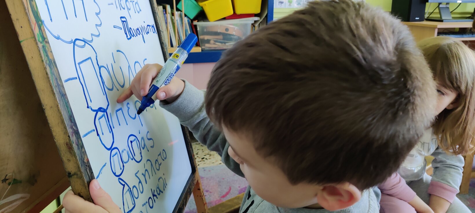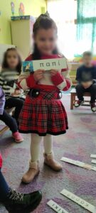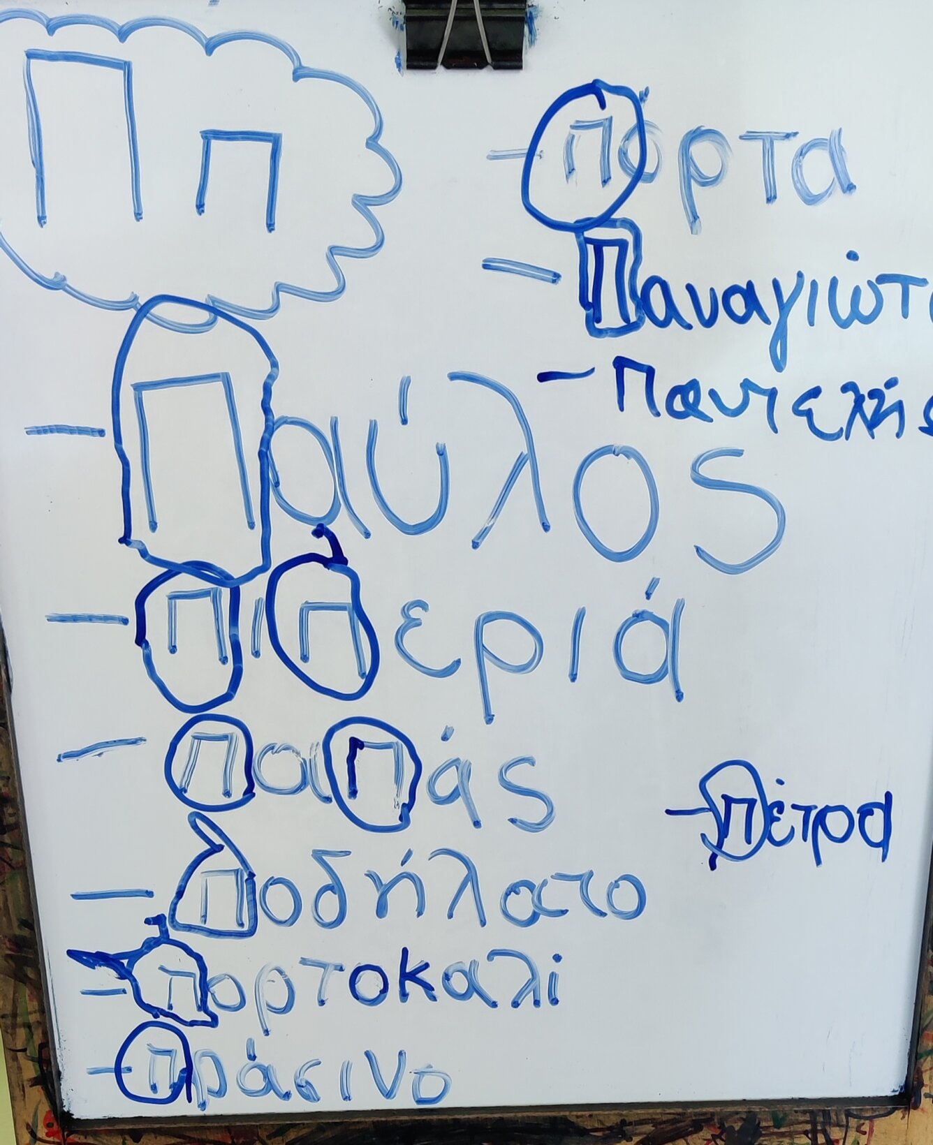 Βρήκαμε λέξεις απ’ το γράμμα Π.Εντοπίσαμε και κυκλώσαμε πού βρίσκεται μέσα στις λέξεις.Το γράψαμε πολλές φορές.Φοβερή η ομάδα μας!Παρακολουθήσαμε την ιστορία του Π.